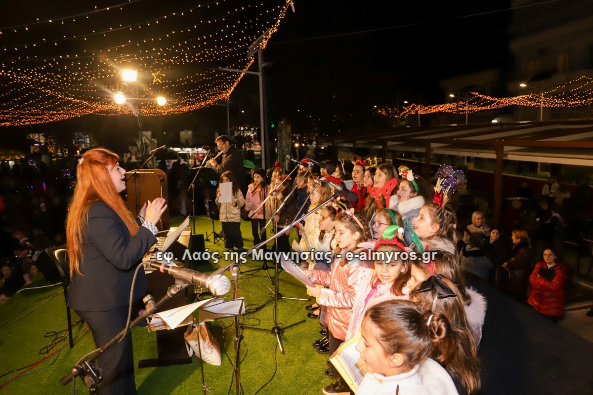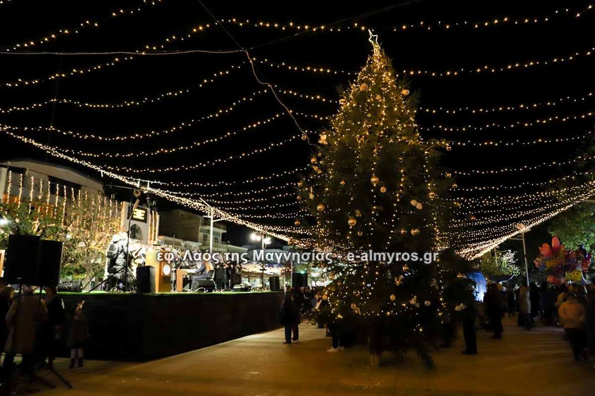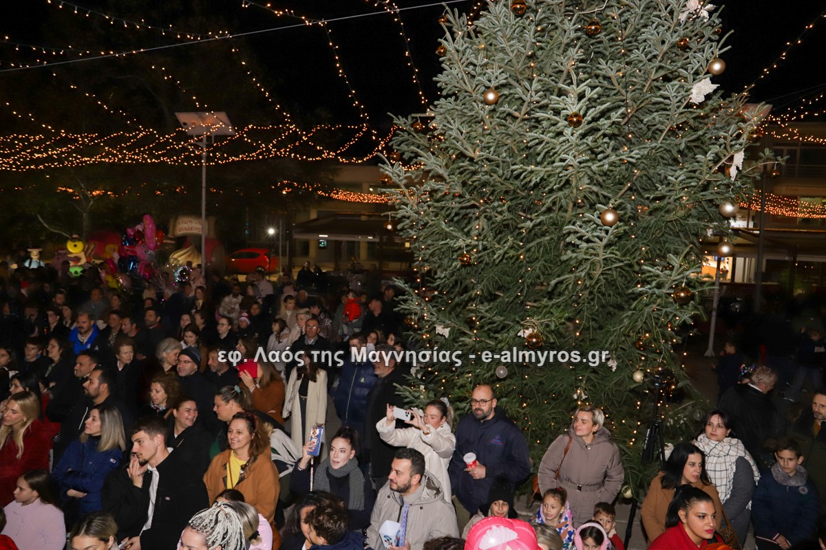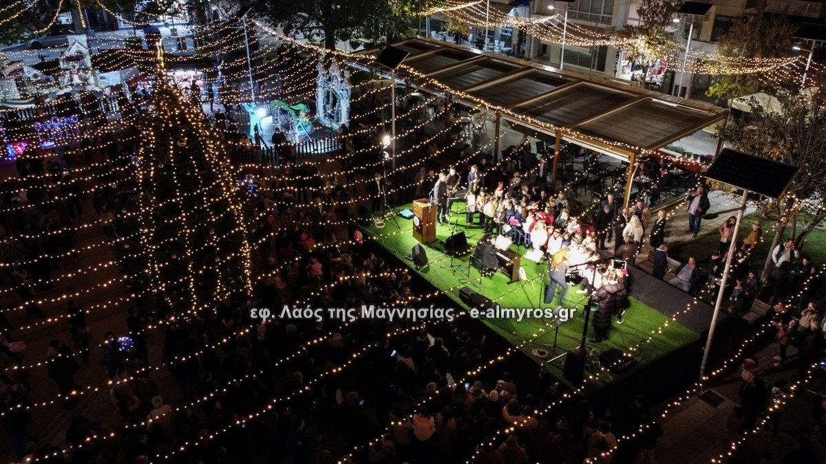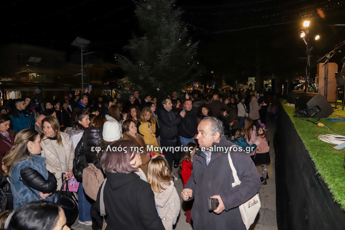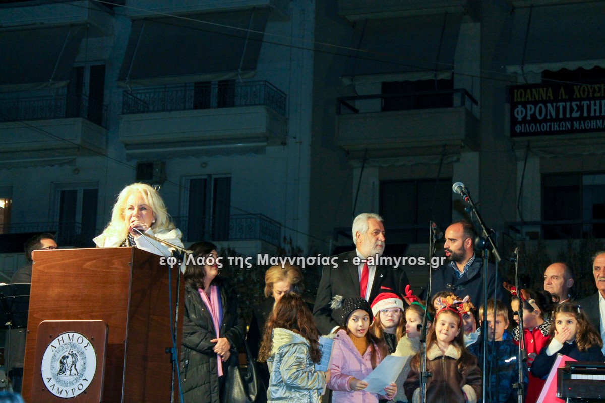 Μια μεγάλη γιορτή στήθηκε στην πλατεία Αλμυρού την Τρίτη το απόγευμα για την φωταγώγηση της πόλης και του Χριστουγεννιάτικου δέντρου που δεσπόζει στην πλατεία ανάμεσα στο θεματικό πάρκο του πινόκιο. Το πλούσιο μουσικό πρόγραμμα ξεκίνησε με την Νεανική – Παιδική χορωδία, ενώ ακολούθησαν η Μικτή Τετράφωνη Χορωδία και το Φωνητικό Σύνολο του Δημοτικού Ωδείου Αλμυρού, υπό τη διεύθυνση της μαέστρου Μαριάννας Σαμαρτζή, της Καλλιτεχνικής διευθύντριας Φρόσως Γαρδικλή και των καθηγητών Γατή Αθανασίου στο σαξόφωνο και κλαρινέτο και του Κουσιόπουλου Δημητρίου στο φλάουτο. Η Φιλαρμονική ορχήστρα του Δήμου Αλμυρού υπό την καθοδήγηση της Μαρίας Αγγελή, μας χάρισαν χριστουγεννιάτικη μουσική διασχίζοντας τους δρόμους της πόλης μας.