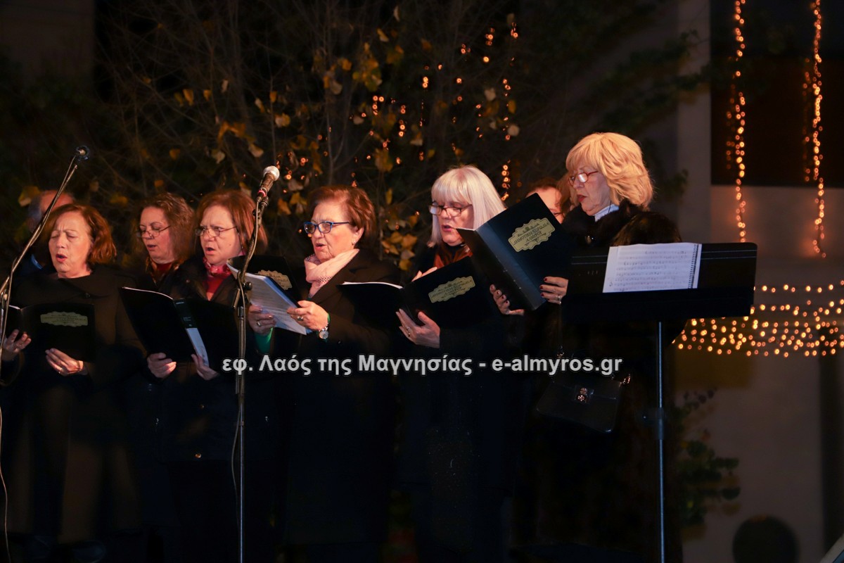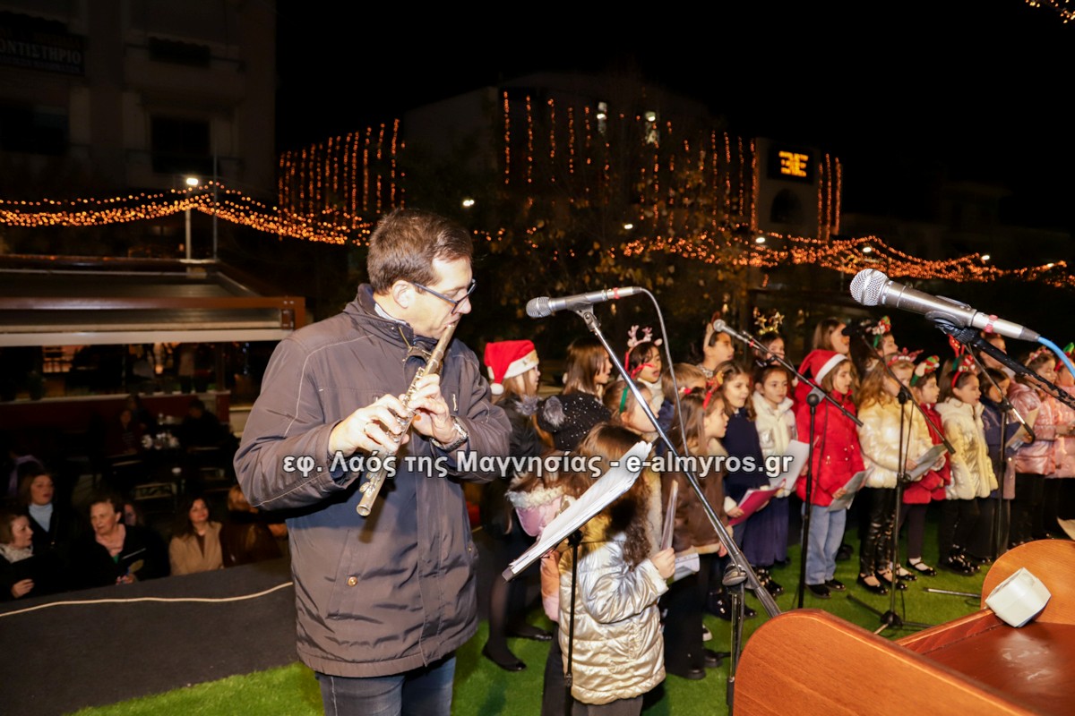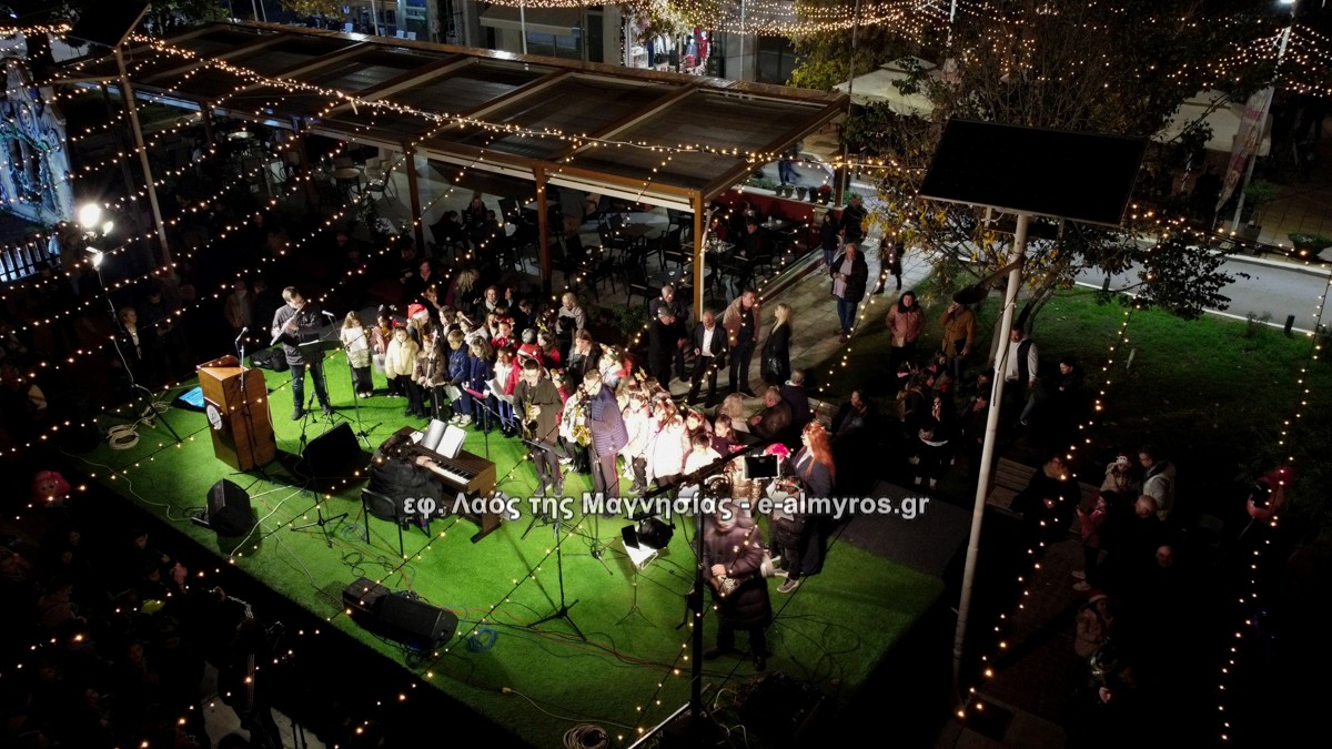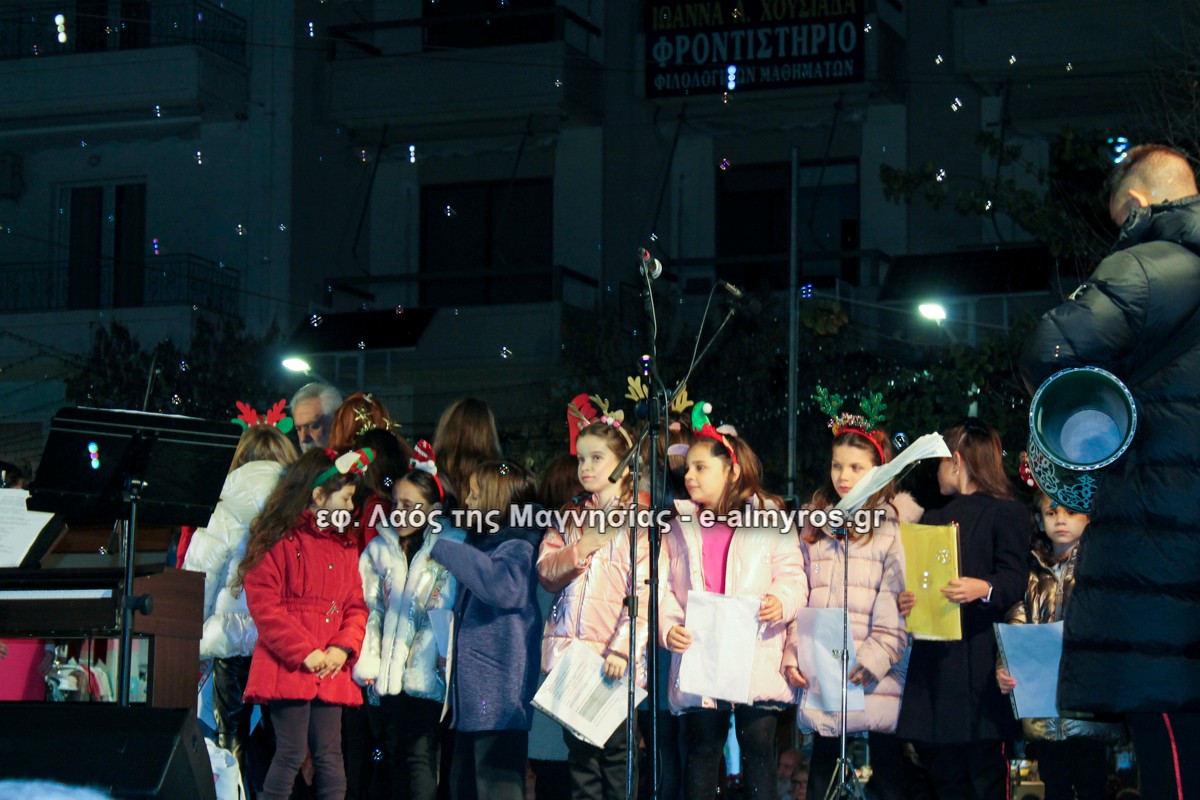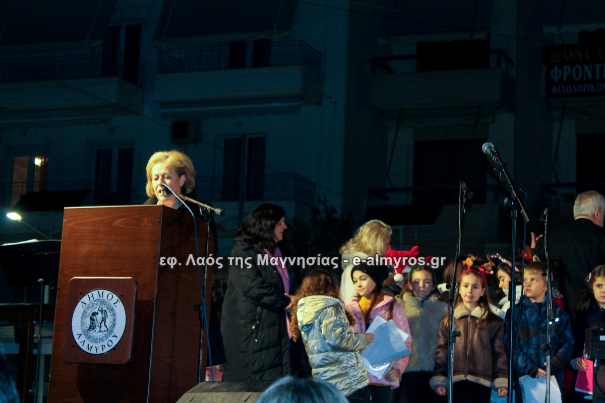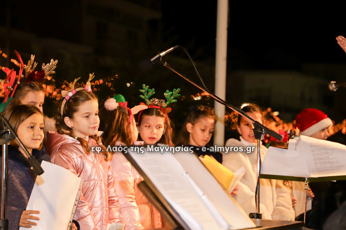 Μια μεγάλη γιορτή στήθηκε στην πλατεία Αλμυρού την Τρίτη το απόγευμα για την φωταγώγηση της πόλης και του Χριστουγεννιάτικου δέντρου που δεσπόζει στην πλατεία ανάμεσα στο θεματικό πάρκο του πινόκιο. Το πλούσιο μουσικό πρόγραμμα ξεκίνησε με την Νεανική – Παιδική χορωδία, ενώ ακολούθησαν η Μικτή Τετράφωνη Χορωδία και το Φωνητικό Σύνολο του Δημοτικού Ωδείου Αλμυρού, υπό τη διεύθυνση της μαέστρου Μαριάννας Σαμαρτζή, της Καλλιτεχνικής διευθύντριας Φρόσως Γαρδικλή και των καθηγητών Γατή Αθανασίου στο σαξόφωνο και κλαρινέτο και του Κουσιόπουλου Δημητρίου στο φλάουτο. Η Φιλαρμονική ορχήστρα του Δήμου Αλμυρού υπό την καθοδήγηση της Μαρίας Αγγελή, μας χάρισαν χριστουγεννιάτικη μουσική διασχίζοντας τους δρόμους της πόλης μας.