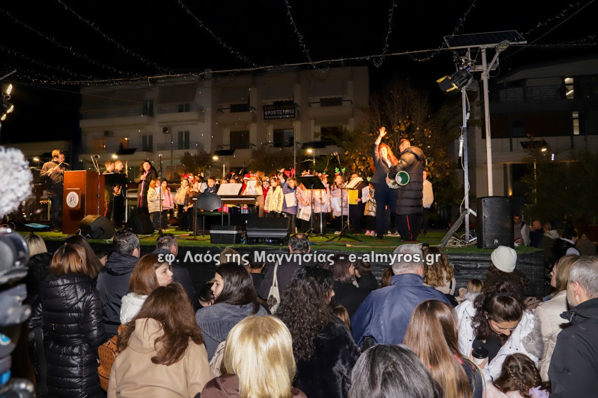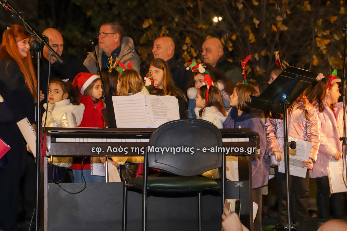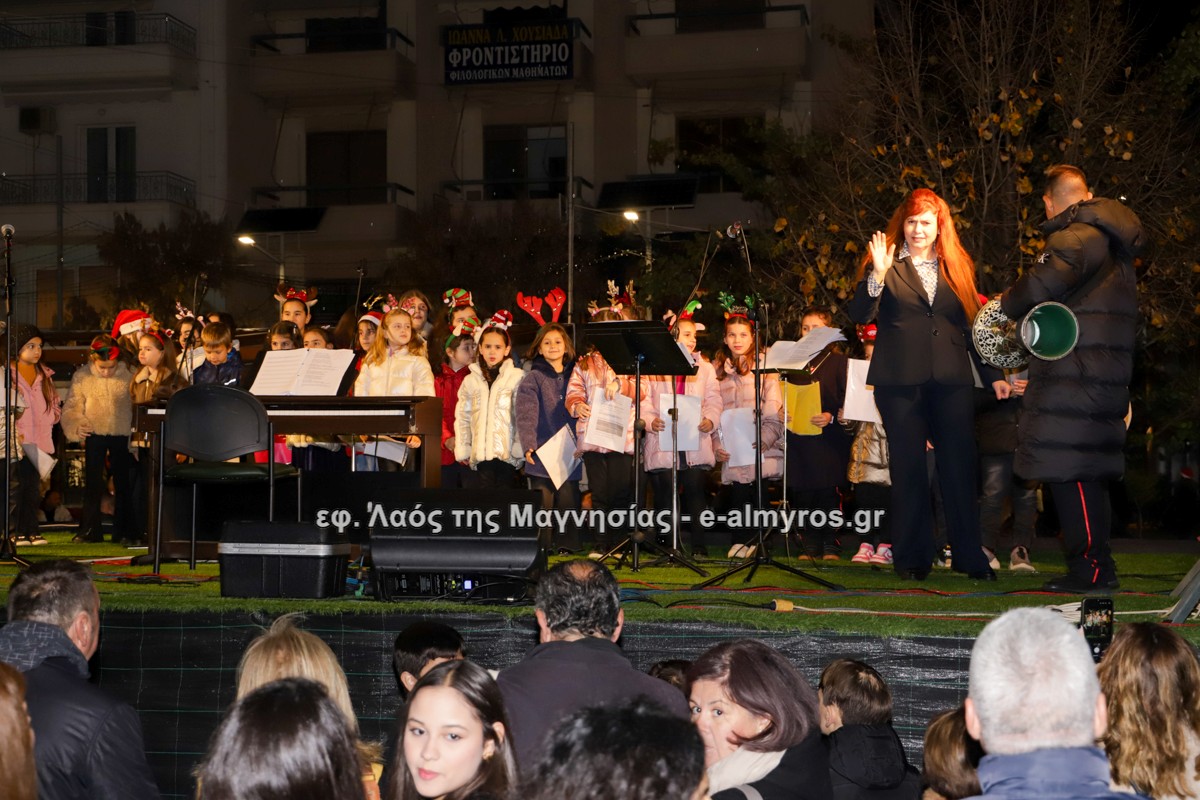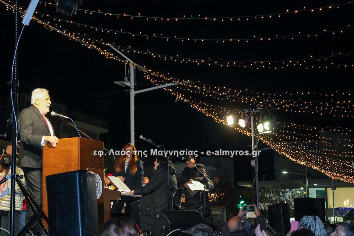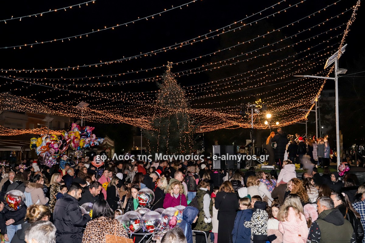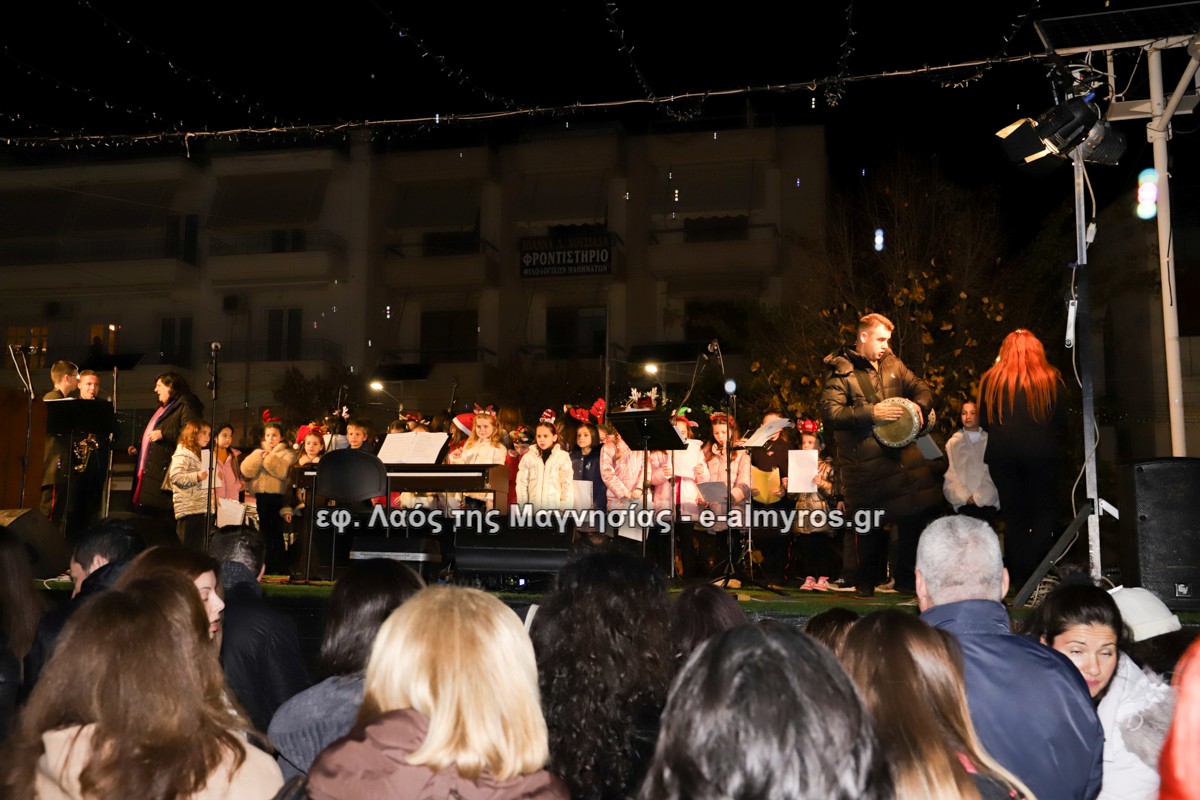 Μια μεγάλη γιορτή στήθηκε στην πλατεία Αλμυρού την Τρίτη το απόγευμα για την φωταγώγηση της πόλης και του Χριστουγεννιάτικου δέντρου που δεσπόζει στην πλατεία ανάμεσα στο θεματικό πάρκο του πινόκιο. Το πλούσιο μουσικό πρόγραμμα ξεκίνησε με την Νεανική – Παιδική χορωδία, ενώ ακολούθησαν η Μικτή Τετράφωνη Χορωδία και το Φωνητικό Σύνολο του Δημοτικού Ωδείου Αλμυρού, υπό τη διεύθυνση της μαέστρου Μαριάννας Σαμαρτζή, της Καλλιτεχνικής διευθύντριας Φρόσως Γαρδικλή και των καθηγητών Γατή Αθανασίου στο σαξόφωνο και κλαρινέτο και του Κουσιόπουλου Δημητρίου στο φλάουτο. Η Φιλαρμονική ορχήστρα του Δήμου Αλμυρού υπό την καθοδήγηση της Μαρίας Αγγελή, μας χάρισαν χριστουγεννιάτικη μουσική διασχίζοντας τους δρόμους της πόλης μας.