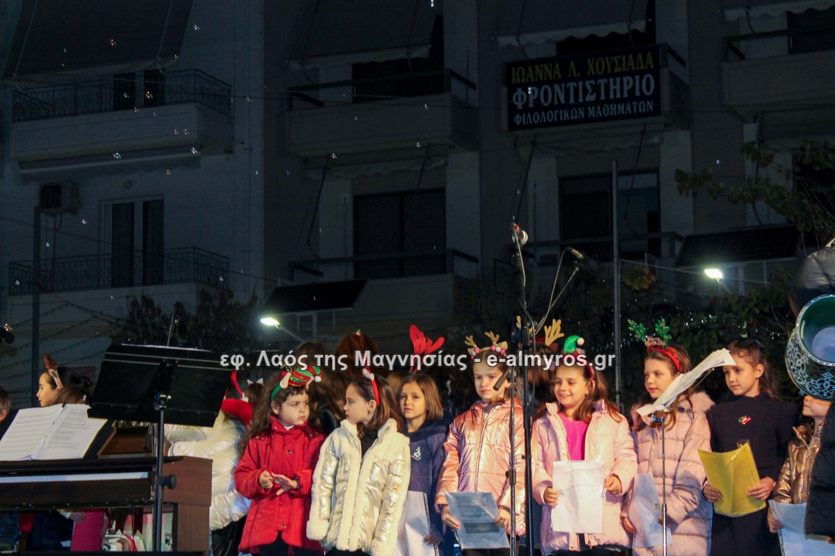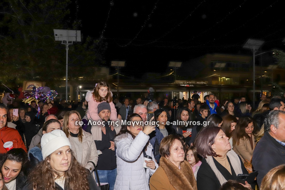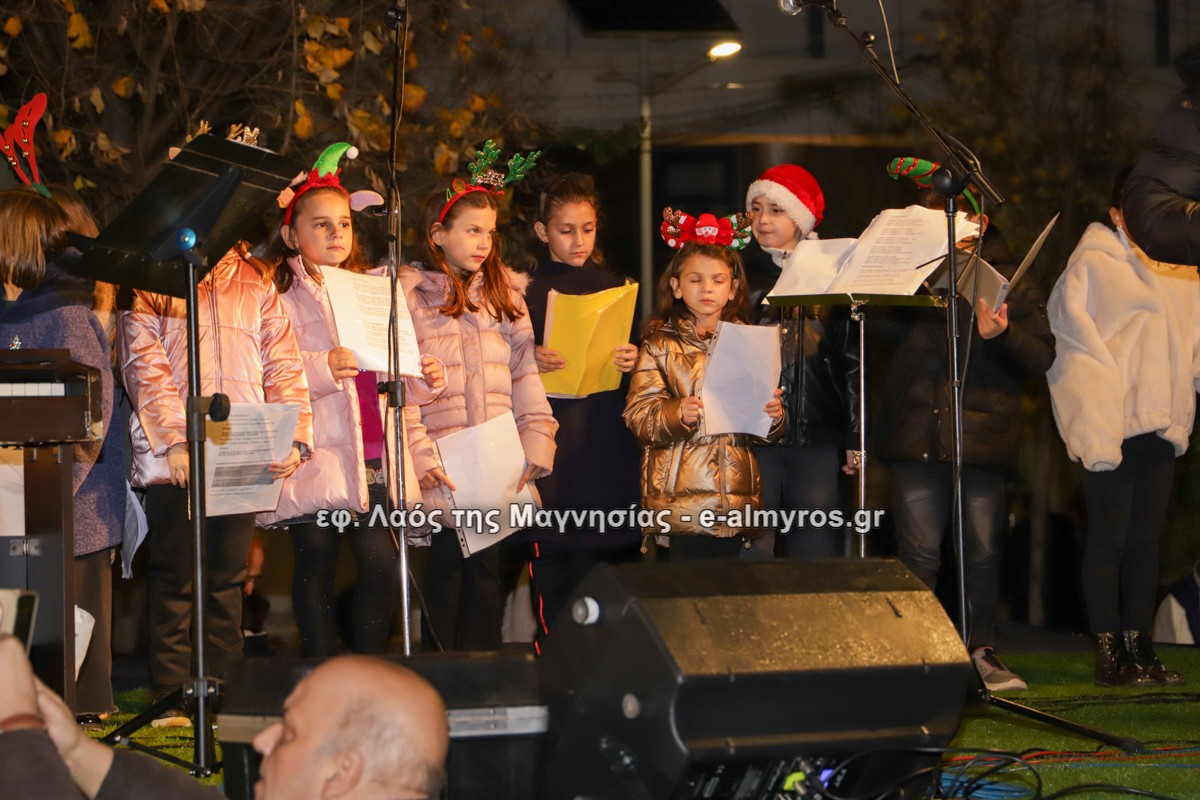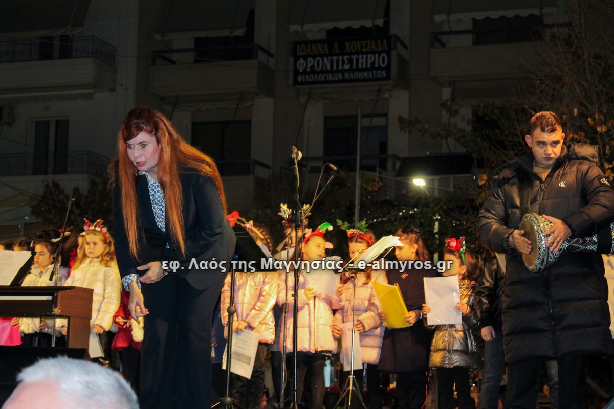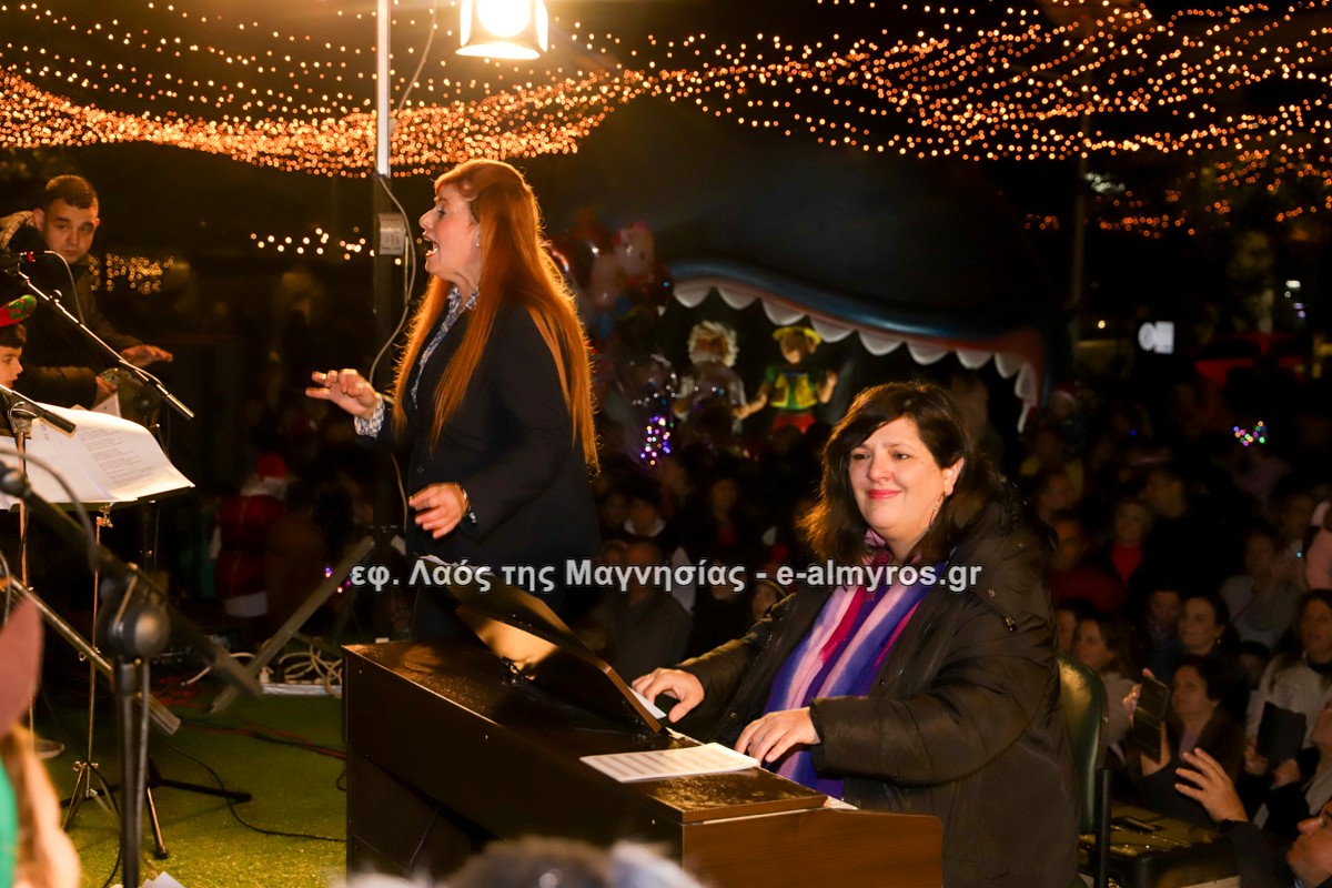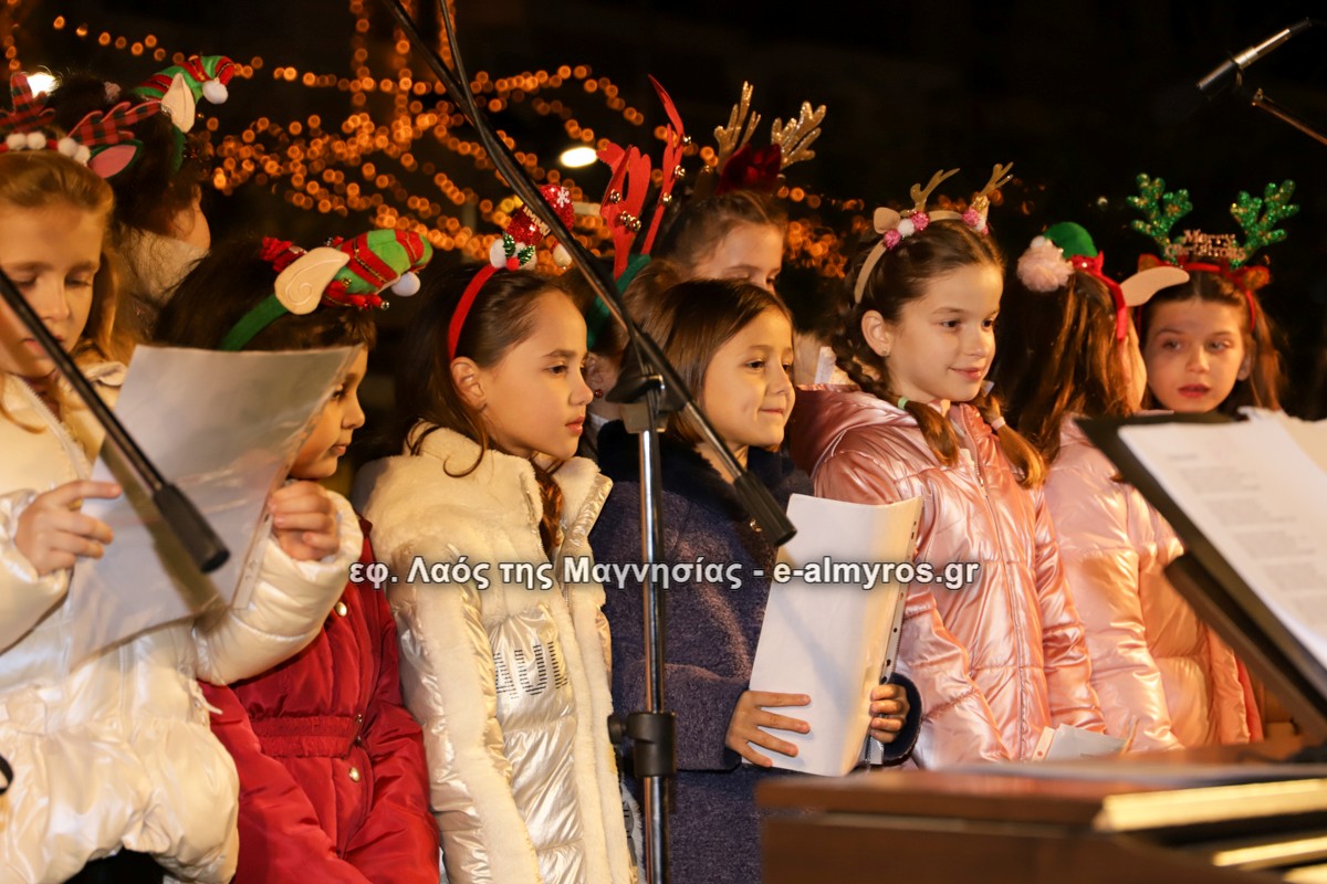 Μια μεγάλη γιορτή στήθηκε στην πλατεία Αλμυρού την Τρίτη το απόγευμα για την φωταγώγηση της πόλης και του Χριστουγεννιάτικου δέντρου που δεσπόζει στην πλατεία ανάμεσα στο θεματικό πάρκο του πινόκιο. Το πλούσιο μουσικό πρόγραμμα ξεκίνησε με την Νεανική – Παιδική χορωδία, ενώ ακολούθησαν η Μικτή Τετράφωνη Χορωδία και το Φωνητικό Σύνολο του Δημοτικού Ωδείου Αλμυρού, υπό τη διεύθυνση της μαέστρου Μαριάννας Σαμαρτζή, της Καλλιτεχνικής διευθύντριας Φρόσως Γαρδικλή και των καθηγητών Γατή Αθανασίου στο σαξόφωνο και κλαρινέτο και του Κουσιόπουλου Δημητρίου στο φλάουτο. Η Φιλαρμονική ορχήστρα του Δήμου Αλμυρού υπό την καθοδήγηση της Μαρίας Αγγελή, μας χάρισαν χριστουγεννιάτικη μουσική διασχίζοντας τους δρόμους της πόλης μας.