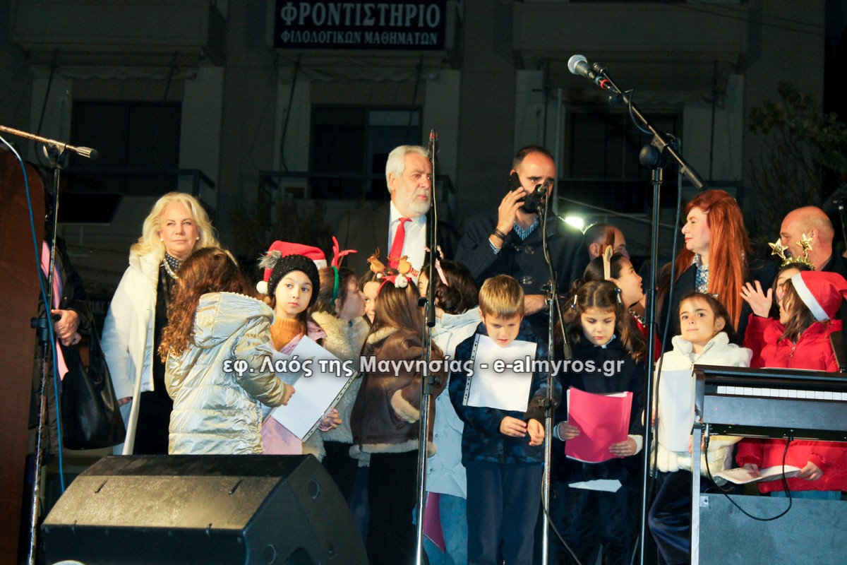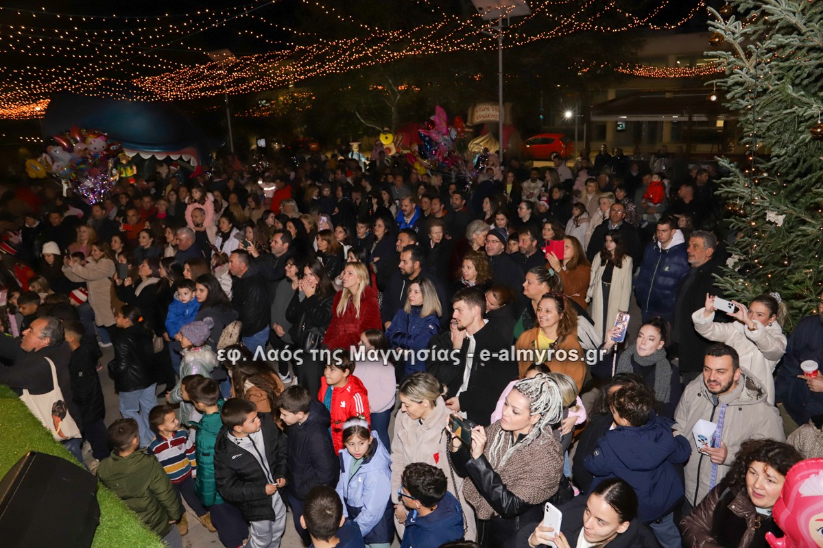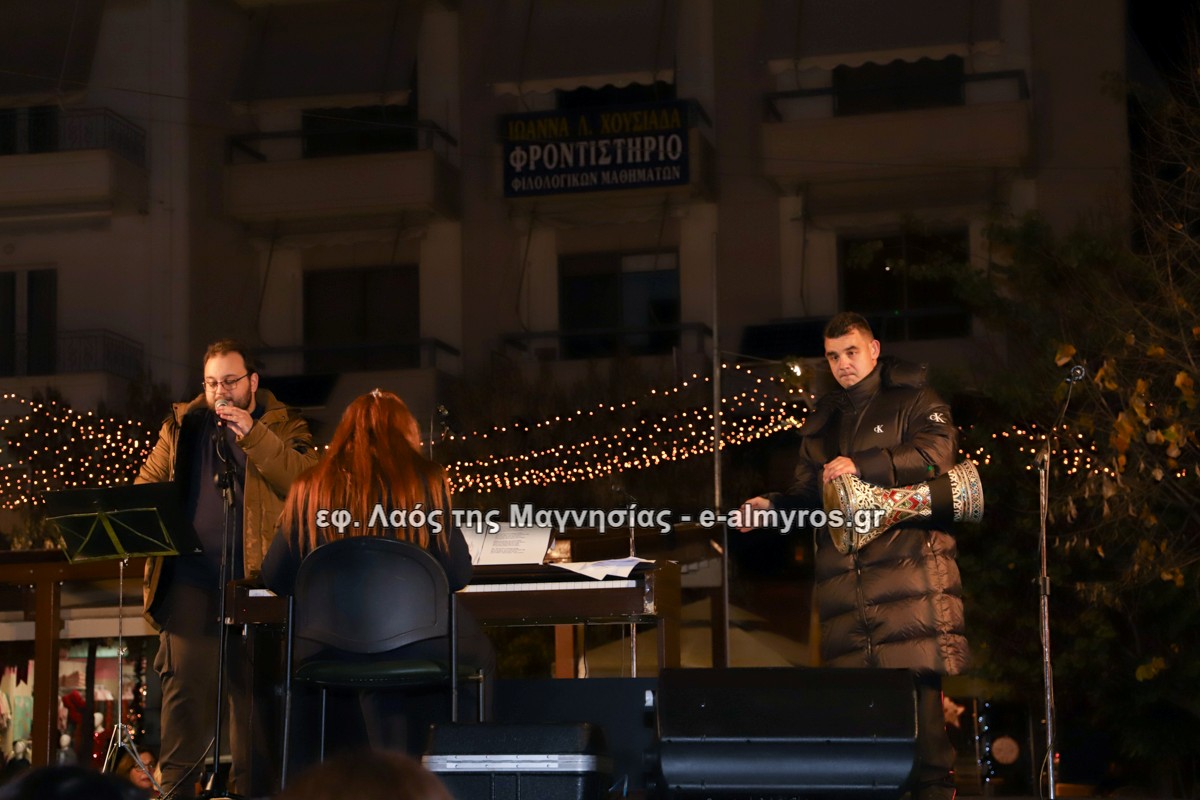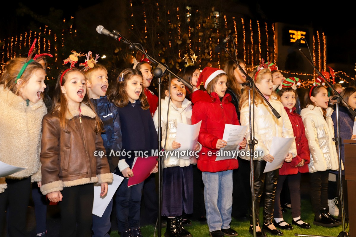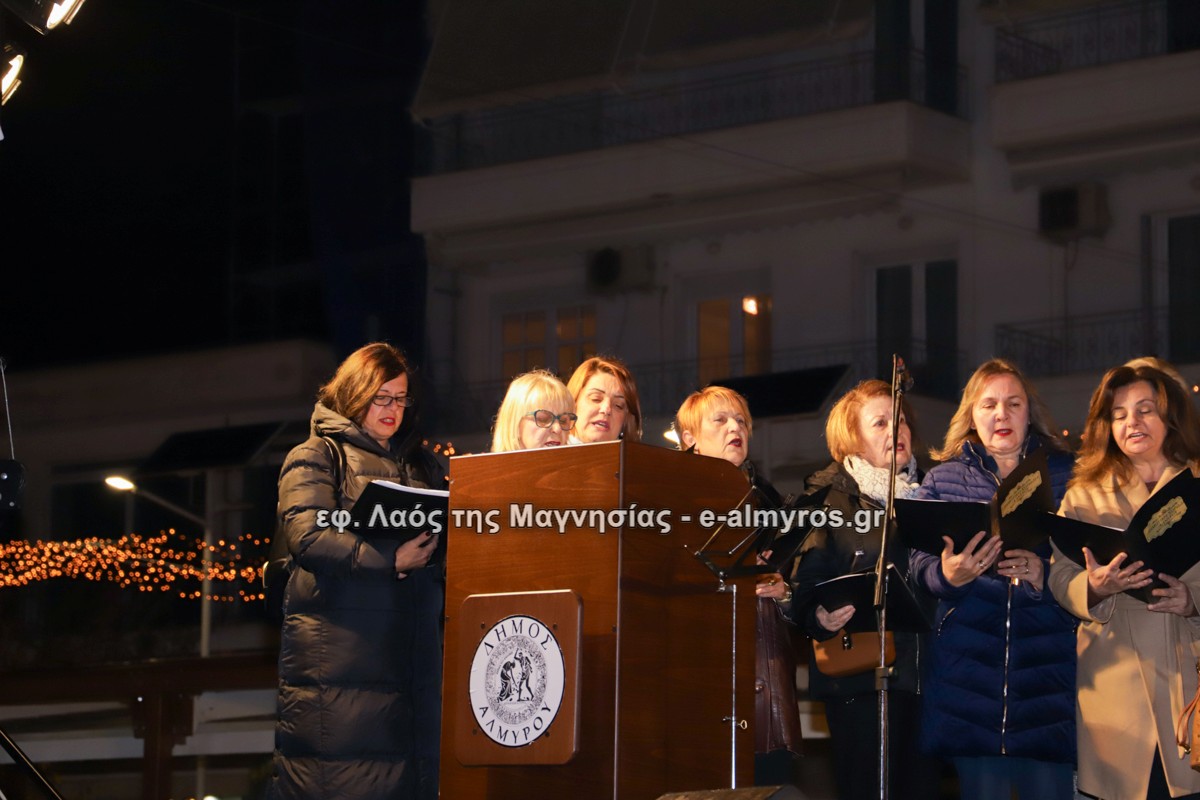 Μια μεγάλη γιορτή στήθηκε στην πλατεία Αλμυρού την Τρίτη το απόγευμα για την φωταγώγηση της πόλης και του Χριστουγεννιάτικου δέντρου που δεσπόζει στην πλατεία ανάμεσα στο θεματικό πάρκο του πινόκιο. Το πλούσιο μουσικό πρόγραμμα ξεκίνησε με την Νεανική – Παιδική χορωδία, ενώ ακολούθησαν η Μικτή Τετράφωνη Χορωδία και το Φωνητικό Σύνολο του Δημοτικού Ωδείου Αλμυρού, υπό τη διεύθυνση της μαέστρου Μαριάννας Σαμαρτζή, της Καλλιτεχνικής διευθύντριας Φρόσως Γαρδικλή και των καθηγητών Γατή Αθανασίου στο σαξόφωνο και κλαρινέτο και του Κουσιόπουλου Δημητρίου στο φλάουτο. Η Φιλαρμονική ορχήστρα του Δήμου Αλμυρού υπό την καθοδήγηση της Μαρίας Αγγελή, μας χάρισαν χριστουγεννιάτικη μουσική διασχίζοντας τους δρόμους της πόλης μας.