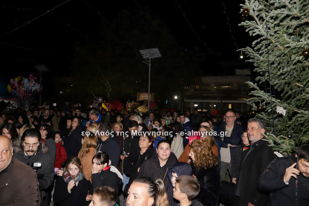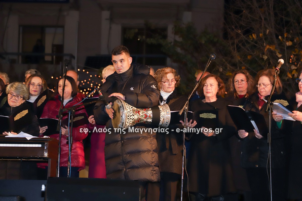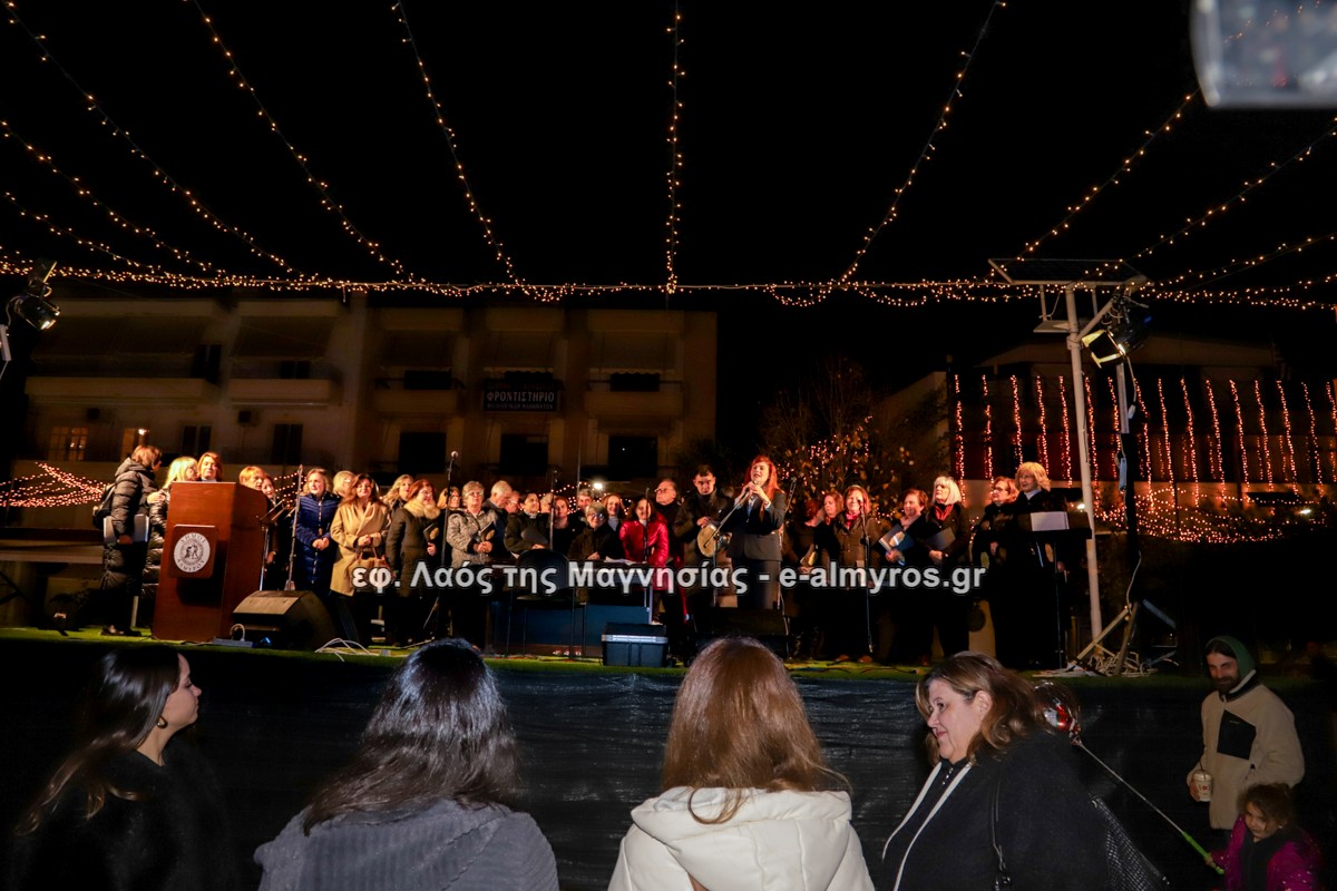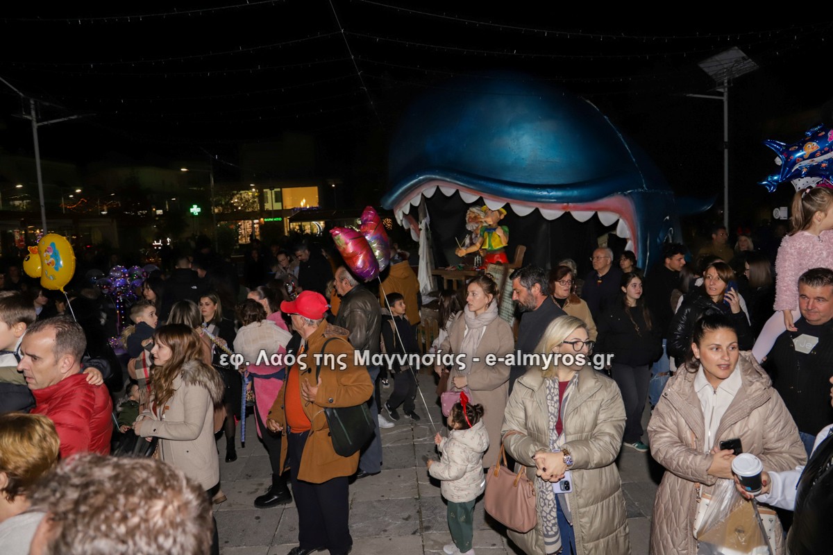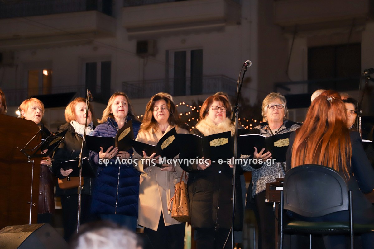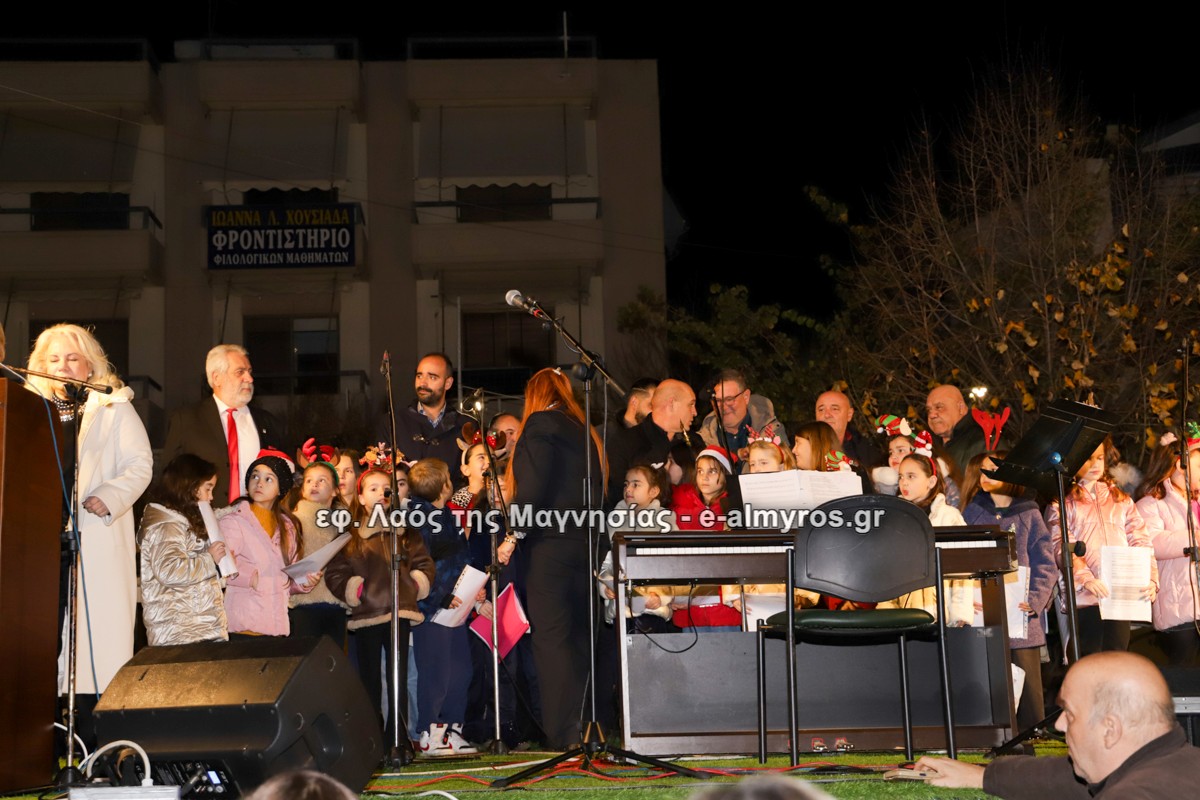 Μια μεγάλη γιορτή στήθηκε στην πλατεία Αλμυρού την Τρίτη το απόγευμα για την φωταγώγηση της πόλης και του Χριστουγεννιάτικου δέντρου που δεσπόζει στην πλατεία ανάμεσα στο θεματικό πάρκο του πινόκιο. Το πλούσιο μουσικό πρόγραμμα ξεκίνησε με την Νεανική – Παιδική χορωδία, ενώ ακολούθησαν η Μικτή Τετράφωνη Χορωδία και το Φωνητικό Σύνολο του Δημοτικού Ωδείου Αλμυρού, υπό τη διεύθυνση της μαέστρου Μαριάννας Σαμαρτζή, της Καλλιτεχνικής διευθύντριας Φρόσως Γαρδικλή και των καθηγητών Γατή Αθανασίου στο σαξόφωνο και κλαρινέτο και του Κουσιόπουλου Δημητρίου στο φλάουτο. Η Φιλαρμονική ορχήστρα του Δήμου Αλμυρού υπό την καθοδήγηση της Μαρίας Αγγελή, μας χάρισαν χριστουγεννιάτικη μουσική διασχίζοντας τους δρόμους της πόλης μας.
