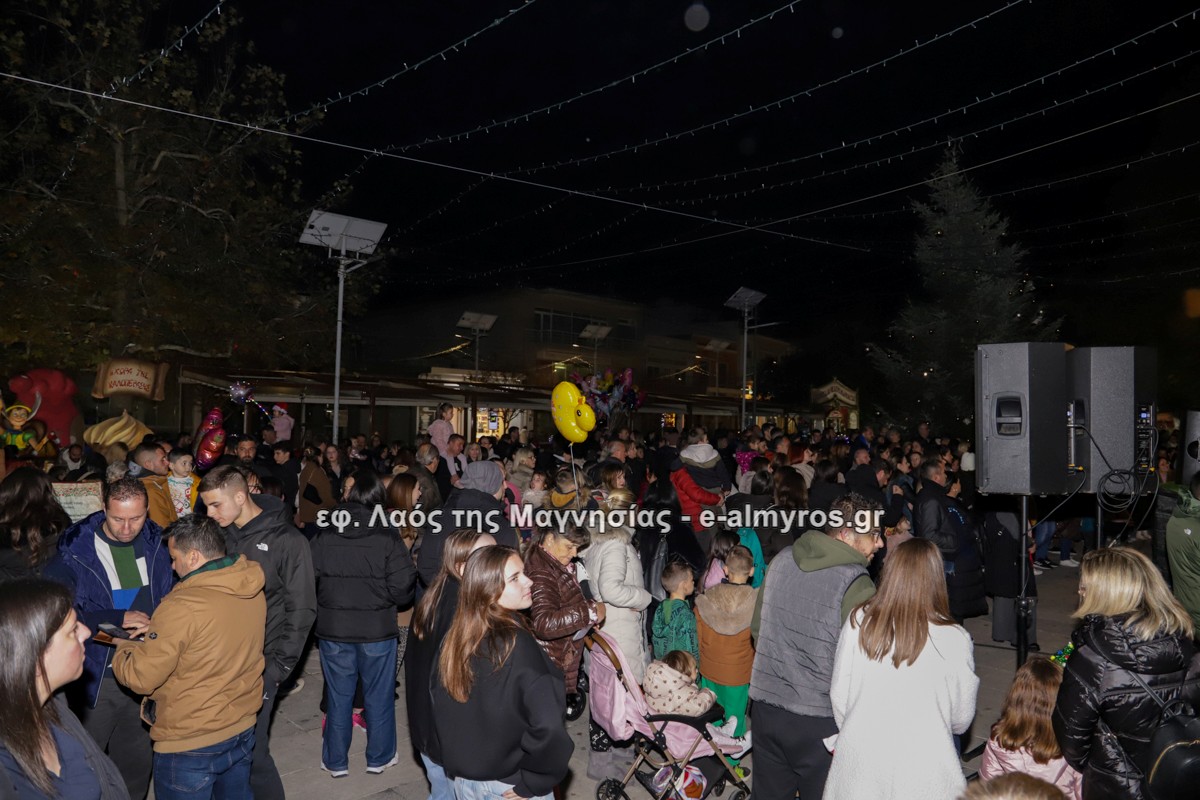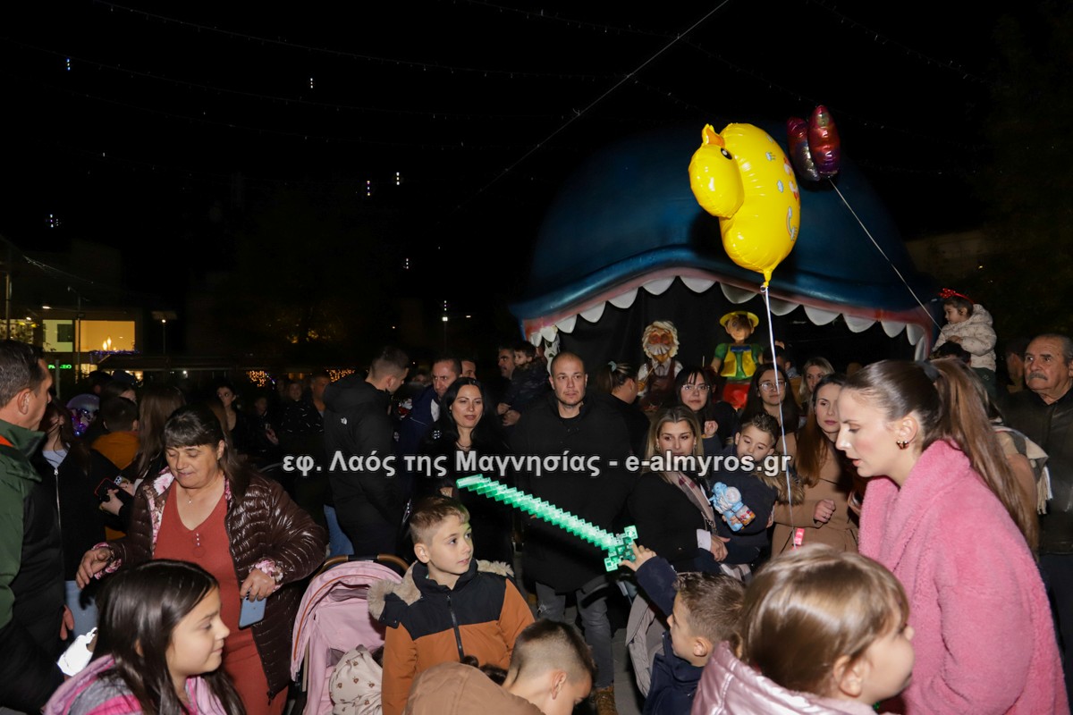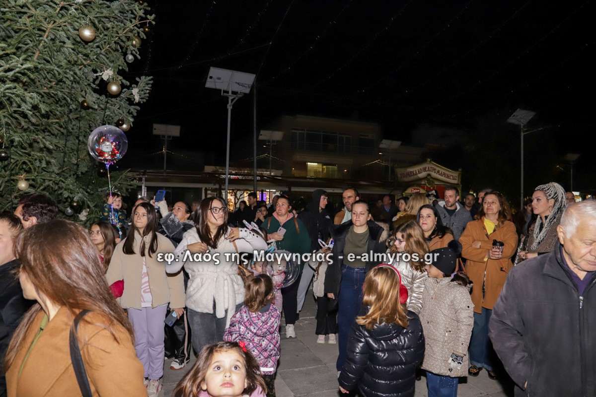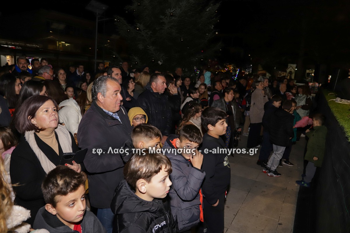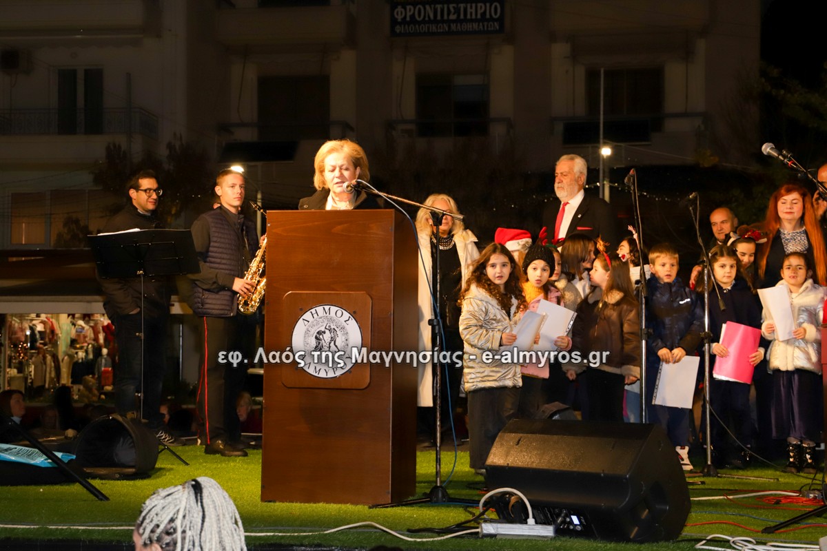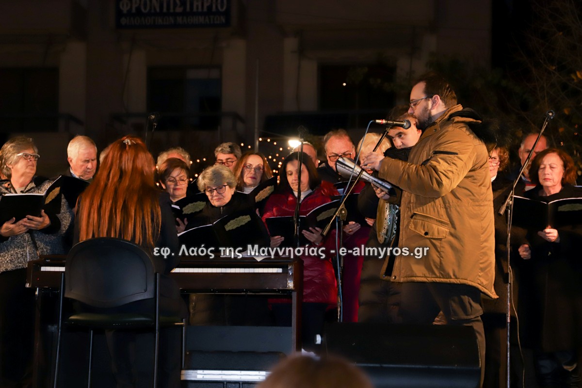 Μια μεγάλη γιορτή στήθηκε στην πλατεία Αλμυρού την Τρίτη το απόγευμα για την φωταγώγηση της πόλης και του Χριστουγεννιάτικου δέντρου που δεσπόζει στην πλατεία ανάμεσα στο θεματικό πάρκο του πινόκιο. Το πλούσιο μουσικό πρόγραμμα ξεκίνησε με την Νεανική – Παιδική χορωδία, ενώ ακολούθησαν η Μικτή Τετράφωνη Χορωδία και το Φωνητικό Σύνολο του Δημοτικού Ωδείου Αλμυρού, υπό τη διεύθυνση της μαέστρου Μαριάννας Σαμαρτζή, της Καλλιτεχνικής διευθύντριας Φρόσως Γαρδικλή και των καθηγητών Γατή Αθανασίου στο σαξόφωνο και κλαρινέτο και του Κουσιόπουλου Δημητρίου στο φλάουτο. Η Φιλαρμονική ορχήστρα του Δήμου Αλμυρού υπό την καθοδήγηση της Μαρίας Αγγελή, μας χάρισαν χριστουγεννιάτικη μουσική διασχίζοντας τους δρόμους της πόλης μας.