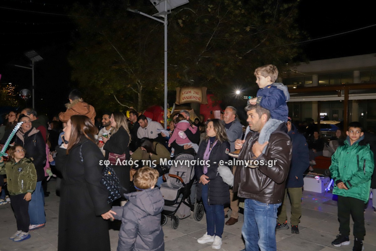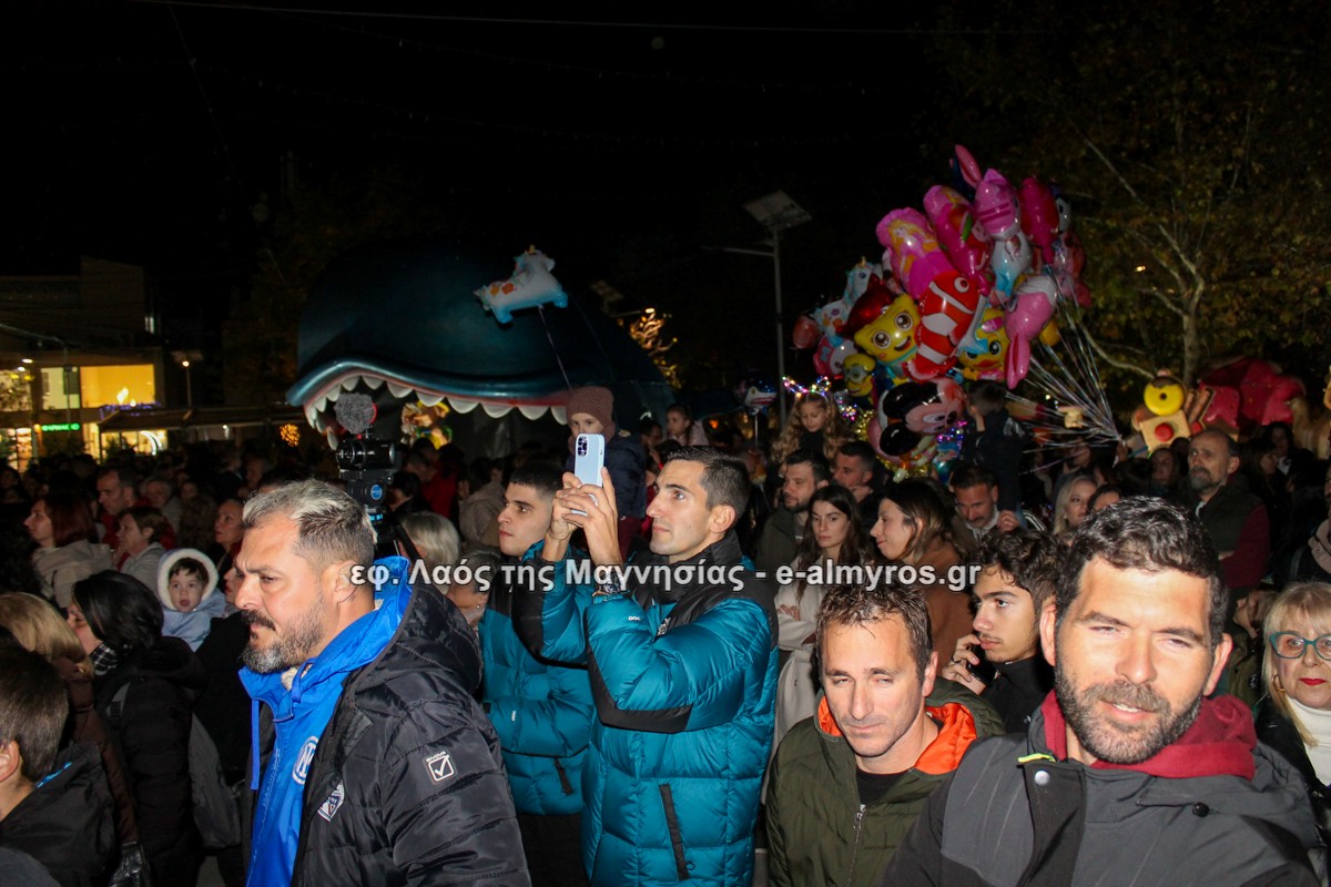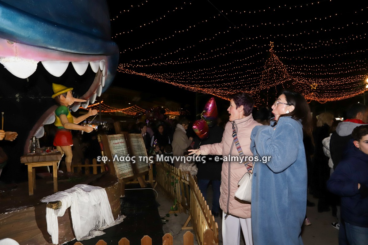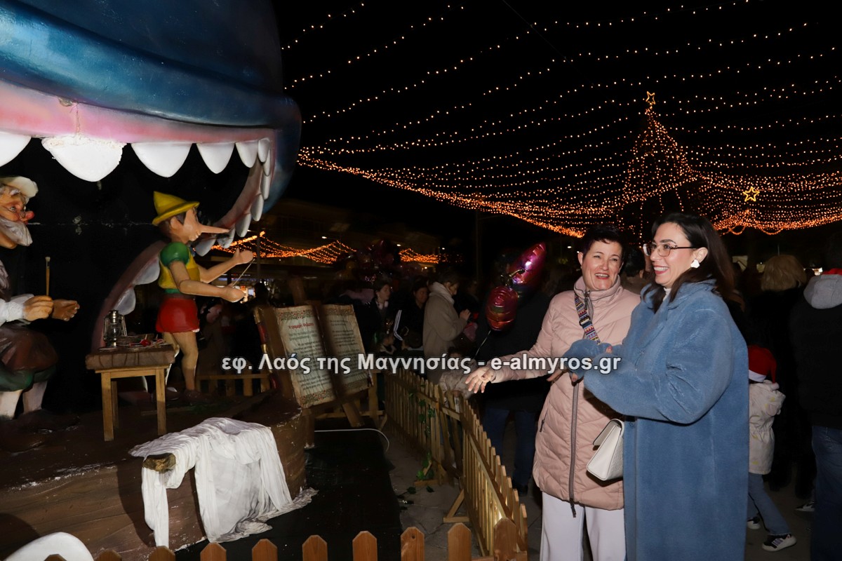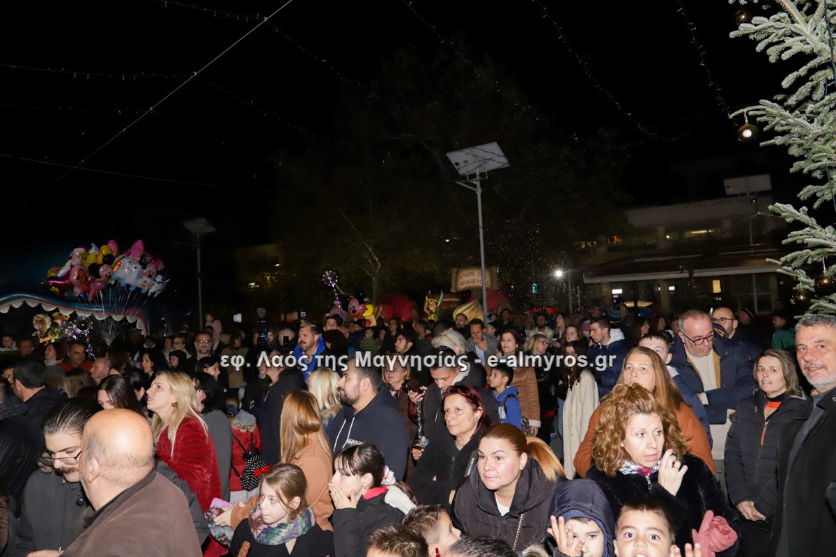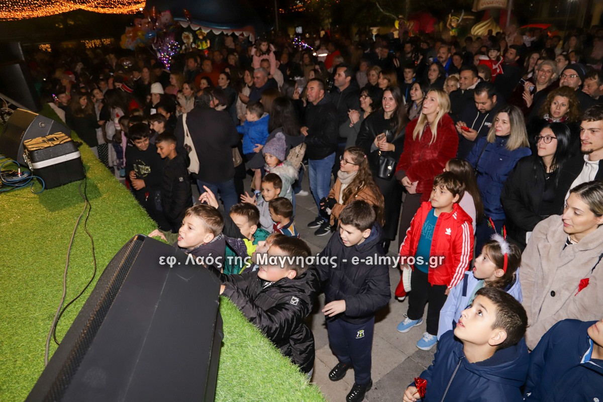 Μια μεγάλη γιορτή στήθηκε στην πλατεία Αλμυρού την Τρίτη το απόγευμα για την φωταγώγηση της πόλης και του Χριστουγεννιάτικου δέντρου που δεσπόζει στην πλατεία ανάμεσα στο θεματικό πάρκο του πινόκιο. Το πλούσιο μουσικό πρόγραμμα ξεκίνησε με την Νεανική – Παιδική χορωδία, ενώ ακολούθησαν η Μικτή Τετράφωνη Χορωδία και το Φωνητικό Σύνολο του Δημοτικού Ωδείου Αλμυρού, υπό τη διεύθυνση της μαέστρου Μαριάννας Σαμαρτζή, της Καλλιτεχνικής διευθύντριας Φρόσως Γαρδικλή και των καθηγητών Γατή Αθανασίου στο σαξόφωνο και κλαρινέτο και του Κουσιόπουλου Δημητρίου στο φλάουτο. Η Φιλαρμονική ορχήστρα του Δήμου Αλμυρού υπό την καθοδήγηση της Μαρίας Αγγελή, μας χάρισαν χριστουγεννιάτικη μουσική διασχίζοντας τους δρόμους της πόλης μας.