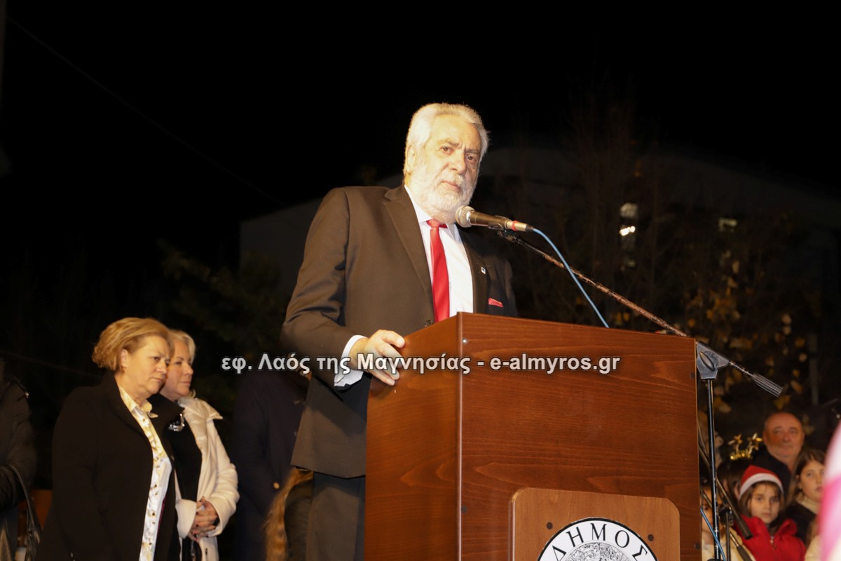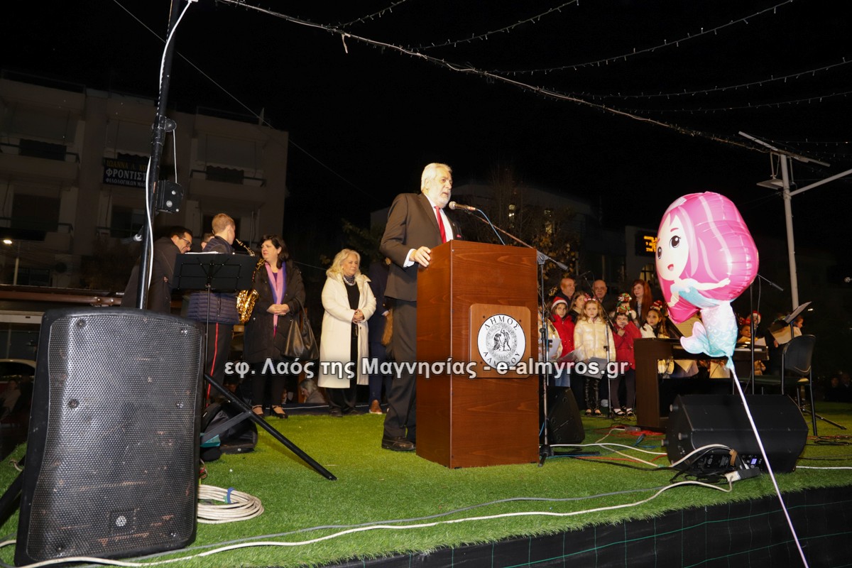 Ο Δήμαρχος Αλμυρού Δημήτριος Εσερίδης φωταγώγησε το δένδρο, ενώ παρευρέθησαν η Αντιπεριφερειάρχης κα Άννα-Μαρία Παπαδημητρίου, οι Αντιδήμαρχοι και Δημοτικοί Σύμβουλοι και εκπρόσωποι κοινοτήτων!