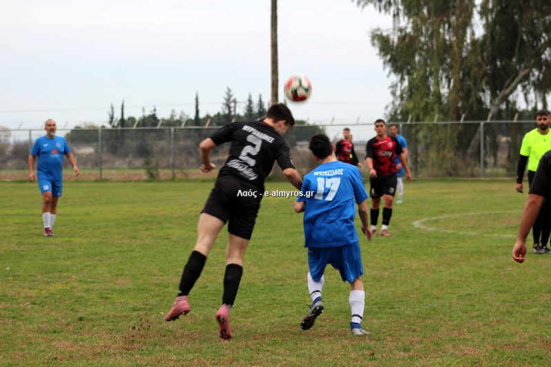 Τρίτη νίκη στο πρωτάθλημα και πρώτη στο γήπεδο του Πλατάνου για τους Μυρμηδόνες. Το γκολ που σημείωσε ο νεαρός Χατζέλας στο 4ο λεπτό ήταν αρκετό για να χαρίσει το τρίποντο στην ομάδα του Θοδωρή Σκούρα επί του Πρωτεσιλάου, στο ντέρμπι του Δήμου Αλμυρού, που διεξήχθη σήμερα για την 9η αγωνιστική της Β’ Τοπικής.