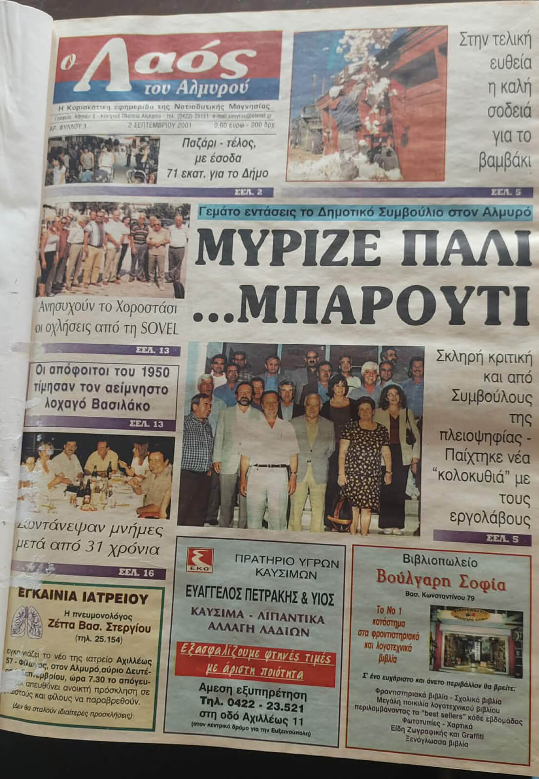 Λαός: 25 χρόνια τοπικός Τύπος. Πρόκειται για μια ιστορία που γράφεται με μελάνι και αγάπη για την Μαγνησία. Ήταν 2 Σεπτεμβρίου του 2001 όταν ο Γιώργος Τσιντσίνης παρουσίασε για πρώτη φορά στο κοινό τον «Λαό του Αλμυρού». Ανατρέχοντας στο πρώτο εκείνο κείμενο του ιδρυτή, οι λέξεις του ηχούν σήμερα πιο επίκαιρες από ποτέ. Ο Γιώργος Τσιντσίνης είχε περιγράψει την έκδοση ως ένα «νέο εκδοτικό εγχείρημα» και μια «καλή ευκαιρία να μετρήσουμε φίλους». Αυτοί οι φίλοι —οι αναγνώστες του Αλμυρού και ολόκληρης της Μαγνησίας— έγιναν το στήριγμα που επέτρεψε στην εφημερίδα να ξεπεράσει κάθε δυσκολία.