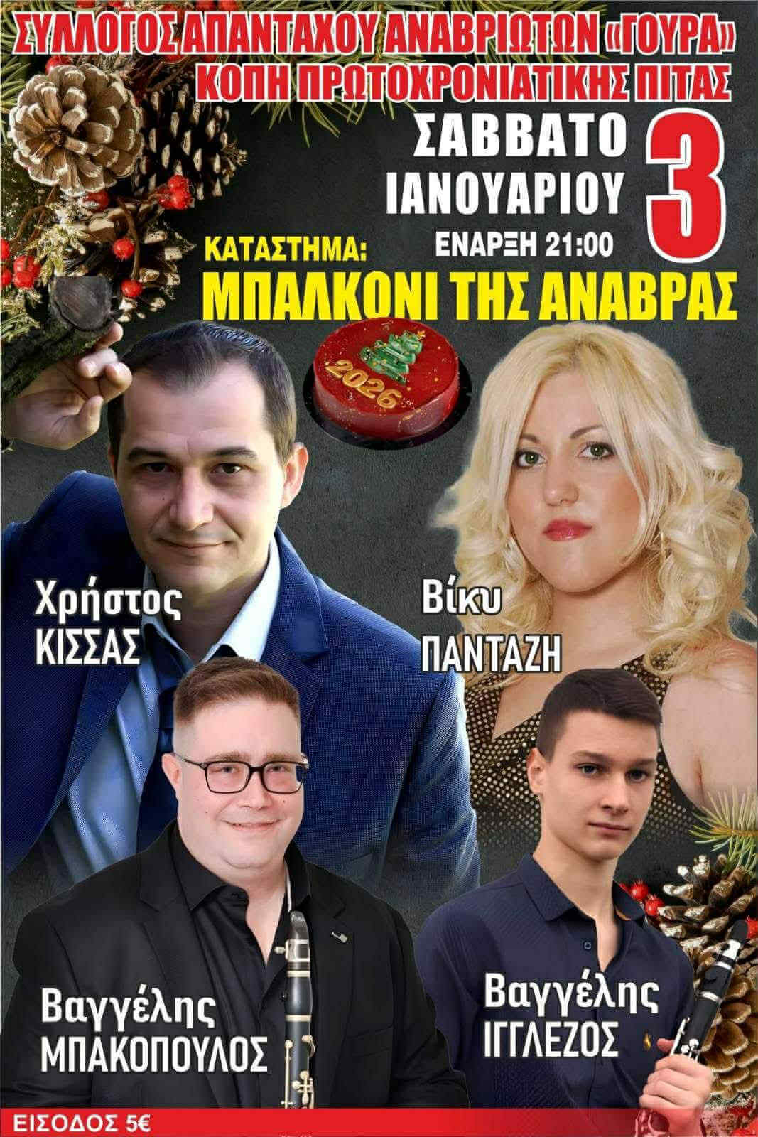 Ο Σύλλογος Απανταχού Αναβριωτών ξεκινά τη νέα χρονιά με ένα όμορφο χειμερινό γλέντι, με αφορμή την κοπή της πρωτοχρονιάτικης πίτας. Σας περιμένουμε όλους για να ανταλλάξουμε ευχές, να περάσουμε όμορφα και να ξεκινήσουμε τη νέα χρονιά με κέφι, μουσική και καλή παρέα.