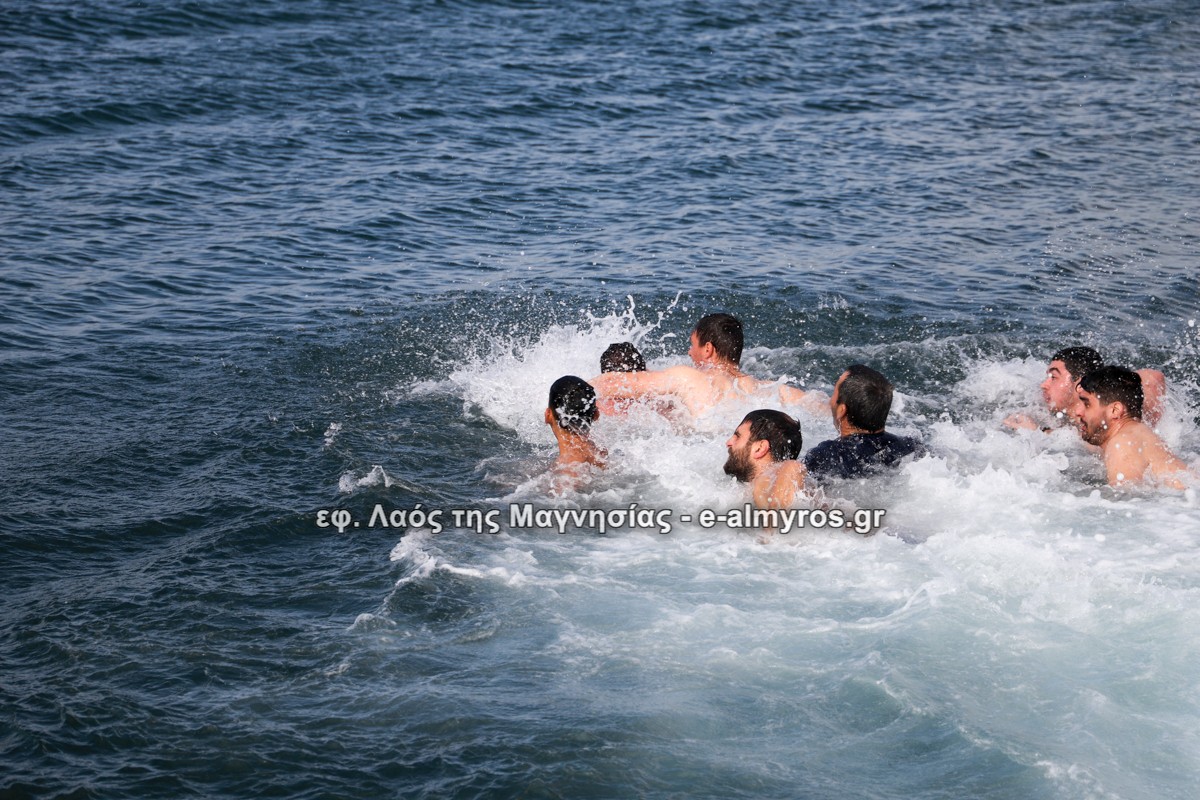Επτά ήταν φέτος οι τολμηροί που βούτηξαν στα παγωμένα νερά του Παγασητικού, οι Θοδωρής Μάνος, ο Μυλωνάς Χρήστος, ο Νταβούρας Χρήστος, ο Άγγελος Μάνος, ο Κωνσταντίνος Τσαμπίρας, ο Κωνσταντίνος Αναστασόπουλος και ο Γεώργιος Παπαευσταθίου.