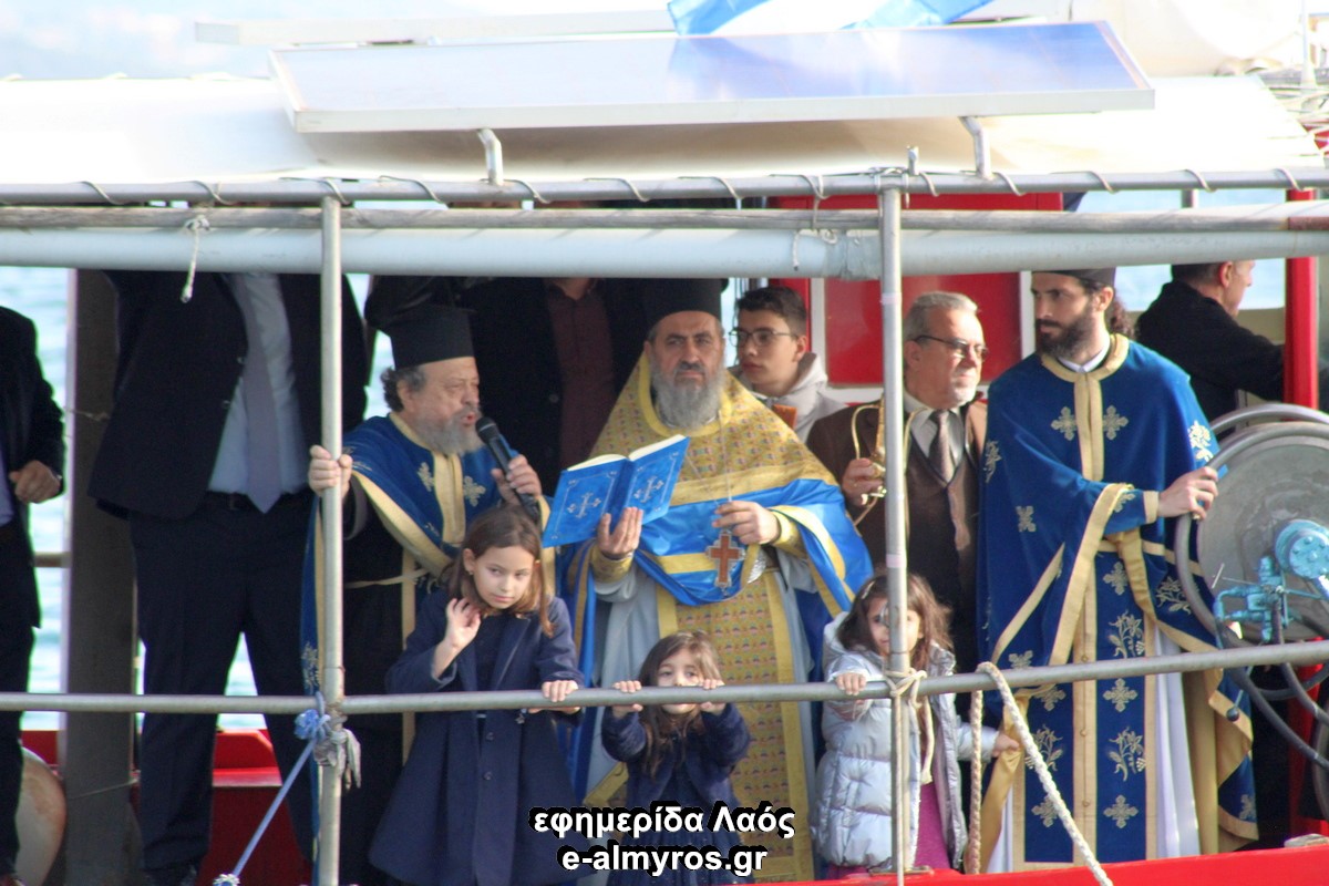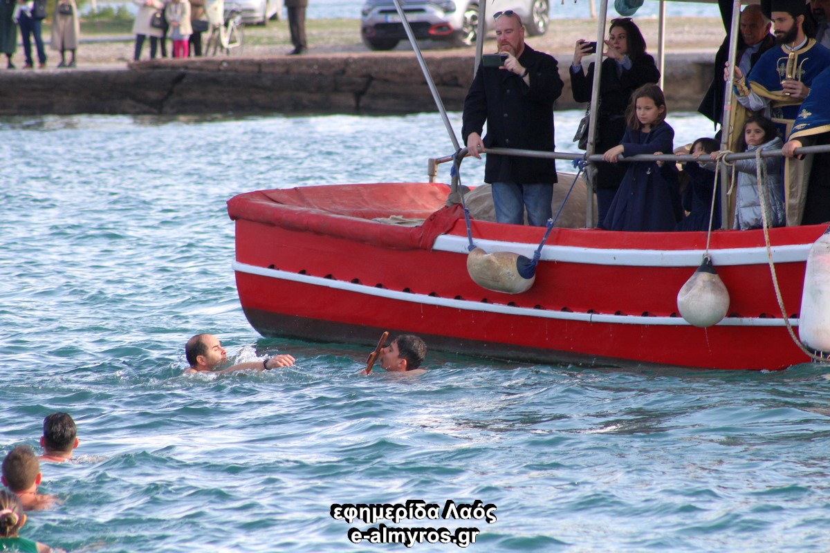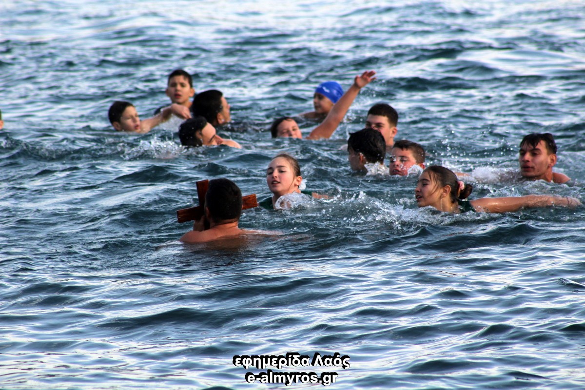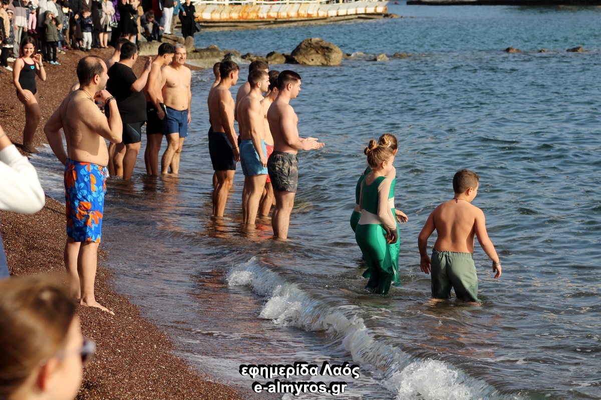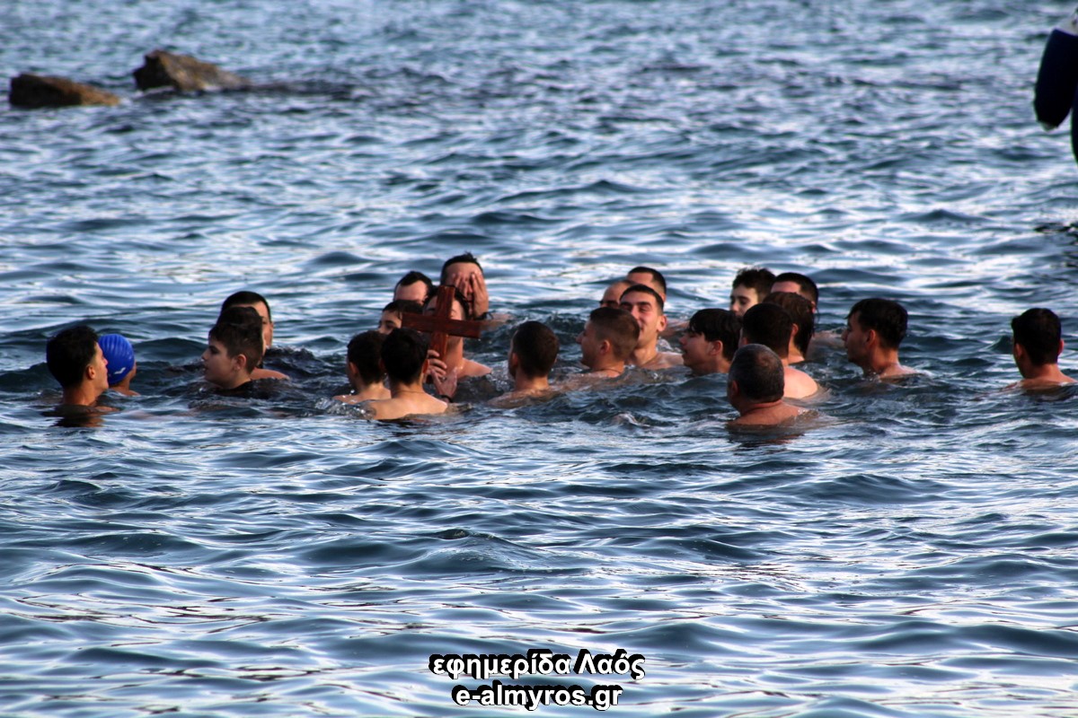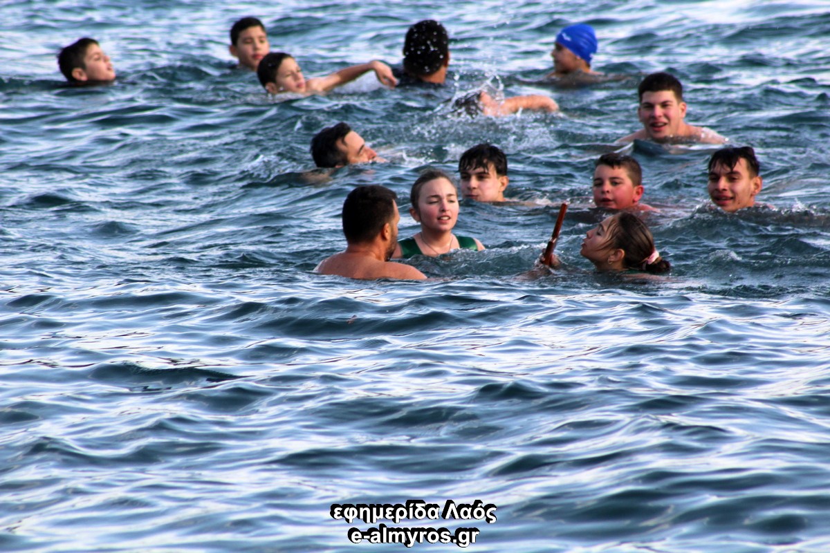 Από εκεί έριξαν τρεις φορές τον Σταυρό στη θάλασσα όπως ορίζει η παράδοση και το τελετουργικό. Μετρήσαμε περίπου 30 άτομα κάθε ηλικίας, από μικρά παιδιά Δημοτικού μέχρι ενήλικες, που αψήφησαν το κρύο και έπεσαν στα κρύα νερά. Ήταν περισσότεροι από κάθε άλλη φορά! Ιδιαίτερη μνεία θα κάνουμε για τα τέσσερα κοριτσάκια που βούτηξαν να πιάσουν τον σταυρό, μάλιστα το ένα εξ αυτών τον έπιασε πρώτη στην πρώτη κατάδυση.