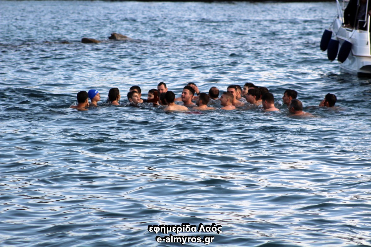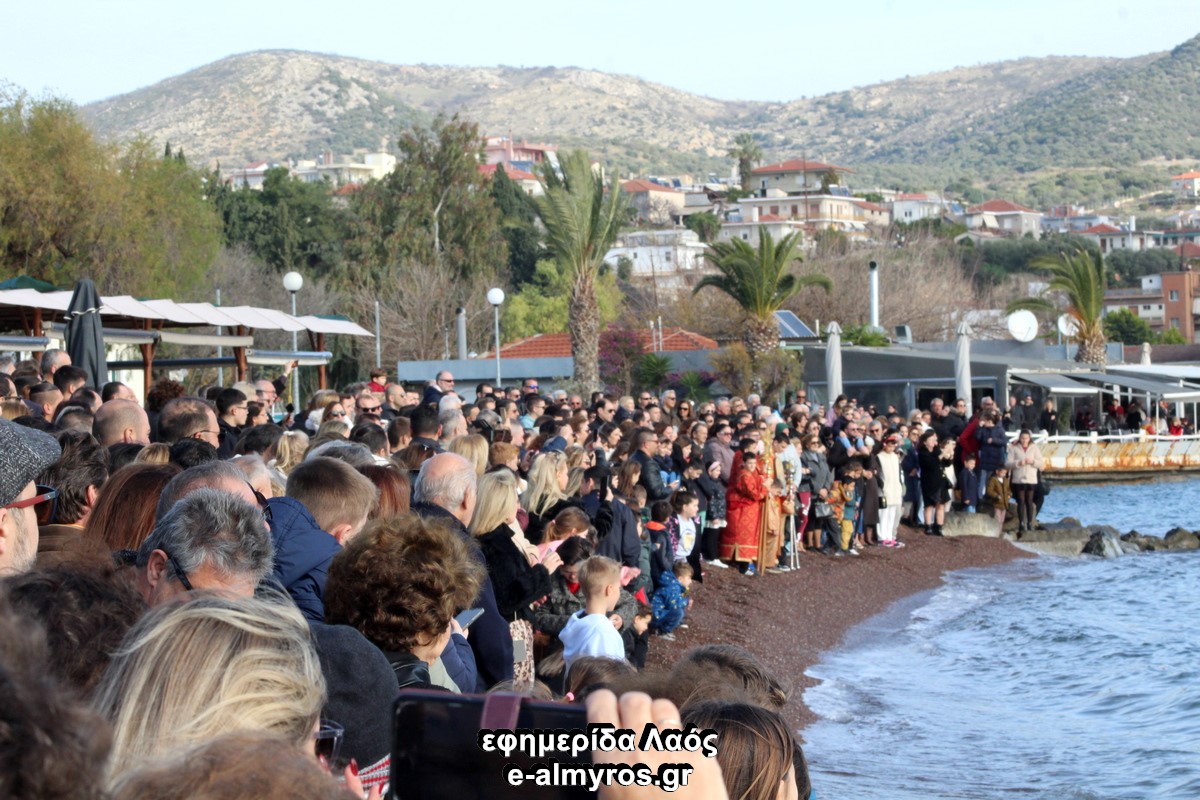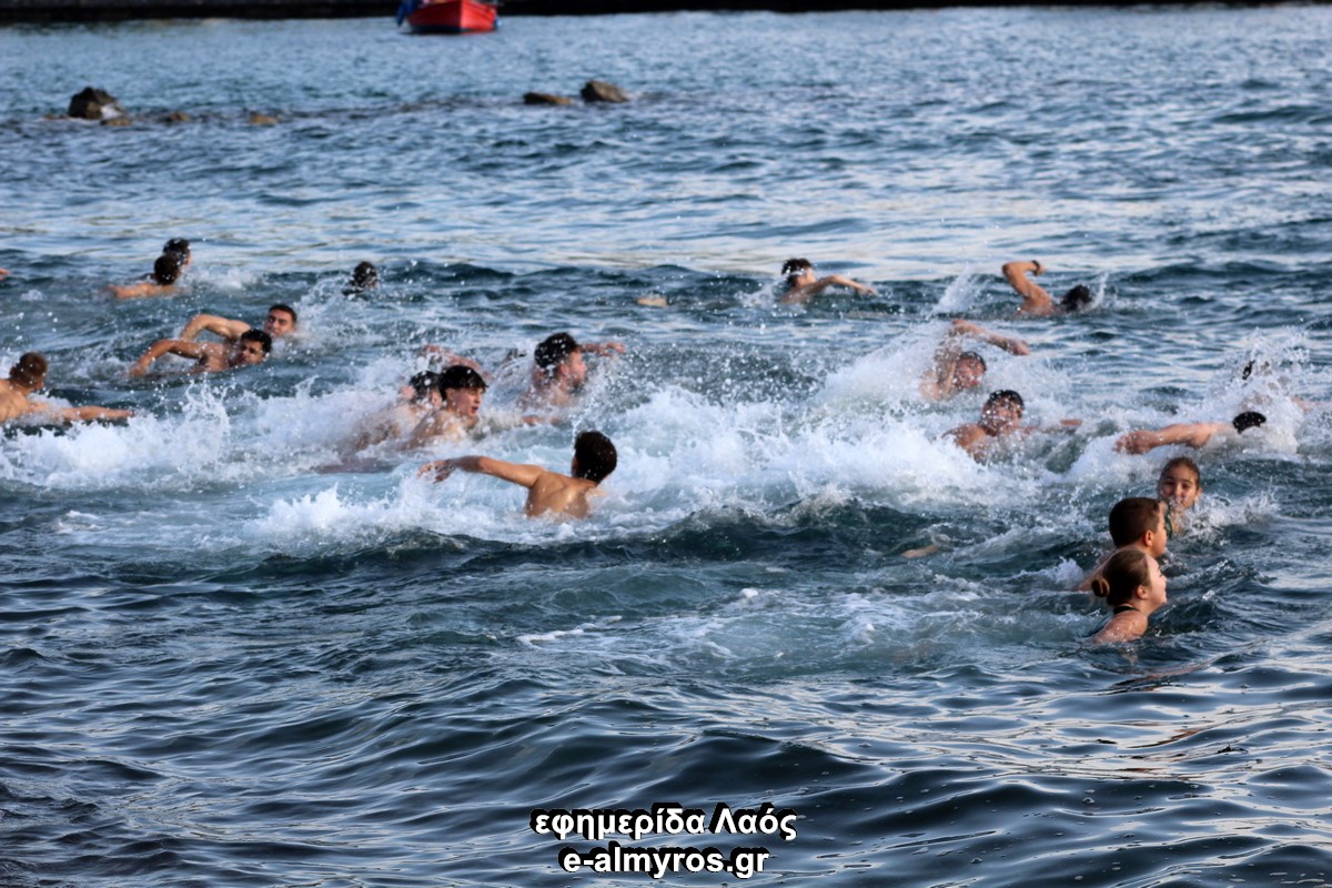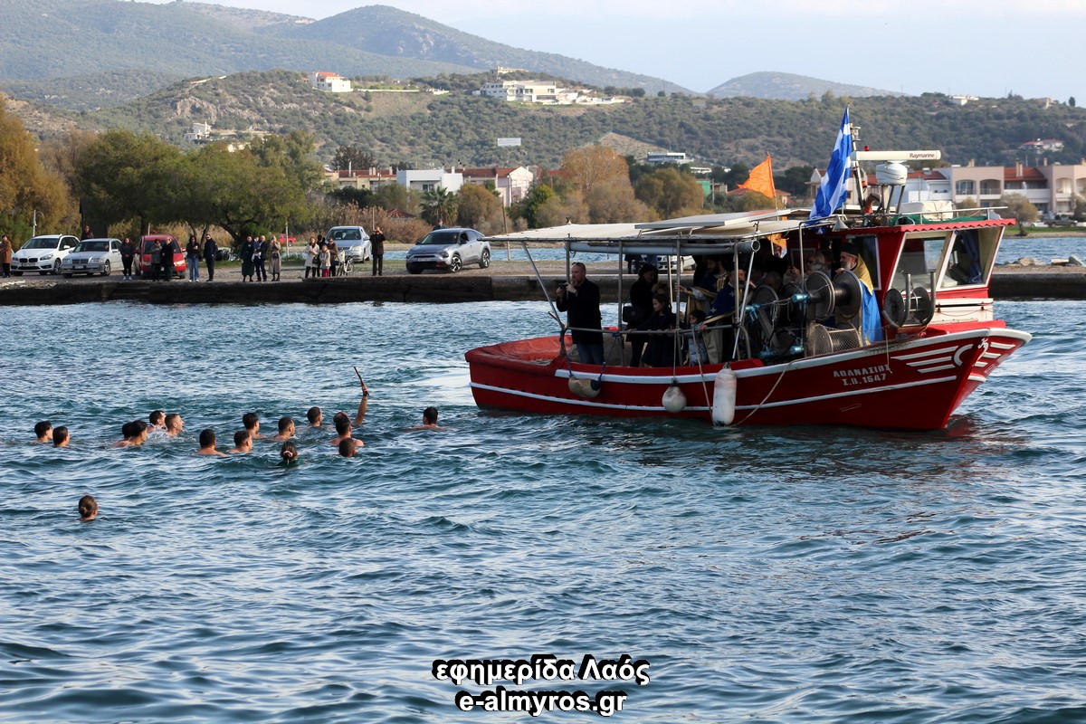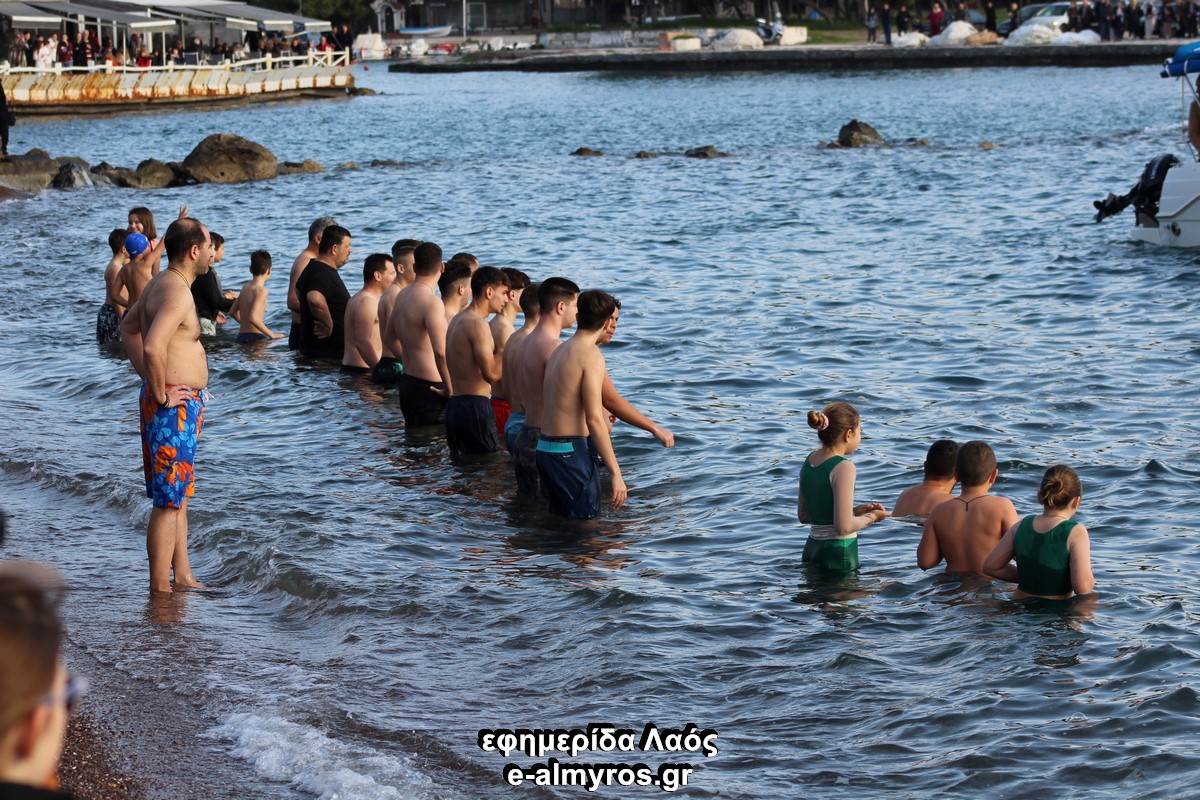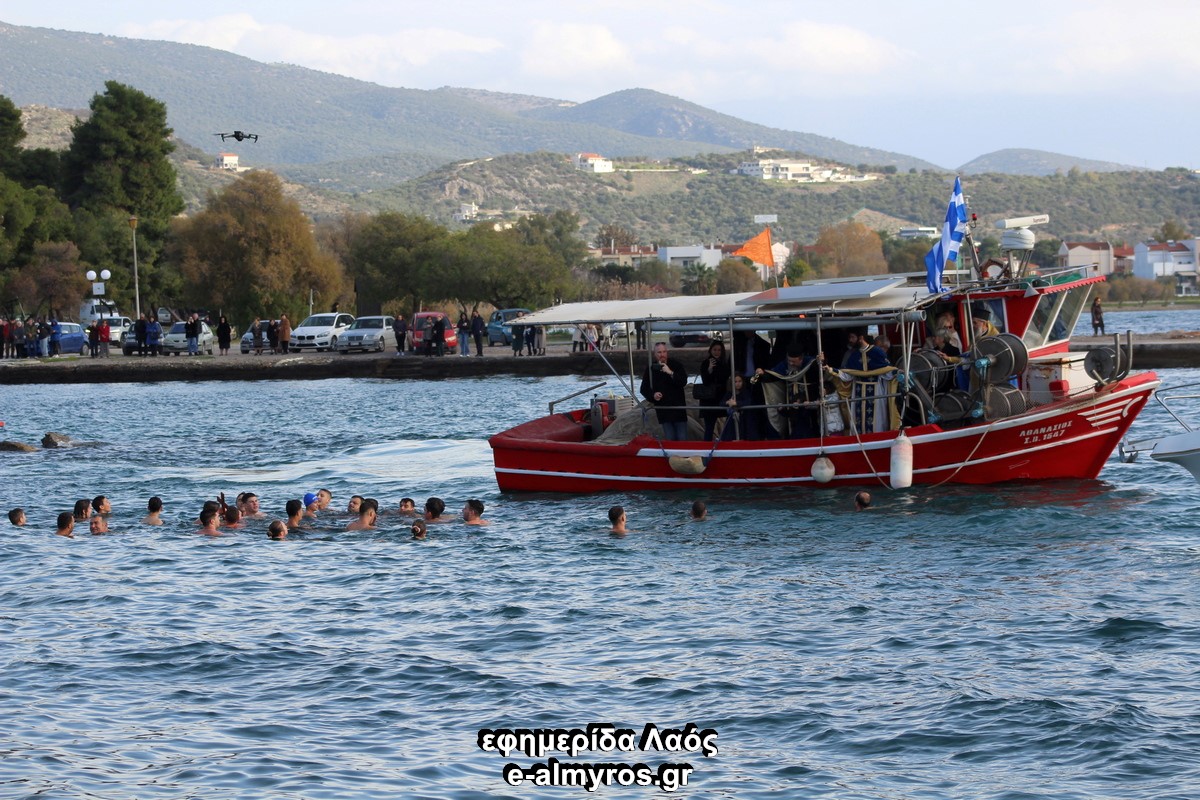 Από εκεί έριξαν τρεις φορές τον Σταυρό στη θάλασσα όπως ορίζει η παράδοση και το τελετουργικό. Μετρήσαμε περίπου 30 άτομα κάθε ηλικίας, από μικρά παιδιά Δημοτικού μέχρι ενήλικες, που αψήφησαν το κρύο και έπεσαν στα κρύα νερά. Ήταν περισσότεροι από κάθε άλλη φορά! Ιδιαίτερη μνεία θα κάνουμε για τα τέσσερα κοριτσάκια που βούτηξαν να πιάσουν τον σταυρό, μάλιστα το ένα εξ αυτών τον έπιασε πρώτη στην πρώτη κατάδυση.