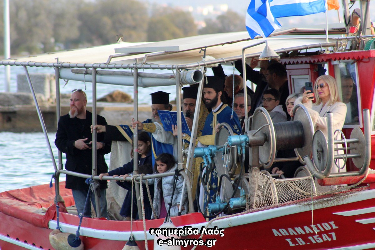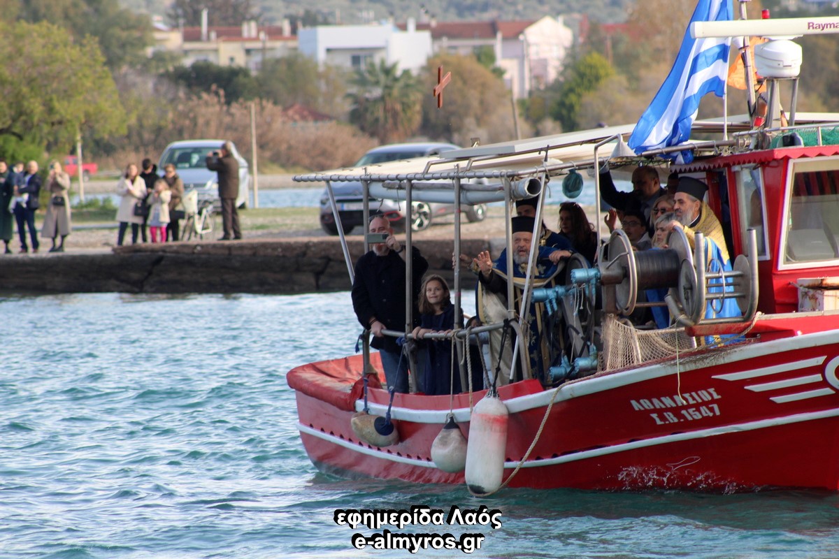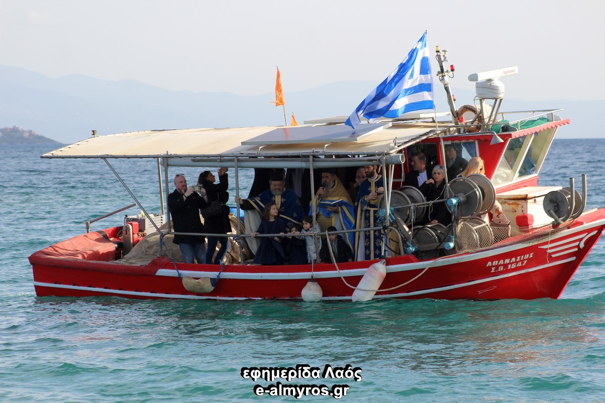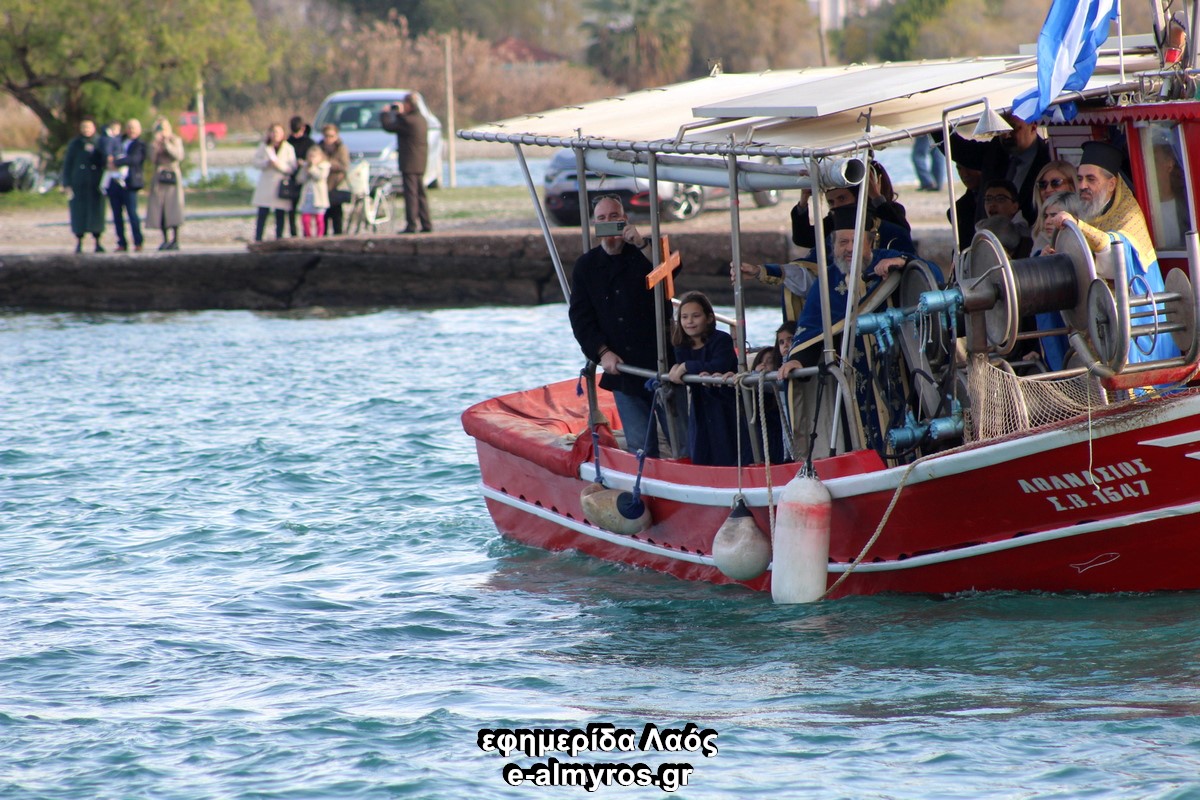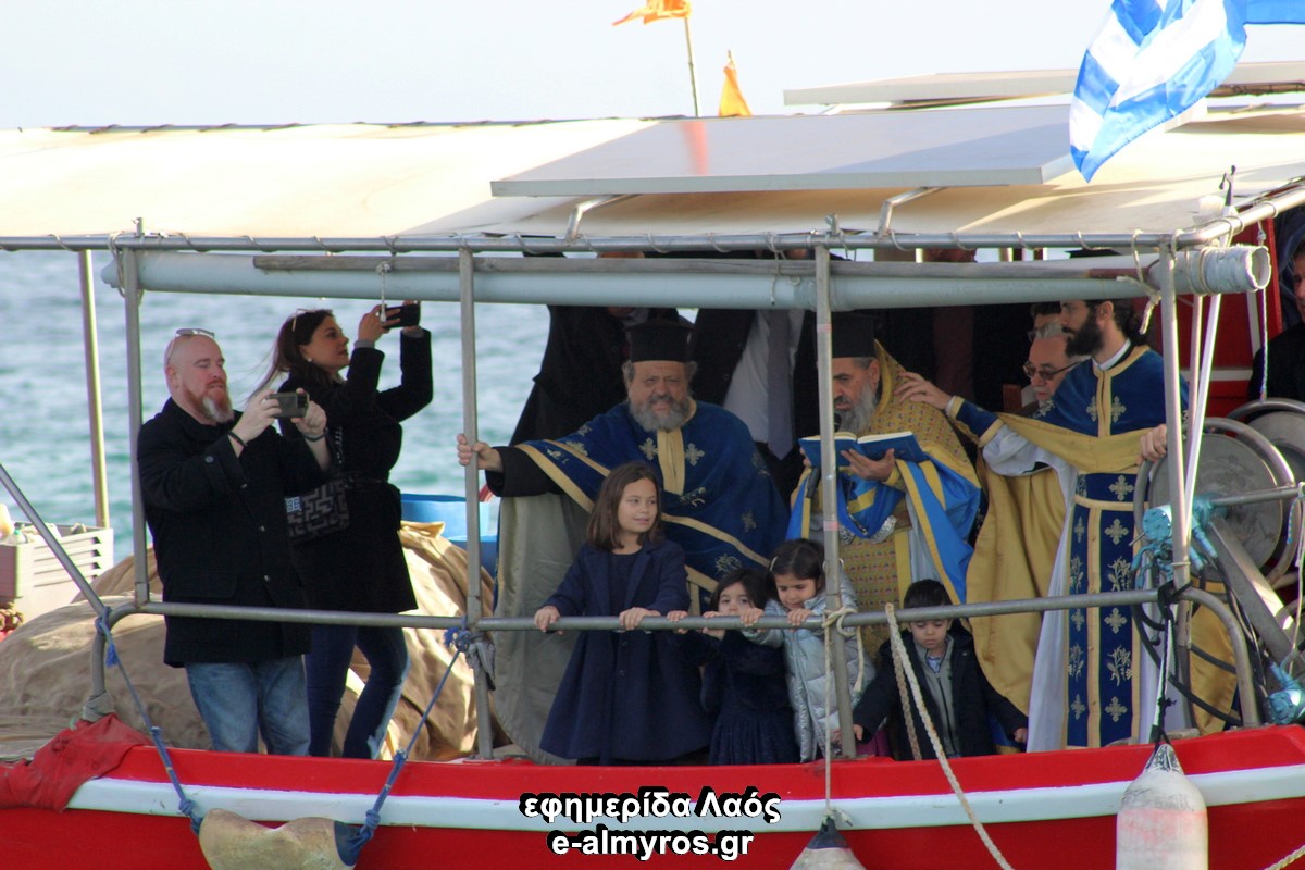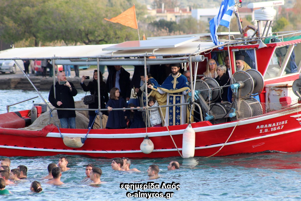Από εκεί έριξαν τρεις φορές τον Σταυρό στη θάλασσα όπως ορίζει η παράδοση και το τελετουργικό. Μετρήσαμε περίπου 30 άτομα κάθε ηλικίας, από μικρά παιδιά Δημοτικού μέχρι ενήλικες, που αψήφησαν το κρύο και έπεσαν στα κρύα νερά. Ήταν περισσότεροι από κάθε άλλη φορά! Ιδιαίτερη μνεία θα κάνουμε για τα τέσσερα κοριτσάκια που βούτηξαν να πιάσουν τον σταυρό, μάλιστα το ένα εξ αυτών τον έπιασε πρώτη στην πρώτη κατάδυση.