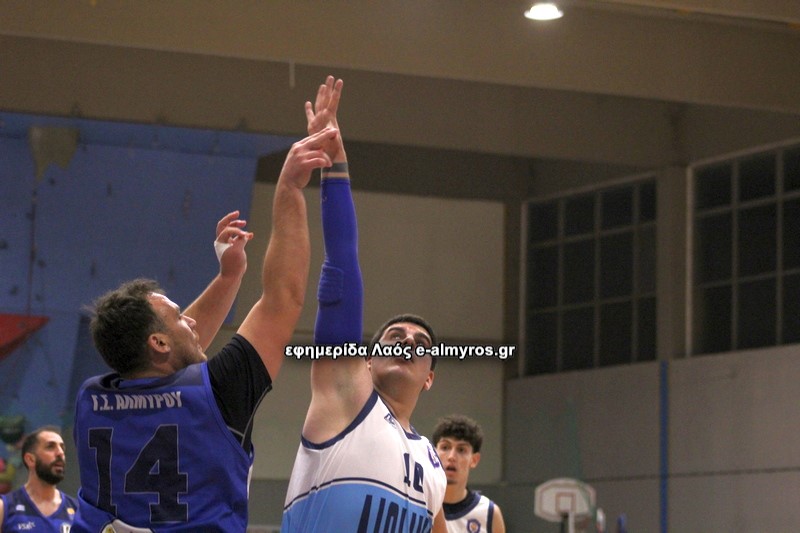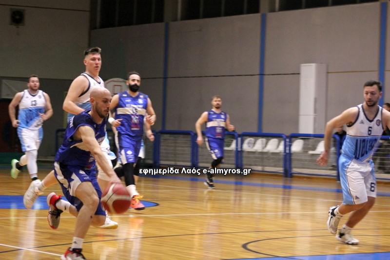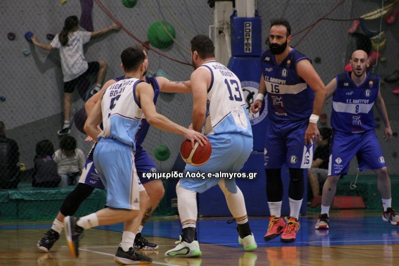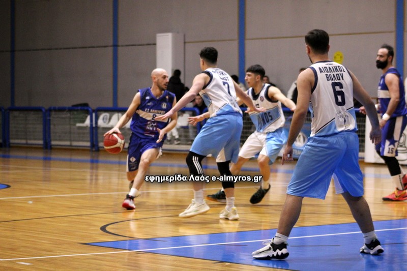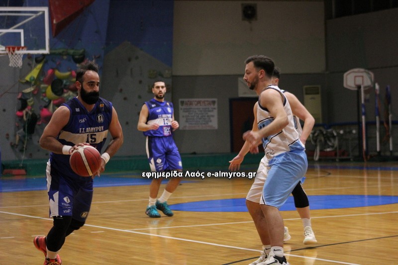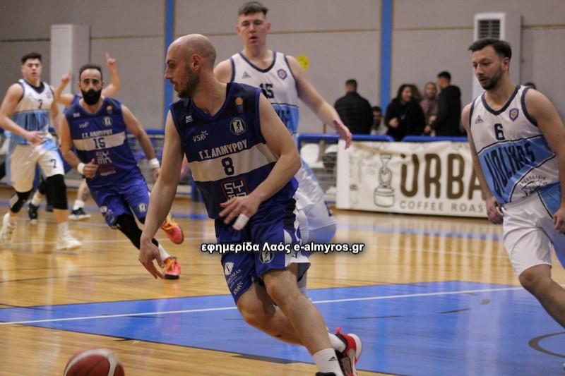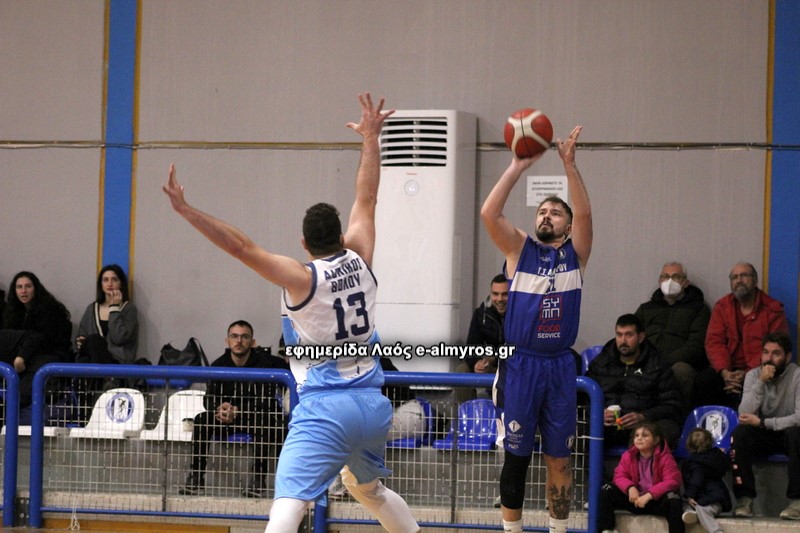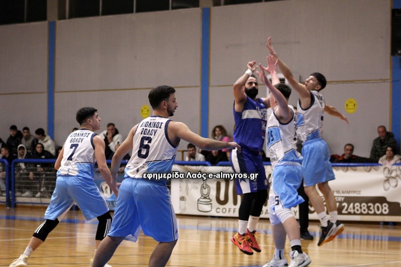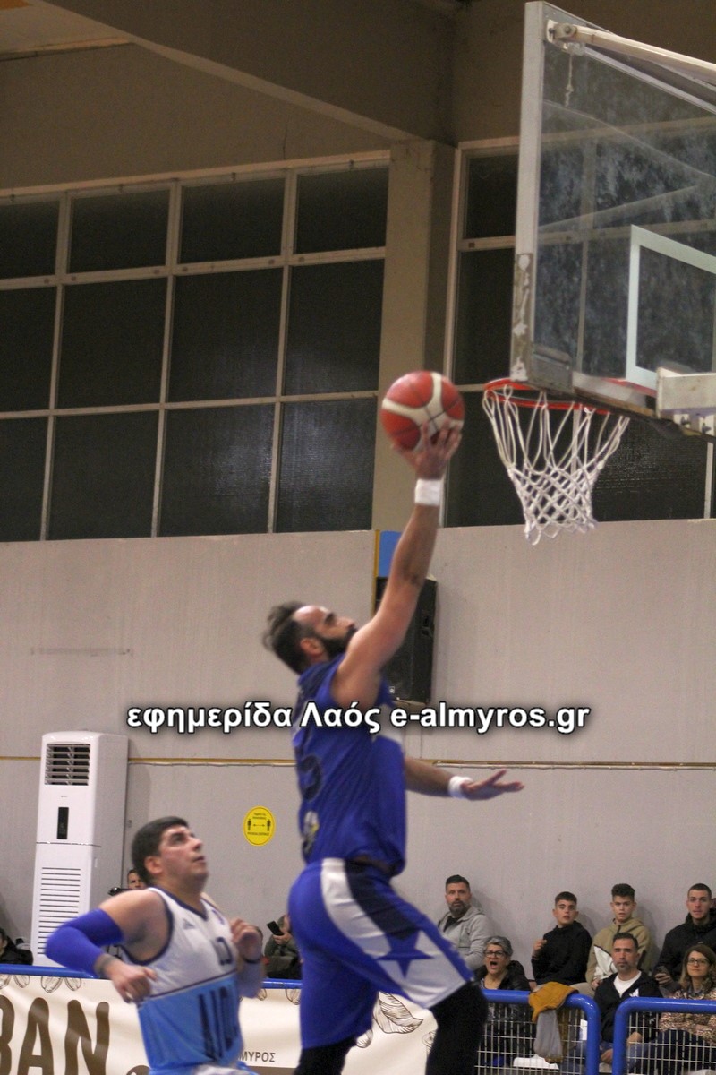 Ο Βαλαμούτης έβαλε λέι απ στο ανοικτό γήπεδο σε φοβερή ασίστ του Κοψιαλή, ο Ζήκος είχε εύστοχο έξω από τα 6,75 και ο αρχηγός άνοιξε τη διαφορά στους 13. Οι γηπεδούχοι έπαιζαν σε υψηλό τέμπο και με ένταση, όμως οι Βολιώτες βρήκαν λύσεις στην επίθεση, κυρίως με τον Κόμτσια και πλησίασαν στους πέντε. Ο Κοψιαλής έδωσε τρίποντη ανάσα, ωστόσο τον μιμήθηκε ο Κυπαρίσσης για το 42-37. Εν τέλει οι ομάδες πήγαν στην ανάπαυλα του ημιχρόνου με σκορ 43-37. Οι παίκτες του Μητρουλά, για ακόμη έναν αγώνα, είχαν μεγάλη παραγωγή στο σκοράρισμα.