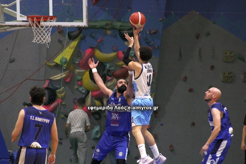 Στο ξεκίνημα της τρίτης περιόδου, Βαλαμούτης και Καλαϊτζής το γρήγορο 5-0 που έφερε τη διαφορά ξανά σε διψήφιο νούμερο, πέρασε ένα δίλεπτο με κακές επιλογές και λάθη εκατέρωθεν, όμως ο Παπουτσής ξεκόλλησε τον Αλμυρό με δύσκολη προσπάθεια. Στο 25’ ο φωτεινός πίνακας έδειχνε σκορ 53-38 με τρίποντο του Βαλαμούτη κι επιμέρους 10-1. Ο κόουτς Σαμαράς αναγκάστηκε να ζητήσει τάιμ άουτ καθώς η διαφορά ξέφυγε στους 17. Ο Παπουτσής τιμώρησε από μακριά τη ζώνη αλλά ο Σφέτσιος είχε άμεση απάντηση με τον ίδιο τρόπο. Ο Βυρσωκινός ήταν ο παίκτης που έδωσε λύσεις και σκοράρισμα στον ΓΣΑ και λίγο πριν βγει το δεκάλεπτο, ο Καλαϊτζής είχε άτυχη στιγμή καθώς δέχθηκε αγκωνιά και μάτωσε στο φρύδι. Στο 30’ το σκορ ήταν 64-45 αφού στο τελευταίο δίλεπτο είδαμε μεγάλη αστοχία.