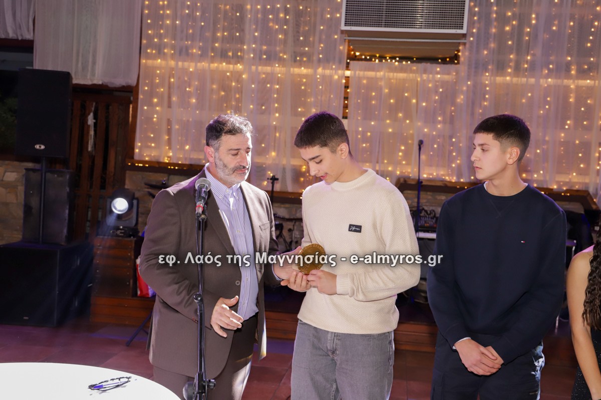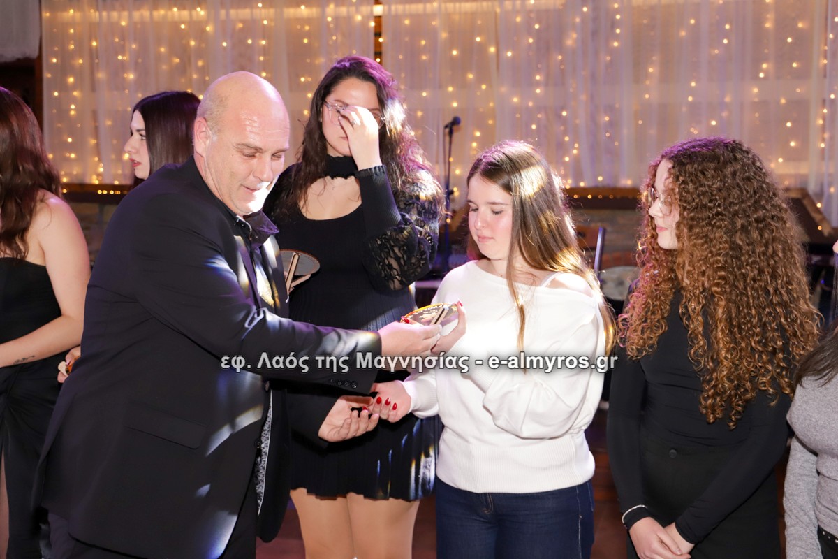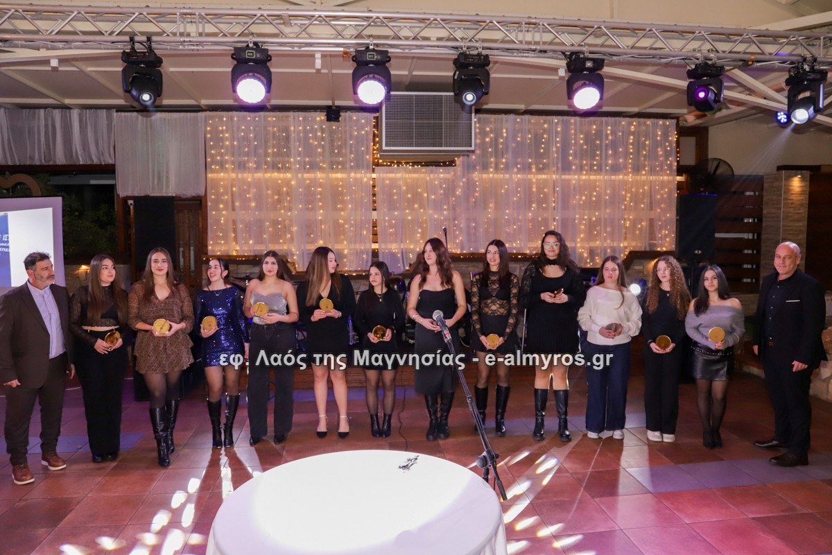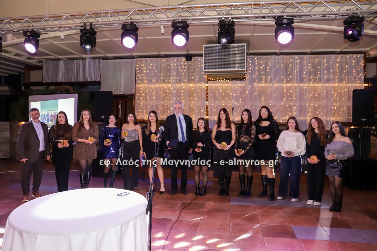 Ακολούθησαν οι βραβεύσεις. Τιμήθηκαν οι αθλήτριες των ομάδων βόλεϊ Γυναικών και Παγκορασίδων που κατέκτησαν την περασμένη σεζόν τίτλους στα πρωταθλήματά τους και οι αθλητές του στίβου με διακρίσεις σε διασυλλογικούς και πανελλήνιους αγώνες: Αλεξίου Δημήτρης, Παπακύριλος Θεμιστοκλής, Παρίσης Ευάγγελος, Παρίση Κατερίνα, Παππά Ελεάννα. Ιδιαίτερη στιγμή όταν η Χάιδω Καραπτσιά, η «μητέρα» του στίβου εδώ και δύο δεκαετίες έλαβε τιμητική πλακέτα από τους αθλητές της για την μεγάλη της προσφορά στον αθλητισμό της πόλης. Επίσης, τιμητική πλακέτα δόθηκε στον πρώτο πολίτη του Αλμυρού κο Εσερίδη.