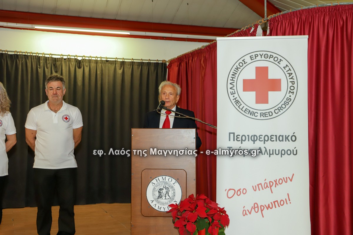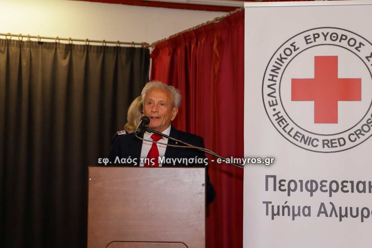 Ο Πρόεδρος του Περιφερειακού Τμήματος Ε.Ε.Σ. Αλμυρού κος Δημήτριος Κουρκούμπας αφού καλωσόρισε τις νέες Εθελόντριες στην μεγάλη οικογένεια του Ερυθρού Σταυρού τους ευχήθηκε πίστη και αφοσίωση στα Ερυθροσταυρικά Ιδεώδη, καλωσόρισε και ευχαρίστησε τους παρευρισκομένους για την παρουσία τους στην εκδήλωση. Ευχαρίστησε από καρδιάς για την πολύτιμη βοήθεια στην εκπαίδευση των νέων Εθελοντών τον Δήμαρχο Αλμυρού κο Δημήτριο Εσερίδη, τον Δ/ντή του 2ου Γυμνασίου Αλμυρού κο Ιωάννη Θεοδώρου, τους εκπαιδευτές των Εθελοντών τον καρδιολόγο κο Γεώργιο Λυμπερόπουλο, τον Παθολόγο Διαβητολόγο κο Βασίλειο Κουρκούμπα, την Ψυχολόγο κα Ιφιγένεια Αρίδη, την Διαιτολόγο κα Έλενα Κουρκούμπα και τις Νοσηλεύτριες εκπαιδεύτριες του Περιφερειακού Τμήματος Ε.Ε.Σ. Βόλου κα Κλητεία Γιαλαμά, την κα Κυριακή Σαμίου, και την κα Μαρία Μοντεσάντου.