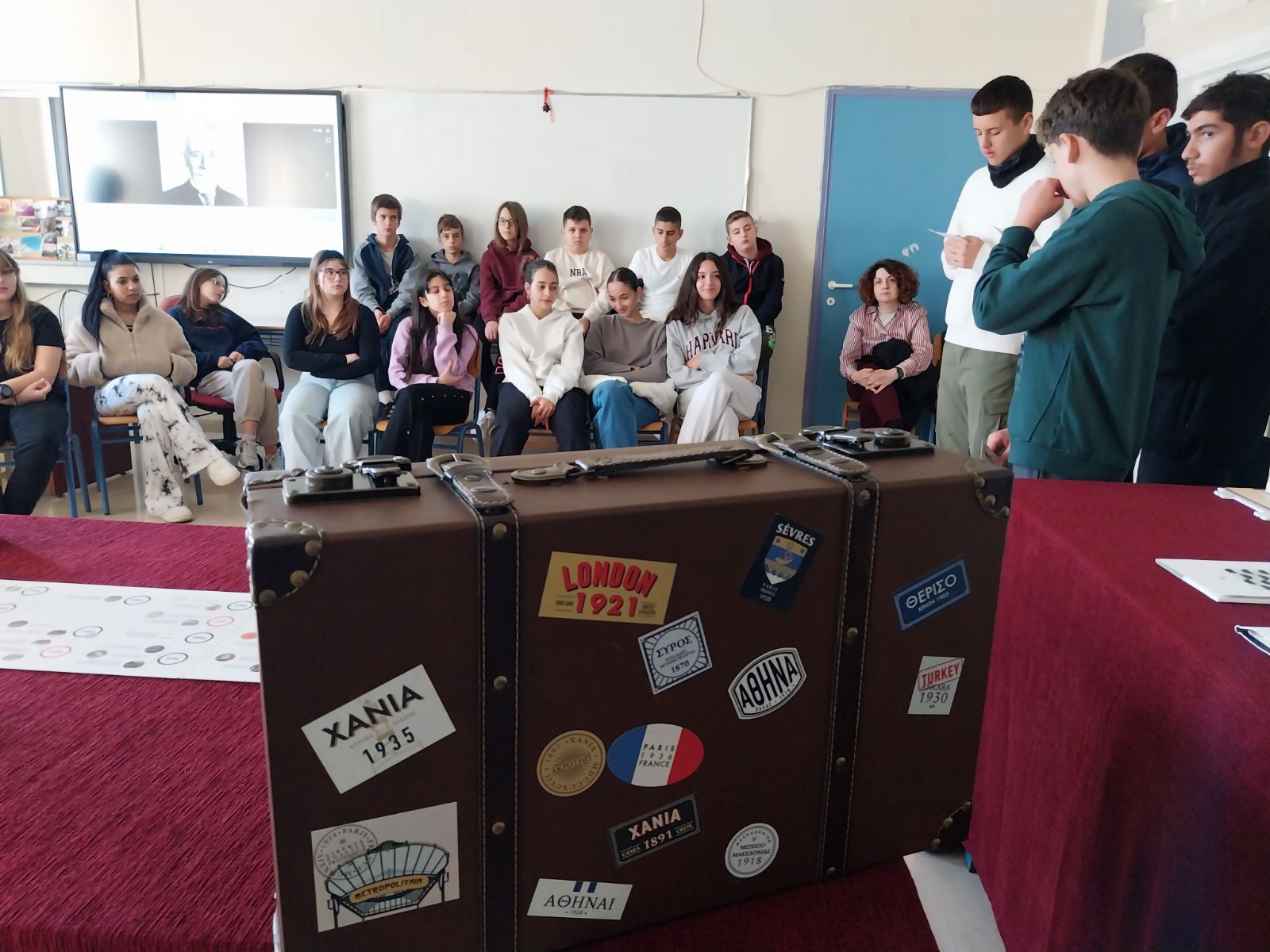 Στο πλαίσιο των εκπαιδευτικών και πολιτιστικών δράσεων του σχολείου, πραγματοποιήθηκε η παρουσίαση της μουσειοσκευής για τον Ελευθέριο Βενιζέλο από ομάδα μαθητών, υπό την καθοδήγηση  των  εκπαιδευτικών Α. Σιαμέτη, Ε. Πετρά, Ε. Τσιαμανή,  Α. Γεωργακοπούλου και Χ. Σέτσικα. Η δράση απευθυνόταν σε μαθητές Γυμνασίου και Λυκείου και στόχο είχε την ουσιαστική και βιωματική προσέγγιση της νεότερης ελληνικής ιστορίας.