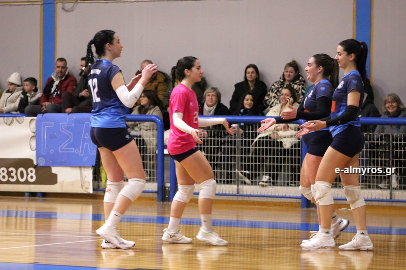 Φινάλε του πρώτου γύρου με νέο ροζ φύλλο για την ομάδα του ΓΣΑ που κέρδισε καθαρά 3-0 σετ την Άμιλλα Τρικάλων σε αγώνα που κράτησε 1 ώρα και 15 λεπτά. Με 6-2 οι γηπεδούχες, με 2-6 οι φιλοξενούμενες πριν την έναρξη της αναμέτρησης κι επιβεβαιώθηκαν τα προγνωστικά αν και οι αμαζόνες του Αλμυρού δεν έπιασαν πολύ καλή απόδοση. Εκεί όπου έγινε η διαφορά ήταν στο σερβίς αφού οι νικήτριες εξασφάλισαν πολλούς πόντους είτε με άσους είτε με σερβίς στα οποία οι υποδοχές ήταν κακές.