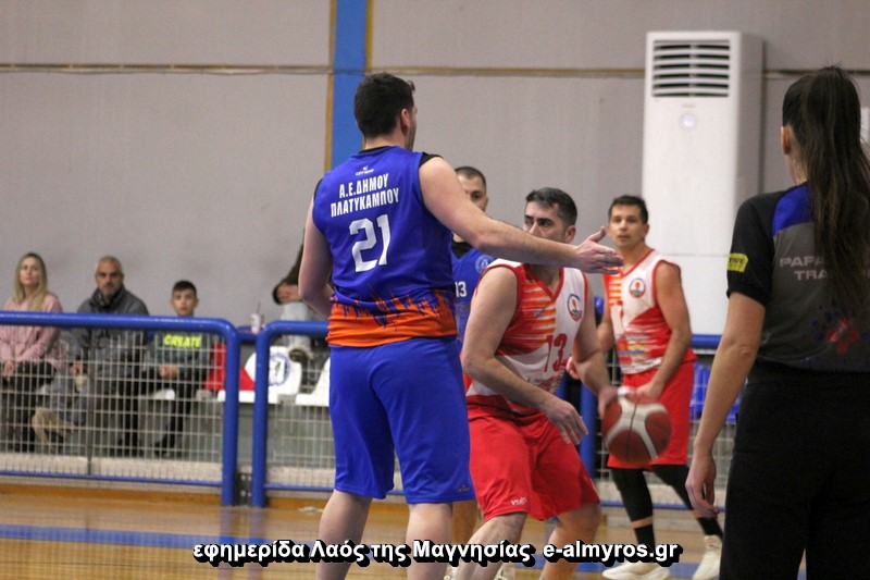 Ο Βαλεντίνος Κέτουλας με μία βολή και ένα δίποντο έδωσε διψήφια τιμή στη διαφορά όταν διαμόρφωσε το 49-38 στο 27ο λεπτό και ο ίδιος με νέο καλάθι το 51-41 που ήταν αυτό που έδειχνε ο φωτεινός πίνακας όταν οι παίκτες πήγαν στους πάγκους για τη λήξη τρίτου δεκαλέπτου. Ο Πλατύκαμπος είχε λύσεις, πλησίασε στους έξι και αργότερα στους τρεις όταν έγινε το 52-49. Ο Κουρκούμπας έβαλε καθοριστικό τρίποντο και μετά μία βολή σε τεχνική για το 58-54, πάλι με βολές του Αλμυριώτη αθλητή οι Τιτάνες πήραν σκορ και στο φινάλε «μίλησε» ο Καρασάββας. Με δικό του σουτ έξω από τα 6,75 το σκορ πήγε 65-56 στο 37:22, ακολούθησαν ένα χαμένο τρίποντο και δύο χαμένα για γηπεδούχους και φιλοξενούμενους αντιστοίχως και το ματς «τελείωσε» με νέο τρίποντο του Καρασάββα, 68-56 ενώ απέμεναν 90 δευτερόλεπτα. Μείωσε με τον Γουρνάρη ο Πλατύκαμπος, αλλά ο Καρασάββας με 2/2 βολές και ο Πλ. Κέτουλας με 1/2 έγραψαν το τελικό 71-60.