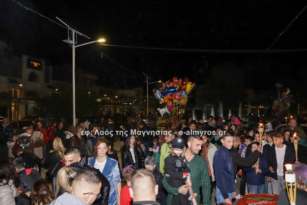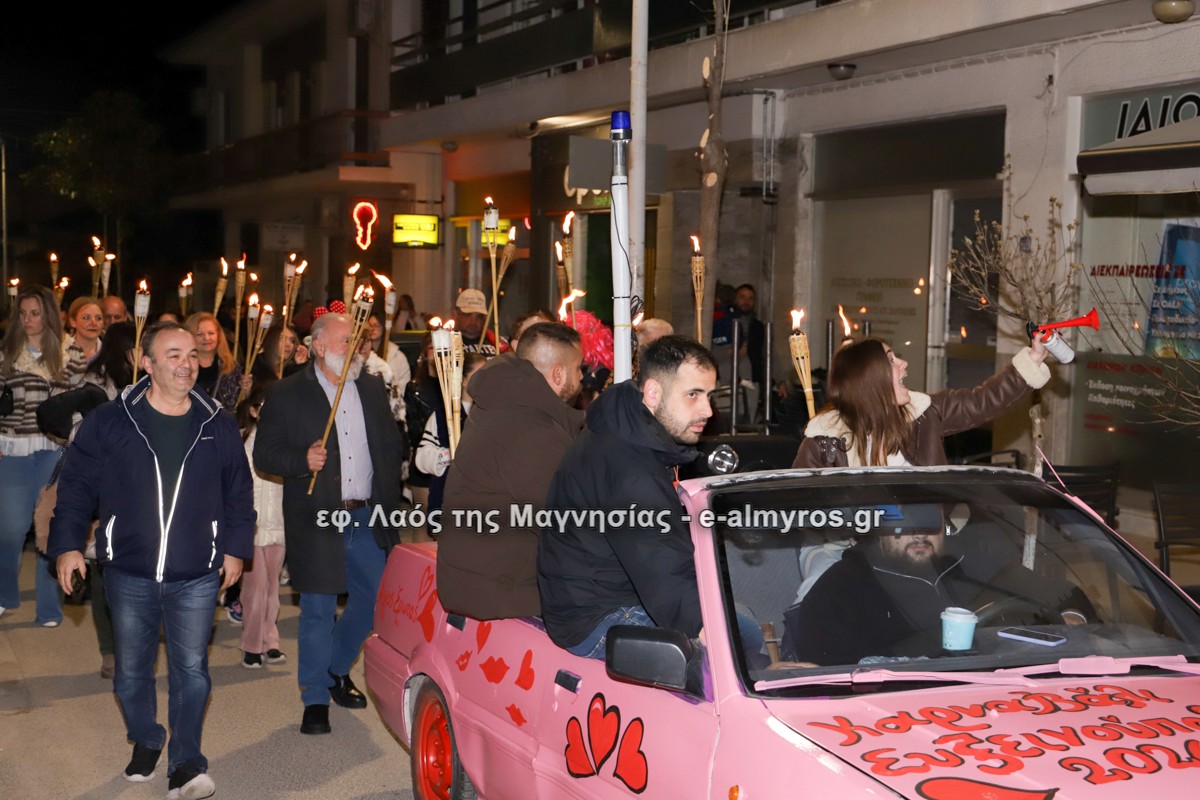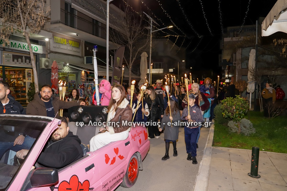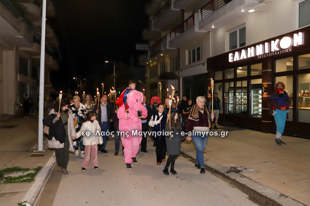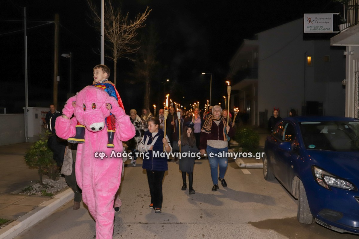 Στον ρυθμό του καρναβαλιού μας έβαλε η λαμπαδηφορία και ο σοκολατοπόλεμος στον Αλμυρό – Φωτο-ρεπορτάζ