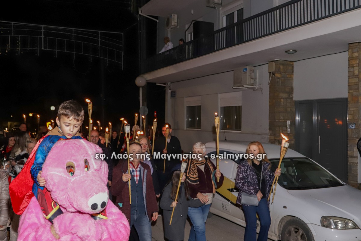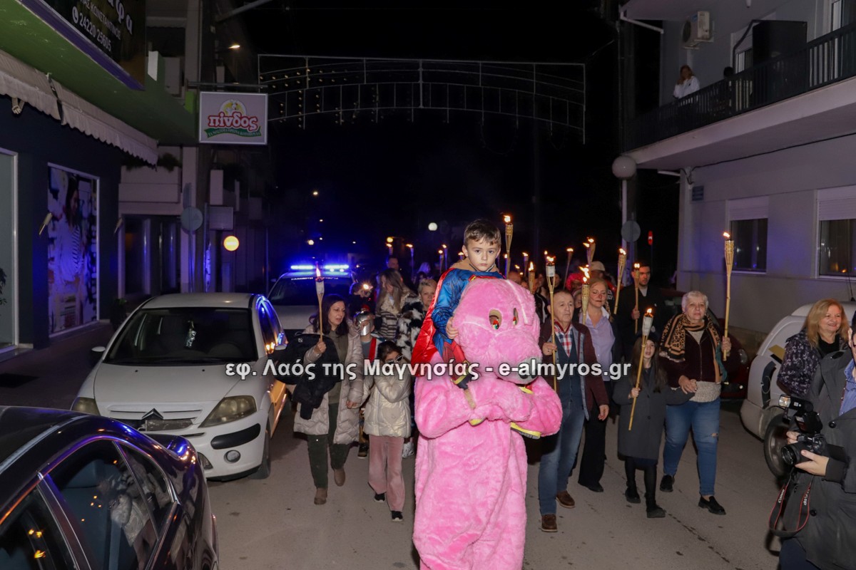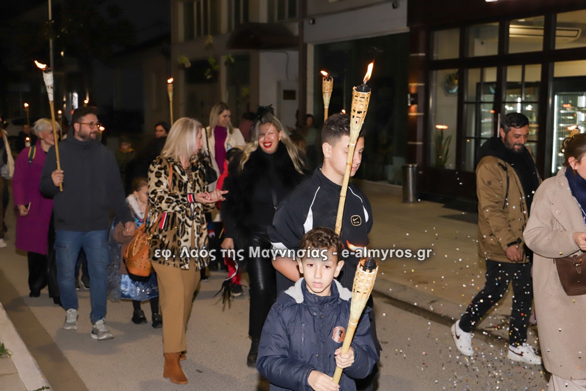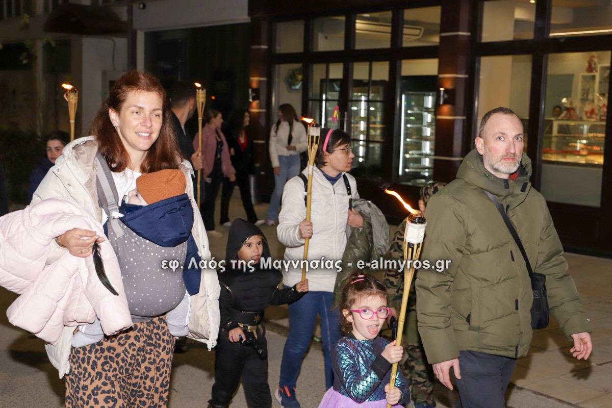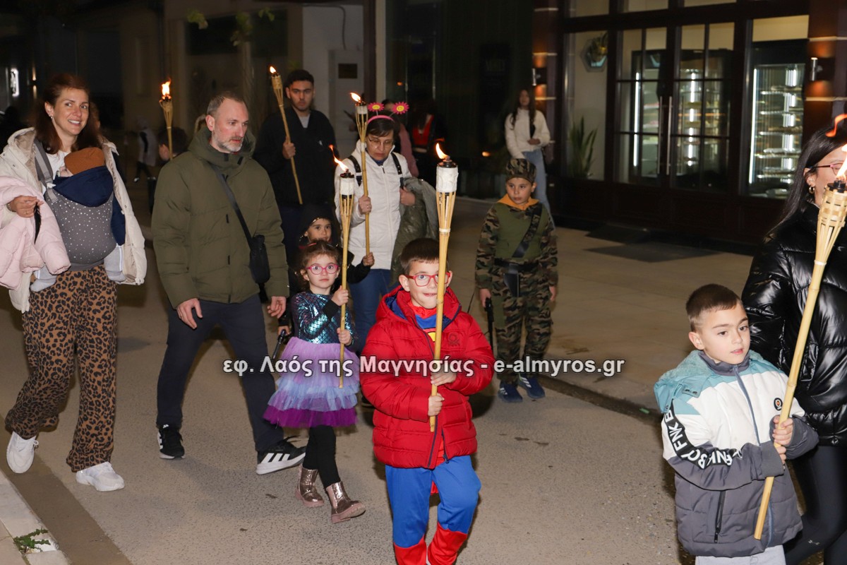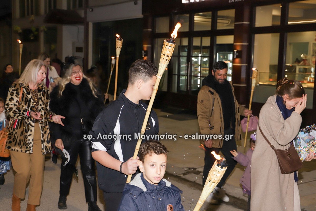 Στον ρυθμό του καρναβαλιού μας έβαλε η λαμπαδηφορία και ο σοκολατοπόλεμος στον Αλμυρό – Φωτο-ρεπορτάζ