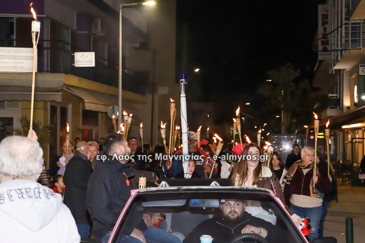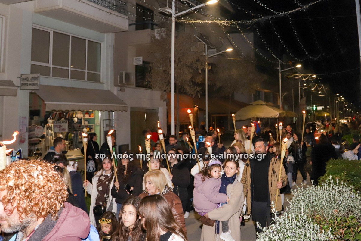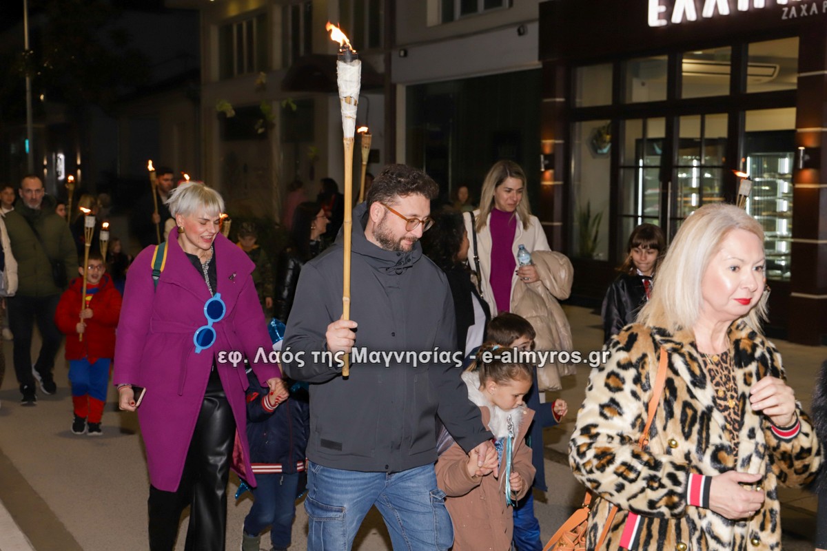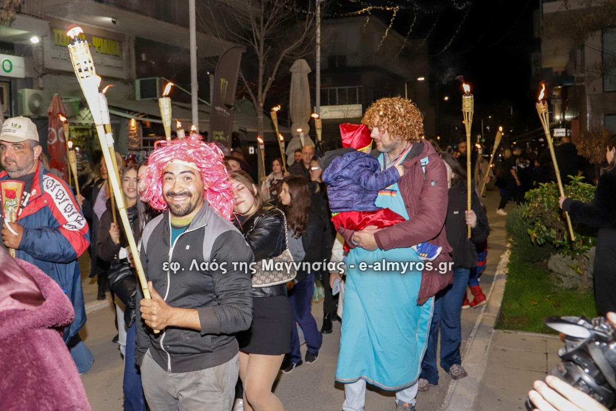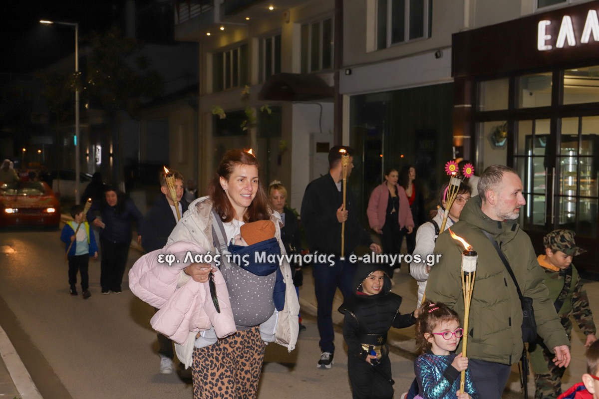 Στον ρυθμό του καρναβαλιού μας έβαλε η λαμπαδηφορία και ο σοκολατοπόλεμος στον Αλμυρό – Φωτο-ρεπορτάζ
