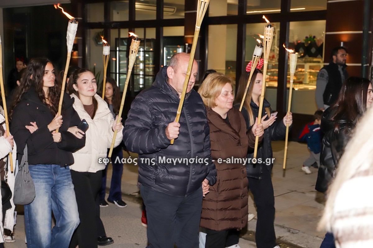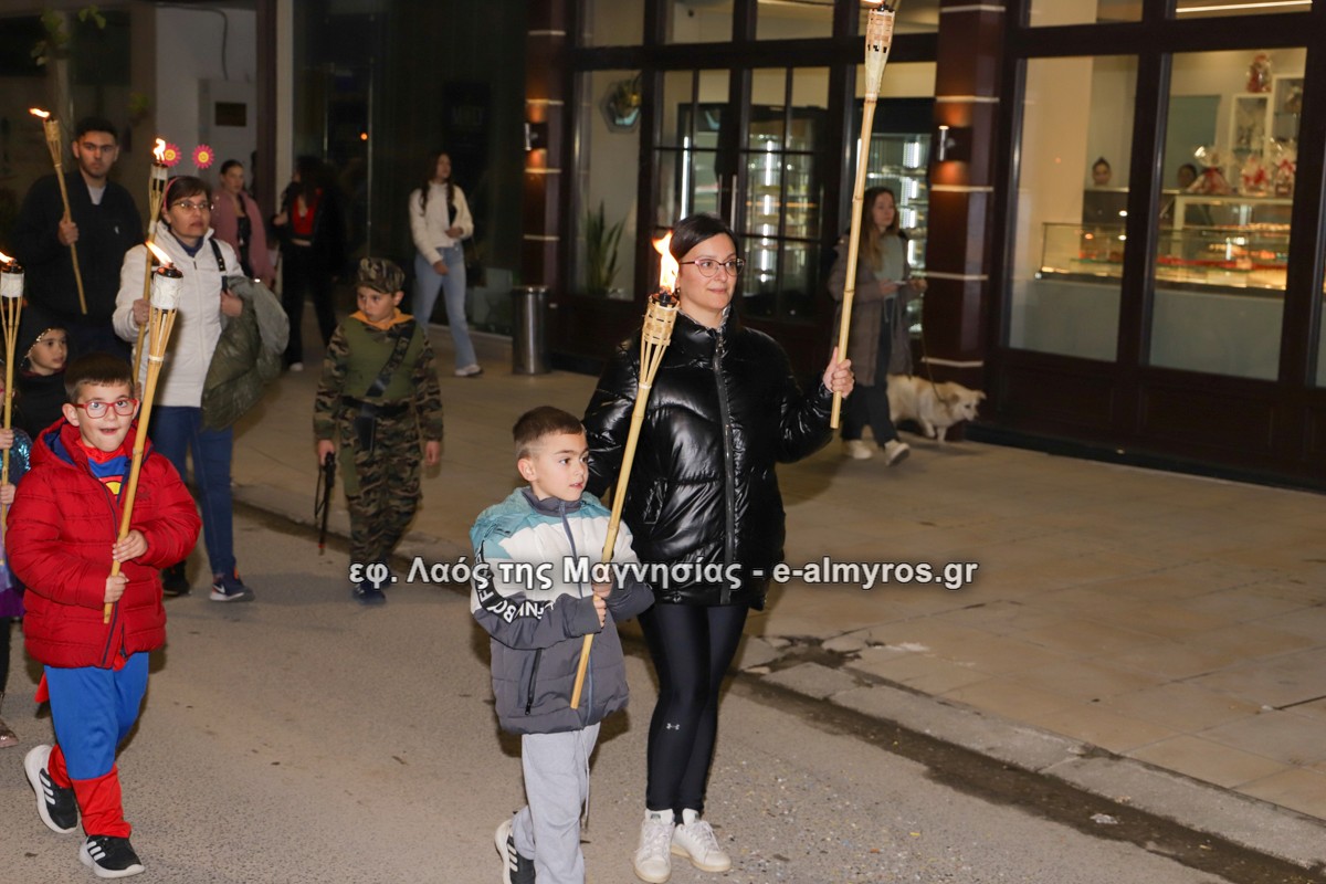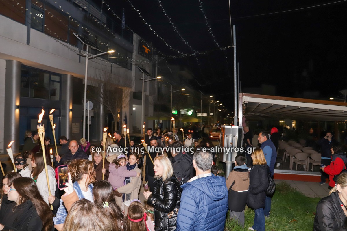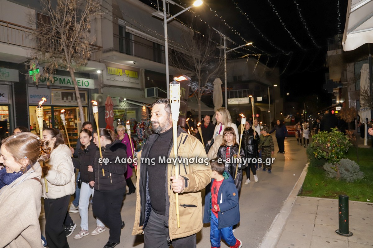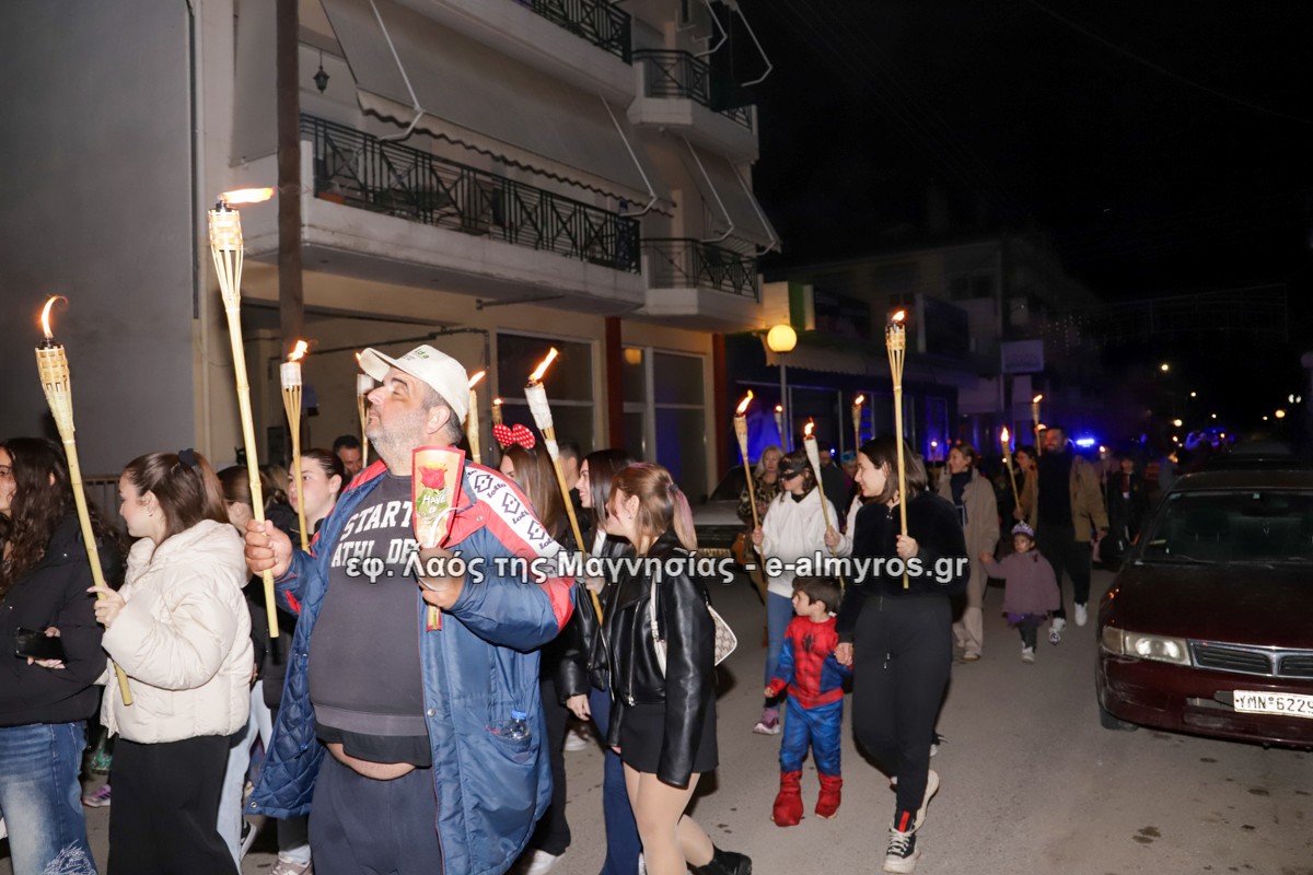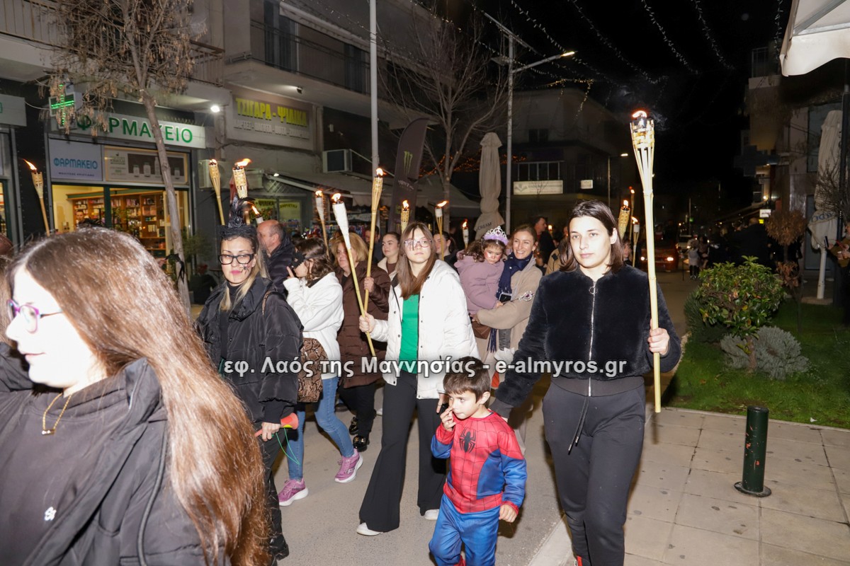 Στον ρυθμό του καρναβαλιού μας έβαλε η λαμπαδηφορία και ο σοκολατοπόλεμος στον Αλμυρό – Φωτο-ρεπορτάζ