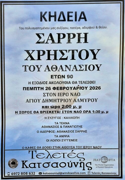 ΚΗΔΕΙΑ ΣΑΡΡΗ ΧΡΗΣΤΟΥ