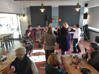 Ο Στέλιος Μουτζούρης, με την ορχήστρα του, ανέλαβε τη διασκέδαση των γυναικών που για ακόμη μία φορά ανταποκρίθηκαν στο κάλεσμα του δ.σ. και τίμησαν με αθρόα προσέλευση την παραδοσιακή αυτή εκδήλωση, ενώ δεν έλειψε και το «γαϊτανάκι»… Άπασες ανανέωσαν το ραντεβού τους για την επόμενη εκδήλωση, στις 8 Μαρτίου για την «γιορτή της γυναίκας».