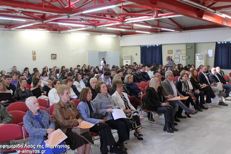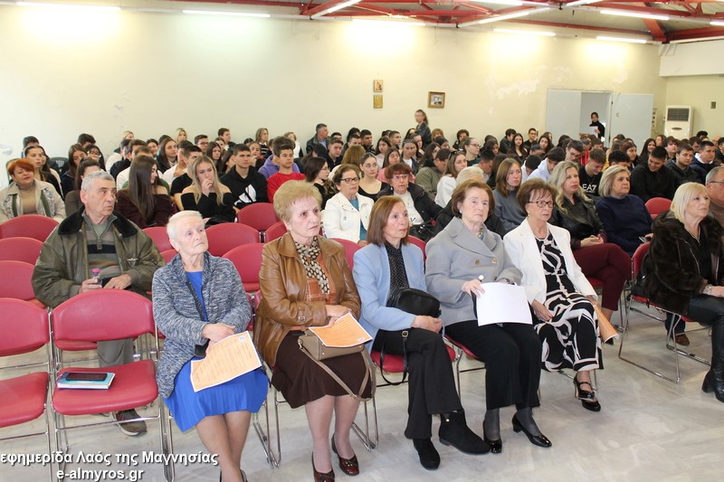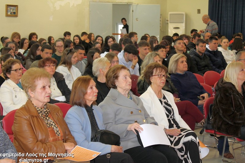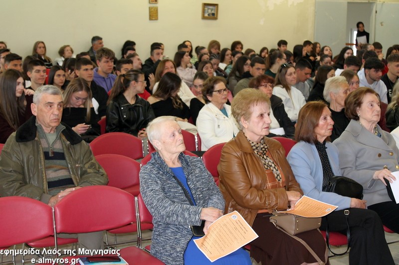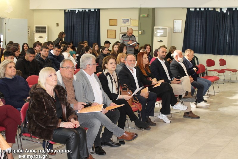 Το «παρών» στο πολιτιστικό κέντρο έδωσε η μαθητική κοινότητα καθώς την εκδήλωση παρακολούθησαν με μεγάλο ενδιαφέρον μαθητές και μαθήτριες από το Γυμνάσιο-Λ.Τ. Ευξεινούπολης, το ΓΕΛ και το ΕΠΑΛ Αλμυρού, το 2ο Γυμνάσιο Αλμυρού, τα Λύκεια Σούρπης και Πτελεού. Παρόντες επίσης ο Δ/ντης της Δευτεροβάθμιας Μαγνησίας Σωκράτης Σαβελίδης, η Περιφερειακή Δ/ντρια Εκπαίδευσης Βασιλική Ζιάκα, η Προϊσταμένη Εκπαιδευτικών Θεμάτων Ρηγώ Φασουράκη, η πρόεδρος της ΕΛΜΕ Μαγνησίας κα Γιαννουλή, ο Αντιδήμαρχος Σπύρος Βαλαμούτης, ο πρόεδρος της Ευξεινούπολης Μηνάς Παπαγιάννης, ο πρόεδρος του δημοτικού συμβουλίου Νίκος Καλλές και η δημοτική σύμβουλος Άννα Σιούτη.
