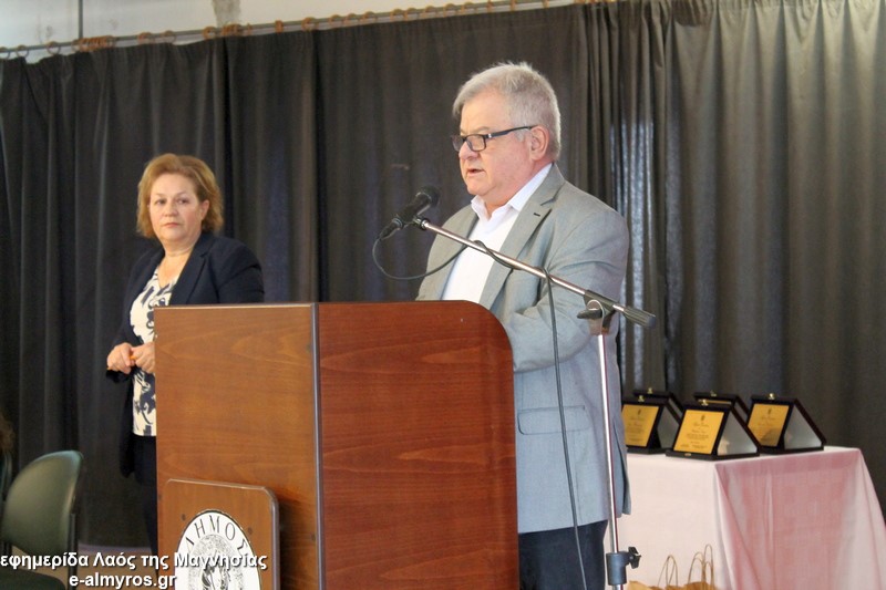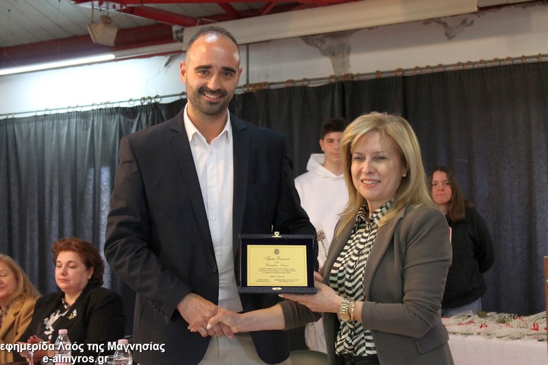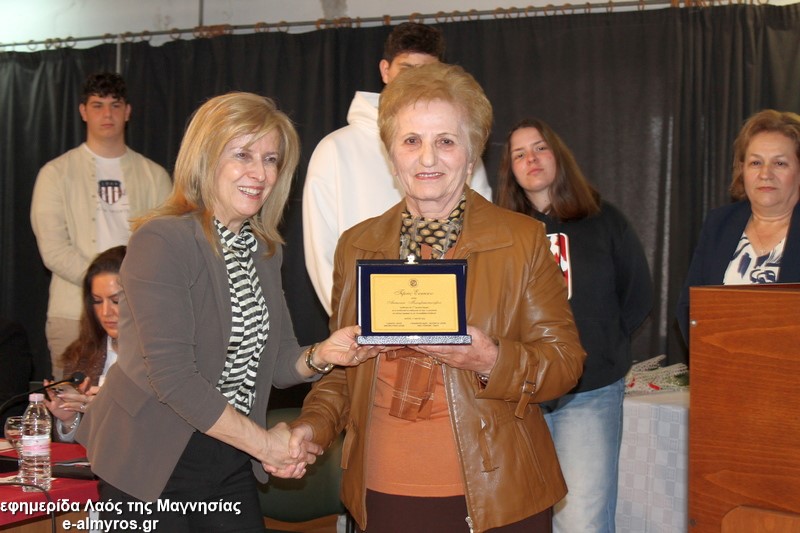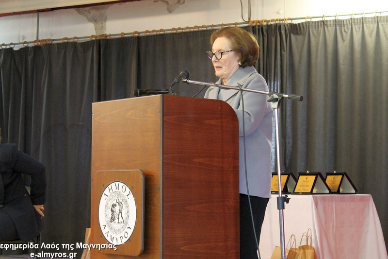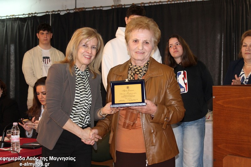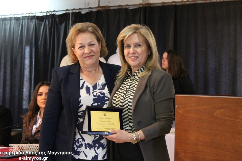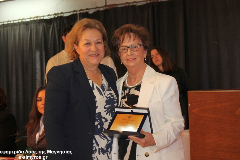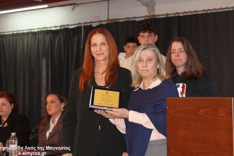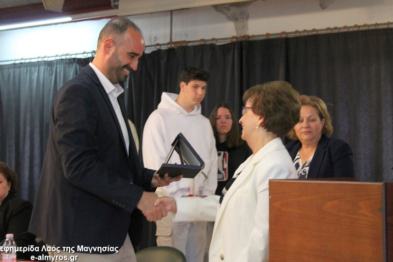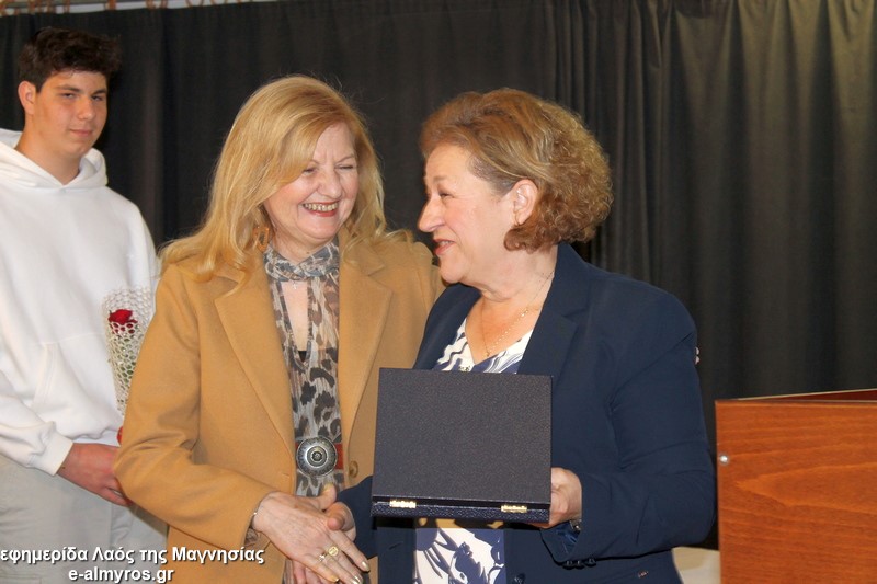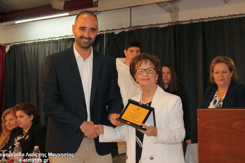 Το τελευταίο μέρος της εκδήλωσης αφορούσε την τιμητική αναγνώριση, από τον Δήμο Αλμυρού, της προσφοράς γυναικών που διέπρεψαν στον εκπαιδευτικό κλάδο και διετέλεσαν διευθύντριες σε σχολικές μονάδες της περιοχής μας και όχι μόνο. Έτσι, κατά σειρά βραβεύτηκαν με τιμητική πλακέτα η Περιφερειακή Δ/ντρια Πρωτοβάθμιας και Δευτεροβάθμιας Θεσσαλίας κα Βασιλική Ζιάκα, η Προϊσταμένη Εκπαιδευτικών Θεμάτων της Β’Βάθμιας Μαγνησίας κα Ρηγώ Φασουράκη, η κα Χρυσούλα Κορδίστα που διετέλεσε Δ/ντρια στο Λύκειο Αλμυρού, η κα Γιολάντα Καμινάρη που υπήρξε Δ/ντρια στο Γυμνάσιο Ευξεινούπολης και το Ενιαίο Λύκειο Αλμυρού, η κα Χρυσούλα Κοντογεωργάκη παλιά Δ/ντρια του Γυμν. Ευξεινούπολης και του 1ου Γυμνασίου Αλμυρού, η κα Κωνσταντινιά Νάνη παλιά Δ/ντρια του Γυμνασίου Ευξεινούπολης, η κα Αντωνία Μιχαλακοπούλου παλιά Δ/ντρια του 2ου Γυμνασίου, η κα Ασημίνα Καλαντζή που ήταν στο Γυμνάσιο Σούρπης, η κα Χρύσα Μαρδάκη του ΓΕΛ Αλμυρού και η κα Αποστολία Μελέτη η οποία υπήρξε Προϊσταμένη του 1ου Γραφείου Πρωτοβάθμιας Εκπαίδευσης. Όλες στον σύντομο χαιρετισμό τους δήλωσαν βαθιά συγκινημένες και εξήραν τον ρόλο του εκπαιδευτικού στη σύγχρονη κοινωνία και την προσφορά των γυναικών στην εκπαιδευτική κοινότητα.