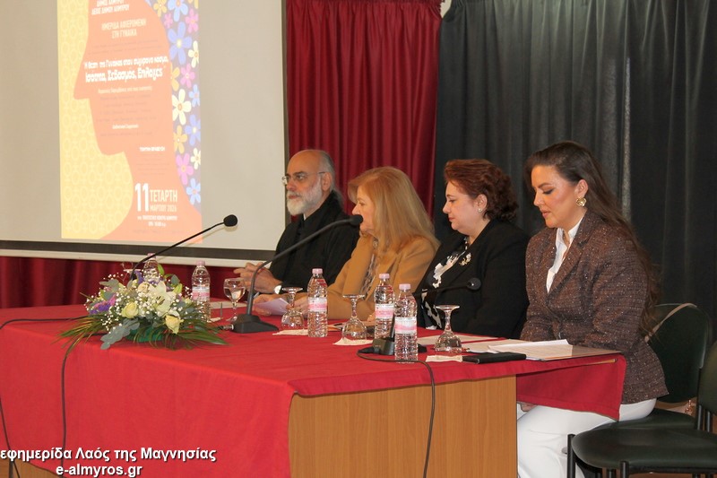 Άκρως ενδιαφέρουσα κι εποικοδομητική ήταν η ημερίδα που διοργάνωσε το πρωί της Τετάρτης 11 Μαρτίου ο Δήμος Αλμυρού και η Δημοτική Επιτροπή Ισότητας για τον εορτασμό της ημέρας της γυναίκας. Όλες οι παρουσιάσεις-ομιλίες ήταν εξαιρετικές και στο τέλος, από τους διοργανωτές βραβεύτηκαν γυναίκες εκπαιδευτικοί που διετέλεσαν Διευθύντριες σε σχολεία της περιοχής μας και τώρα είναι συνταξιούχες.
