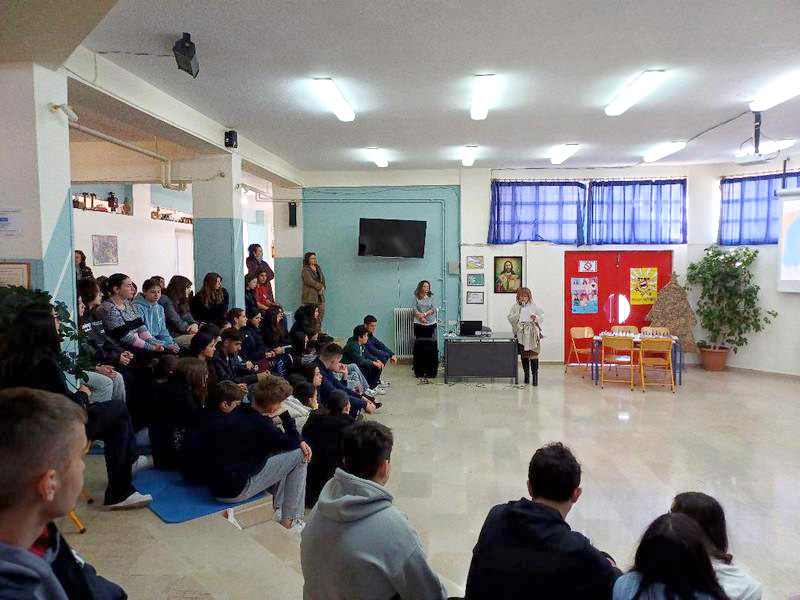 Στην αρχή της εκδήλωσης παρουσιάστηκε από την εκπαιδευτικό του σχολείου κ. Δώρα Κουτσομήτρου (ΠΕ80) ο θεσμός της σχολικής διαμεσολάβησης, ο οποίος λειτουργεί ως μέσο ειρηνικής επίλυσης διαφορών και συγκρούσεων στο σχολικό περιβάλλον. Κατά τη φετινή σχολική χρονιά ξεκίνησε να λειτουργεί στη σχολική μονάδα Όμιλος Σχολικής Διαμεσολάβησης, στον οποίο συμμετέχουν δέκα μαθητές και μαθήτριες. Οι μαθητές εκπαιδεύονται από τις υπεύθυνες εκπαιδευτικούς κ. Δώρα Κουτσομήτρου (ΠΕ80) και κ. Φώτη Σοφία (ΠΕ05), προκειμένου να μπορούν να αναλαμβάνουν τον ρόλο του διαμεσολαβητή και να συμβάλλουν στη διαχείριση και πρόληψη περιστατικών βίας και εκφοβισμού.