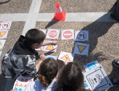 «Από το σπίτι στο Σχολείο»: Επιδαπέδιο εκπαιδευτικό, ψυχαγωγικό ποδηλατικό παιχνίδι, όπου τα παιδιά μαθαίνουν τα σήματα του Κώδικα Οδικής Κυκλοφορίας.