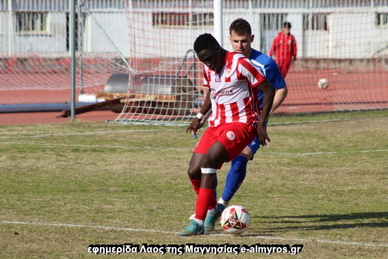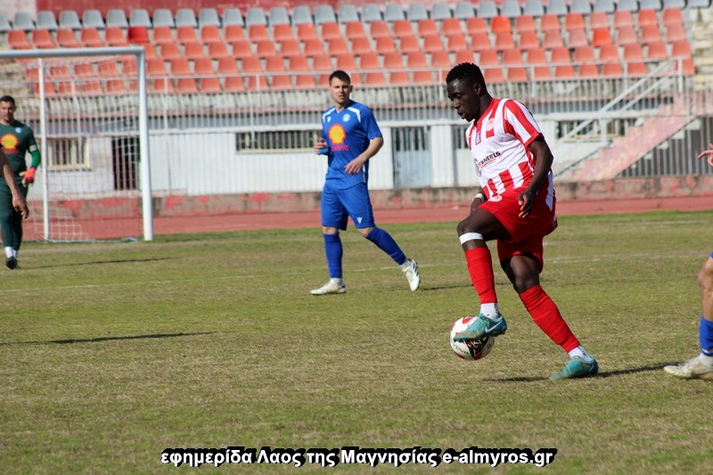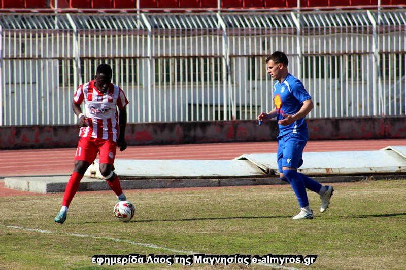 Το ματς άρχισε άσχημα για τον Αλμυρό καθώς μόλις στο 2ο λεπτό έγινε το 1-0: σέντρα του Κεϊτά από αριστερά, ο Κοντογεωργάκης δεν καθάρισε την φάση κι επωφελήθηκε ο Τάτος ο οποίος από κοντά έσπρωξε την μπάλα στα δίχτυα.