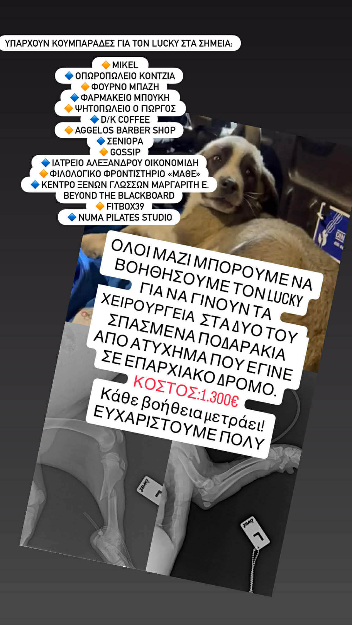 Πρωτοβουλία για τα έξοδα νοσηλείας του Lucky με κουμπαράδες σε 14 σημεία του Αλμυρού