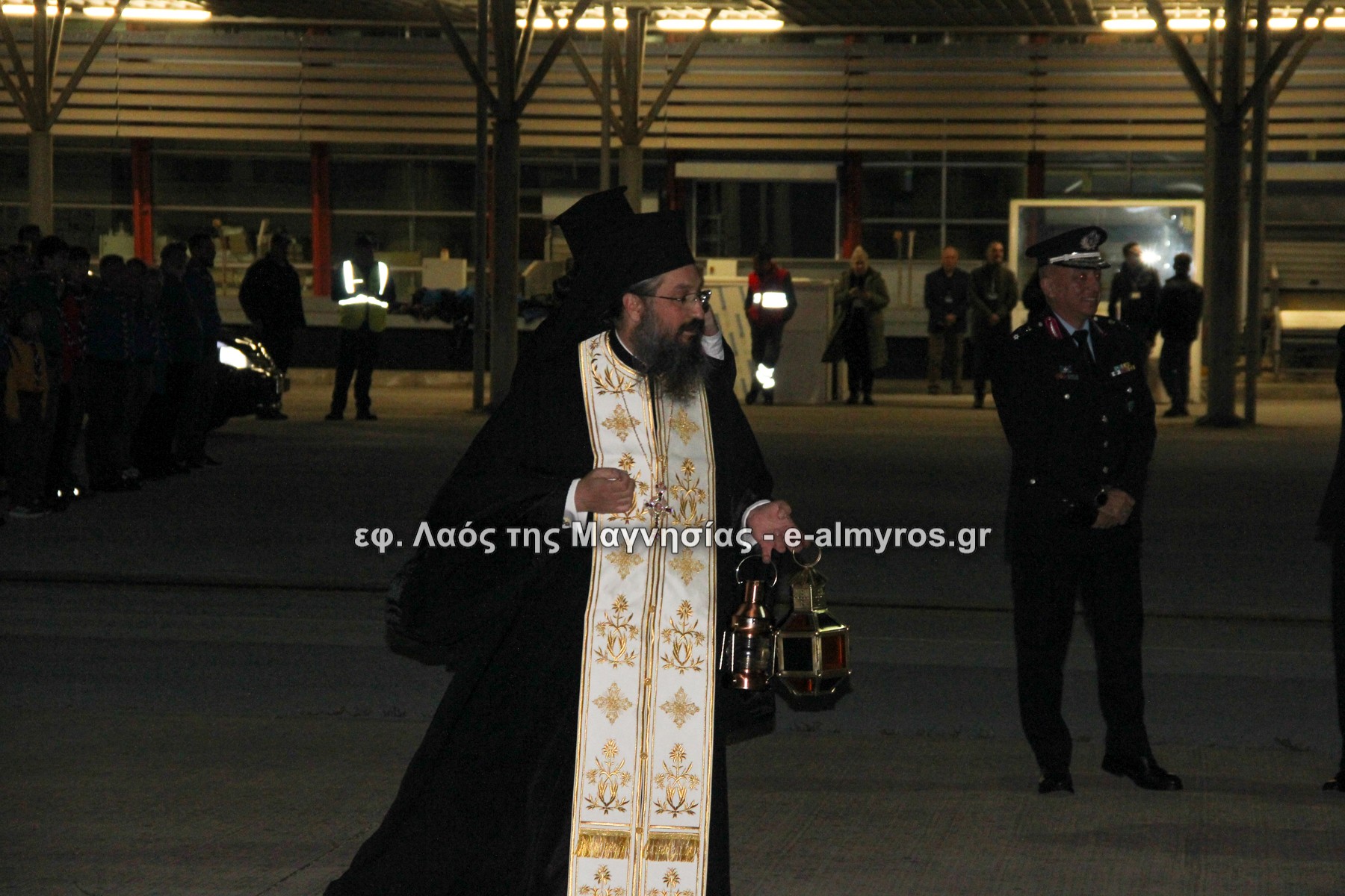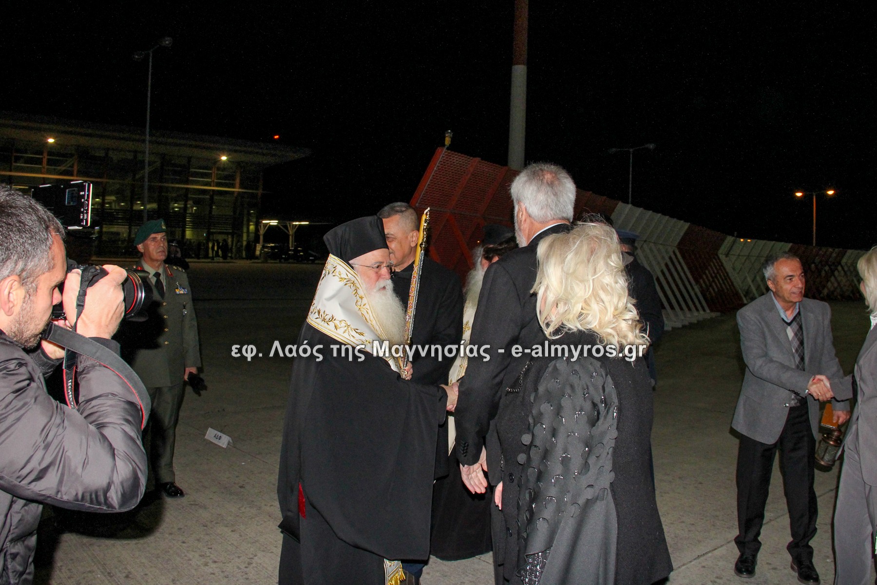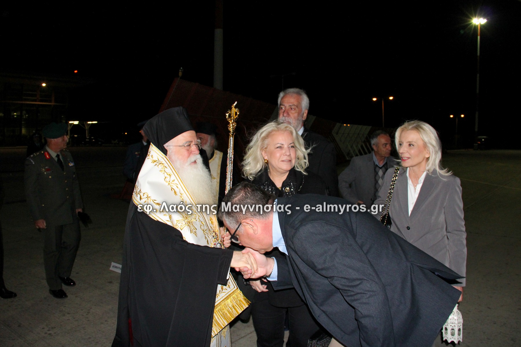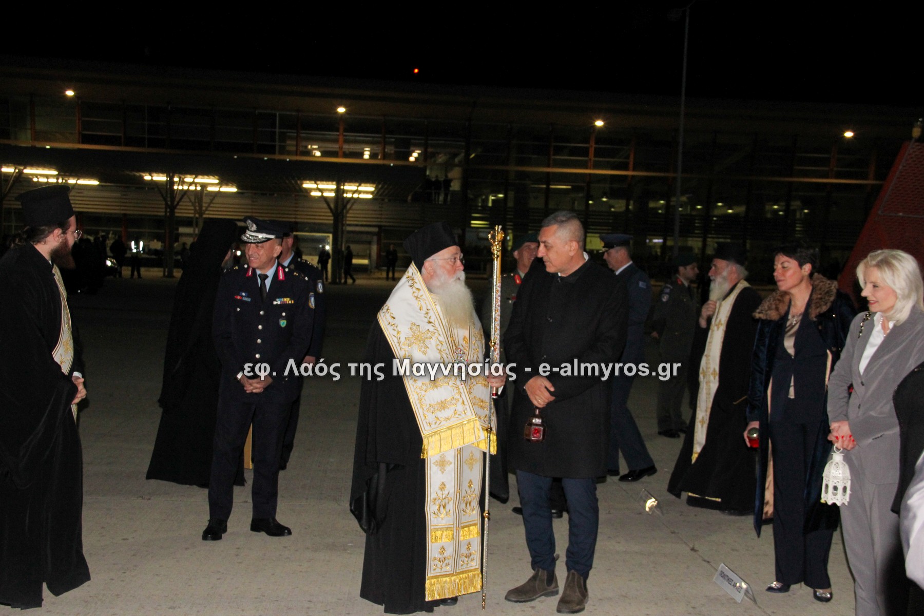 Η επίσημη υποδοχή του Αγίου φωτός για την Θεσσαλία πραγματοποιήθηκε το Μεγάλο Σάββατο 11 Απριλίου και ώρα 20:40 , στο πολιτικό Αεροδρόμιο Νέας Αγχιάλου. Το Άγιο Φως υποδέχθηκε ο Σεβασμιώτατος Μητροπολίτης Δημητριάδος κ. Ιγνάτιος, πλαισιωμένος από τον ιερό κλήρο της τοπικής Εκκλησίας. Κατά την άφιξη πραγματοποιήθηκε η προσήκουσα υποδοχή με παρουσία του Δημάρχου Αλμυρού κ. Εσερίδη, του Περιφερειάρχη κ. Κουρέτα, της Αντιπεριφερειάρχη κας Παπαδημητρίου, της μπάντας και αγήματος του στρατού, αιρετών, επισήμων και πλήθος πιστών και ακολούθησε σύντομη δέηση.