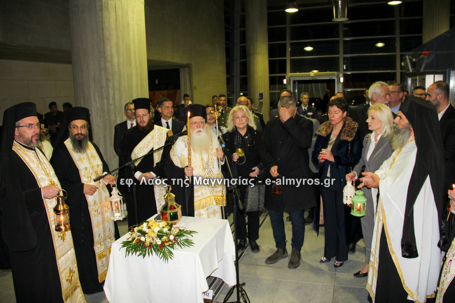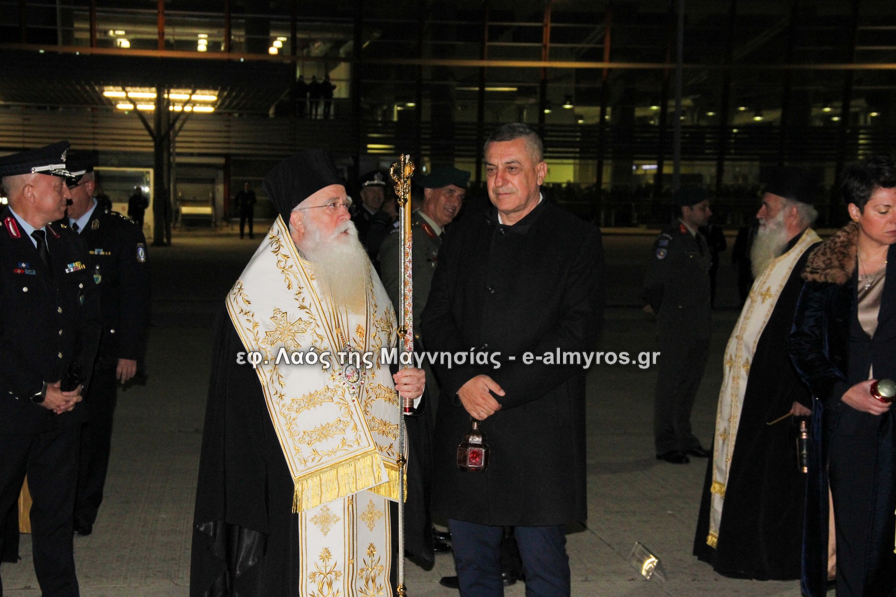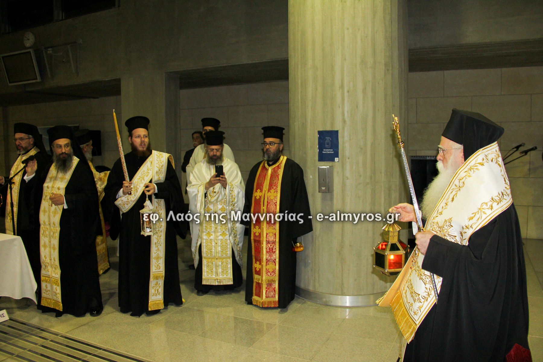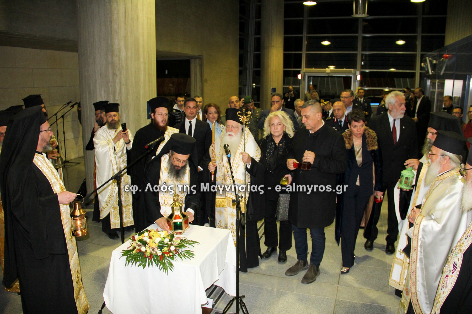 Η επίσημη υποδοχή του Αγίου φωτός για την Θεσσαλία πραγματοποιήθηκε το Μεγάλο Σάββατο 11 Απριλίου και ώρα 20:40 , στο πολιτικό Αεροδρόμιο Νέας Αγχιάλου. Το Άγιο Φως υποδέχθηκε ο Σεβασμιώτατος Μητροπολίτης Δημητριάδος κ. Ιγνάτιος, πλαισιωμένος από τον ιερό κλήρο της τοπικής Εκκλησίας. Κατά την άφιξη πραγματοποιήθηκε η προσήκουσα υποδοχή με παρουσία του Δημάρχου Αλμυρού κ. Εσερίδη, του Περιφερειάρχη κ. Κουρέτα, της Αντιπεριφερειάρχη κας Παπαδημητρίου, της μπάντας και αγήματος του στρατού, αιρετών, επισήμων και πλήθος πιστών και ακολούθησε σύντομη δέηση.