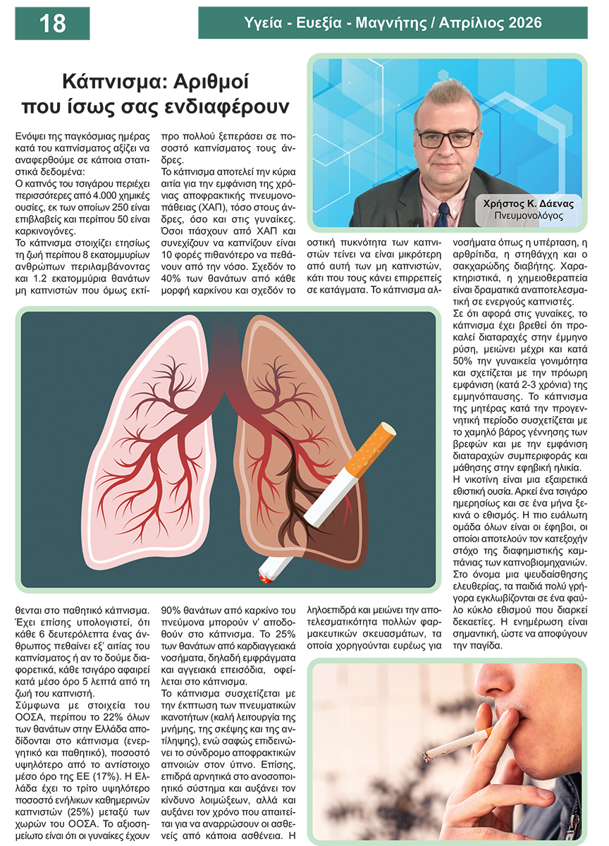 • Χρήστος Κ. Δάενας: Κάπνισμα – Αριθμοί που ίσως σας ενδιαφέρουν 19 Απριλίου, 2026