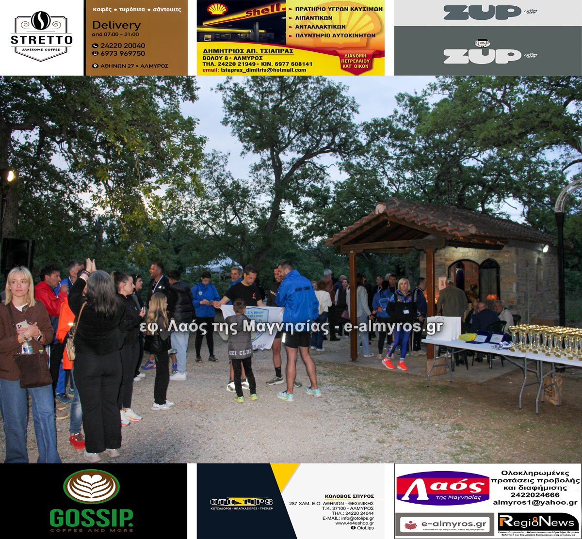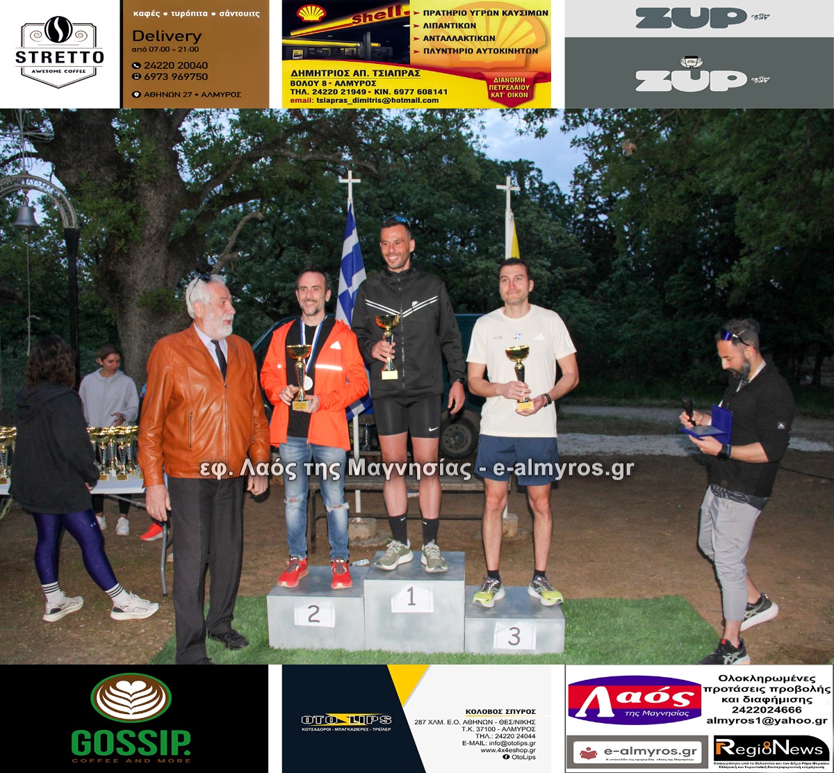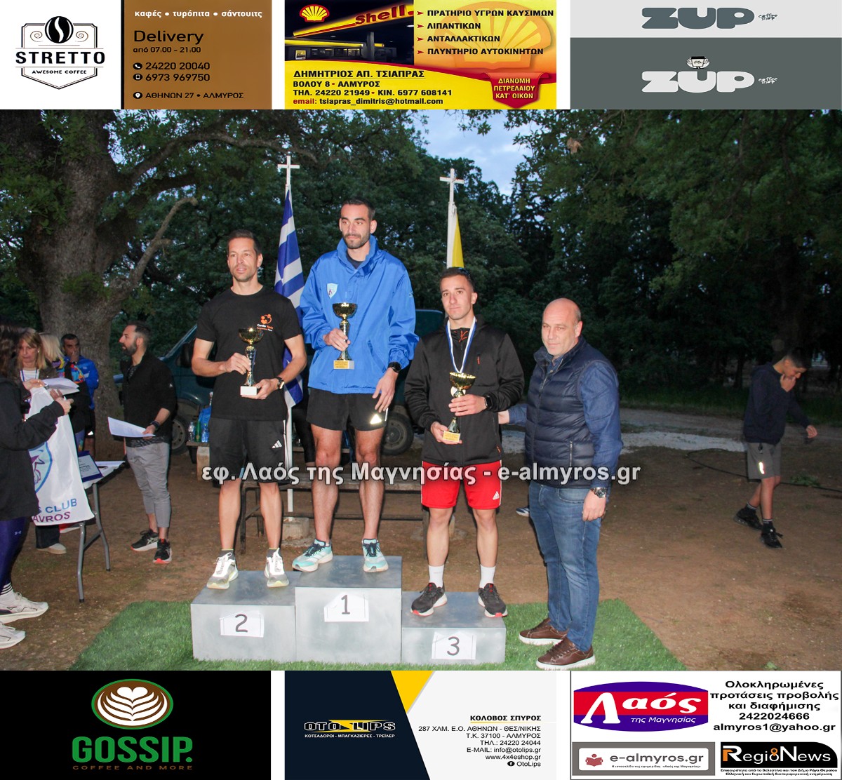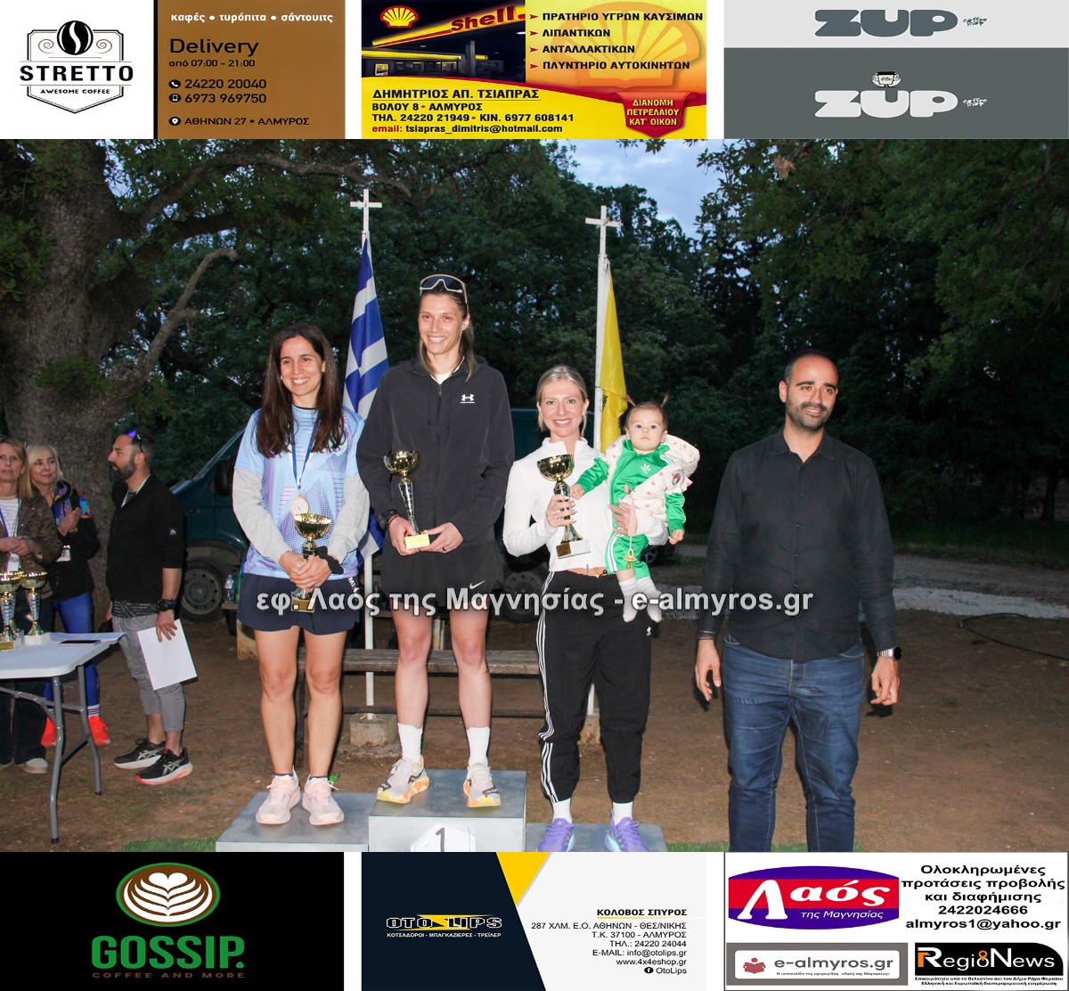 Οι διοργανωτές βράβευσαν με τιμητική πλακέτα για τη συμβολή τους στην επιτυχή τέλεση του αγώνα την Αντιπεριφερειάρχη Μαγνησίας-Σποράδων κα Παπαδημητρίου, τον Αντιπεριφερειάρχη Περιβάλλοντος κο Λαμπρινίδη, τον Δήμαρχο Αλμυρού κο Εσερίδη και τους Αντιδημάρχους κ.κ. Βούλγαρη, Τσαντούρη. Επίσης βραβεύτηκε ο κος Γιάννης Δεληζήσης, πρώην πρόεδρος του Συλλόγου Φίλων Δάσους Κουρί.