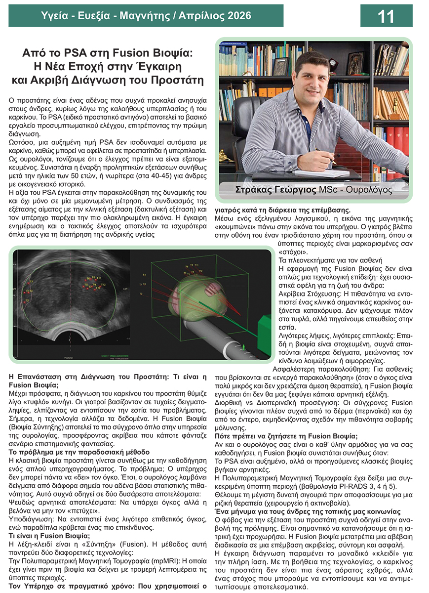 ΠΕΡΙΟΔΙΚΑ 21 Απριλίου, 2026 Στράκας Γεώργιος : Από το PSA στη Fusion Βιοψία: Η Νέα Εποχή στην Έγκαιρη και Ακριβή Διάγνωση του Προστάτη Tags περιοδικό ΣΤΡΑΚΑΣ ΓΕΩΡΓΙΟΣ υγεία ευεξία